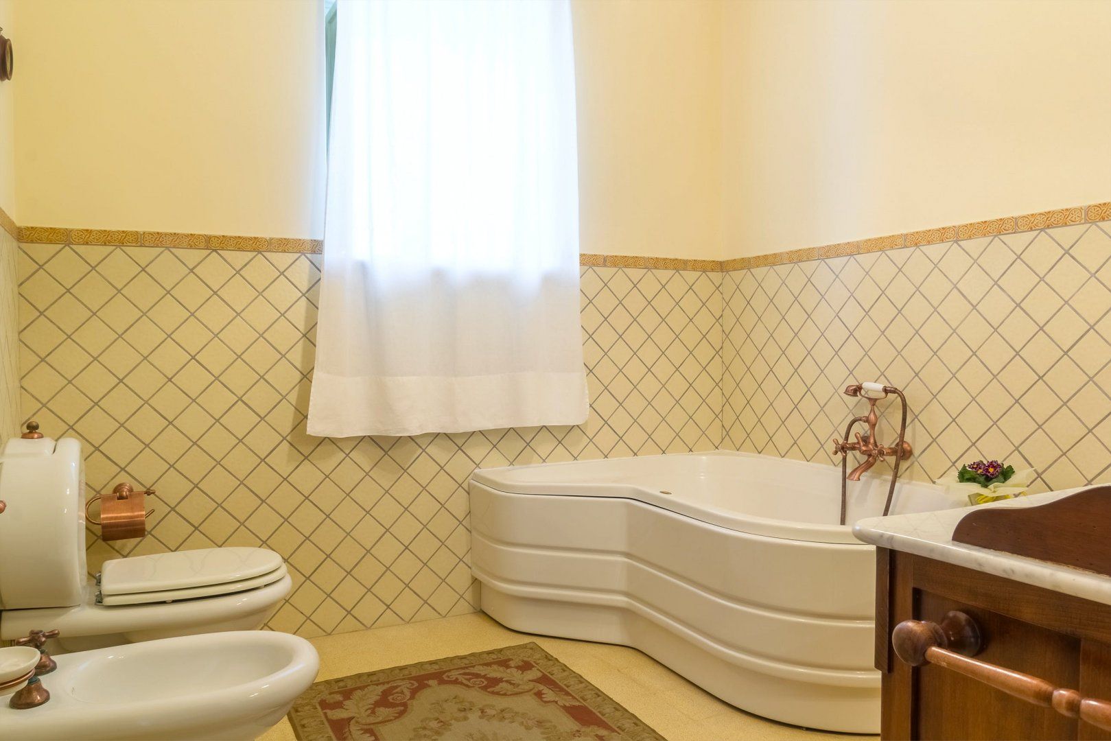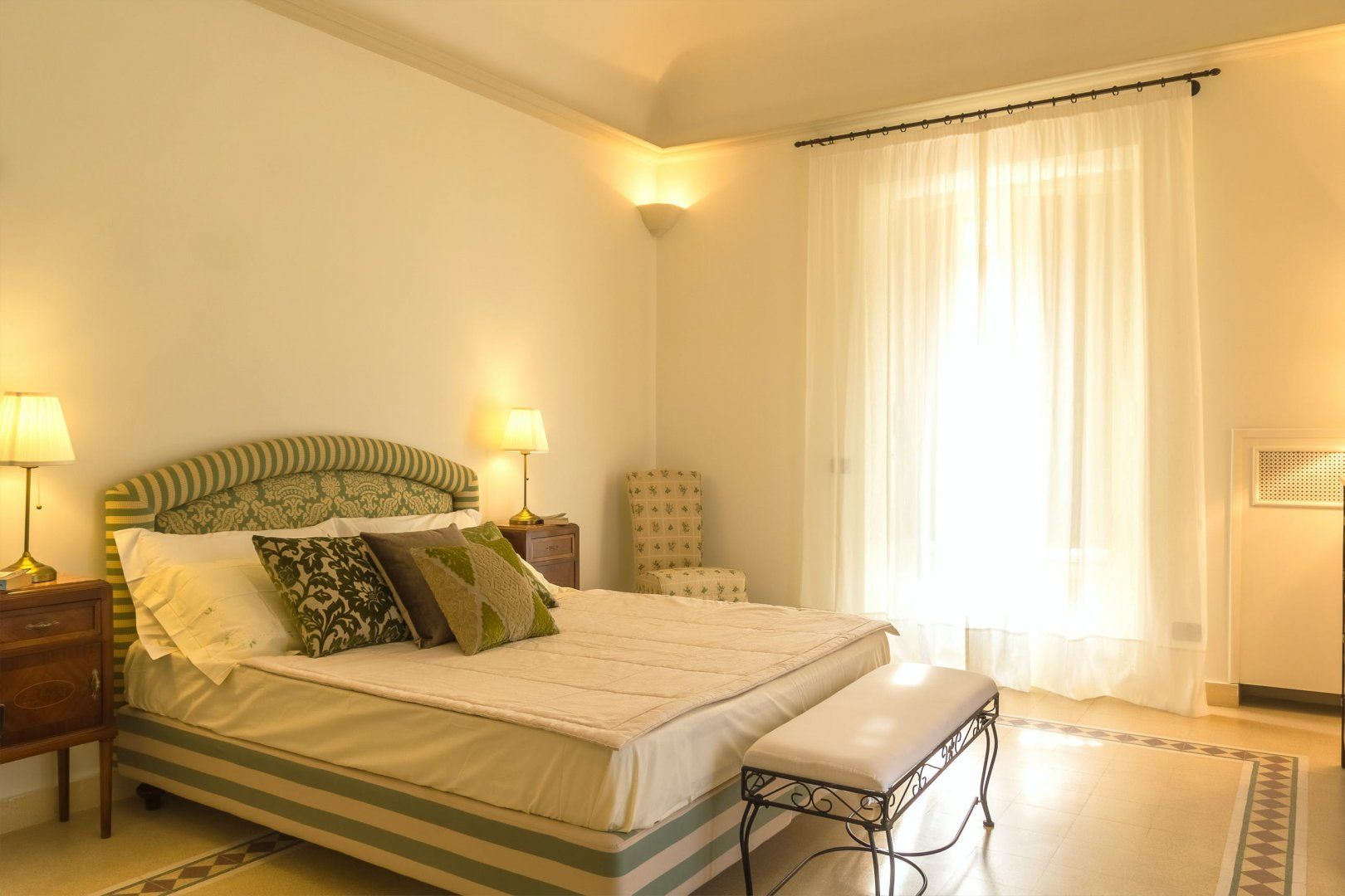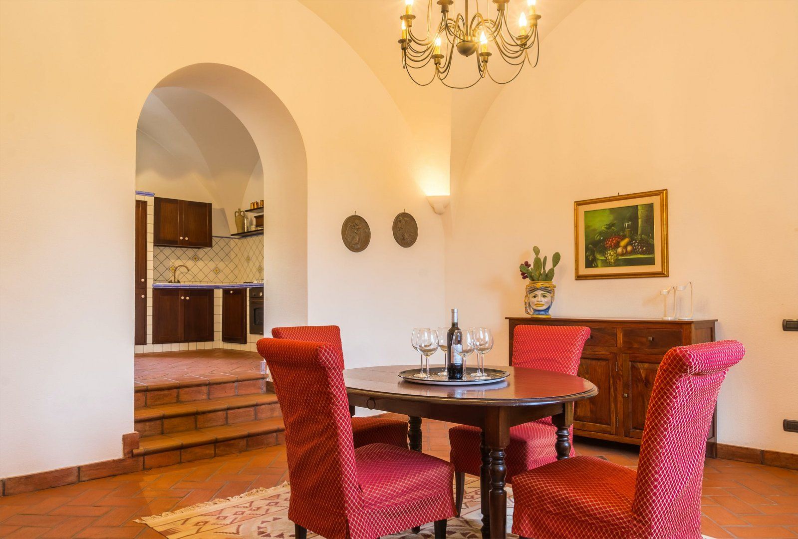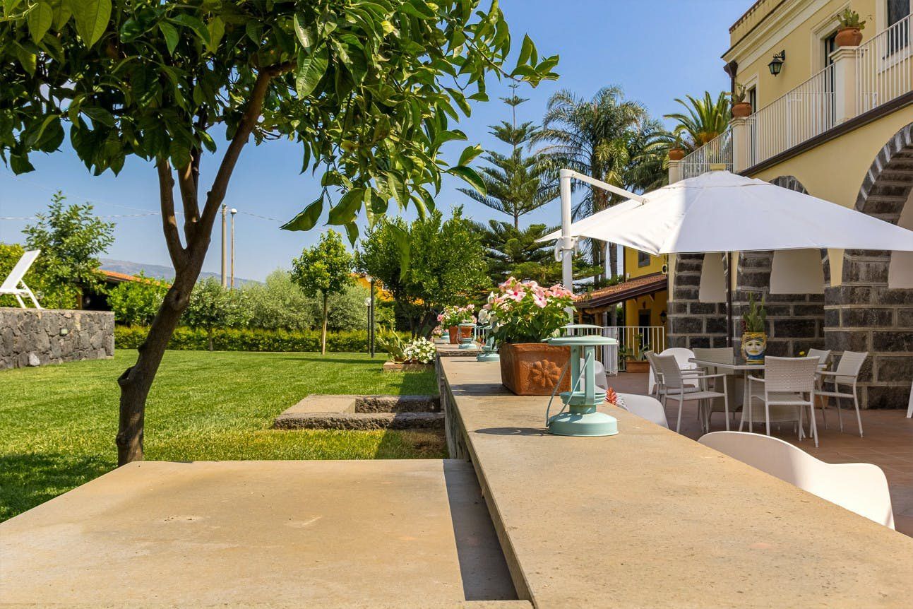 Situated on the slopes of Mount Etna and with stunning views of the volcano and sea, this home is all about the location for us. The traditional interior gives a nod to its 19th-century roots and because of its design, the lower level lacks a bit of natural light. In contrast, sunlight streams into the upstairs space. The generous garden and pool area is sure to be a hit with younger ones, with space to run around while the grown-ups top up their tan. Locally, Mount Etna is just thirty minutes away, so pop it near the top of your must-visit list.