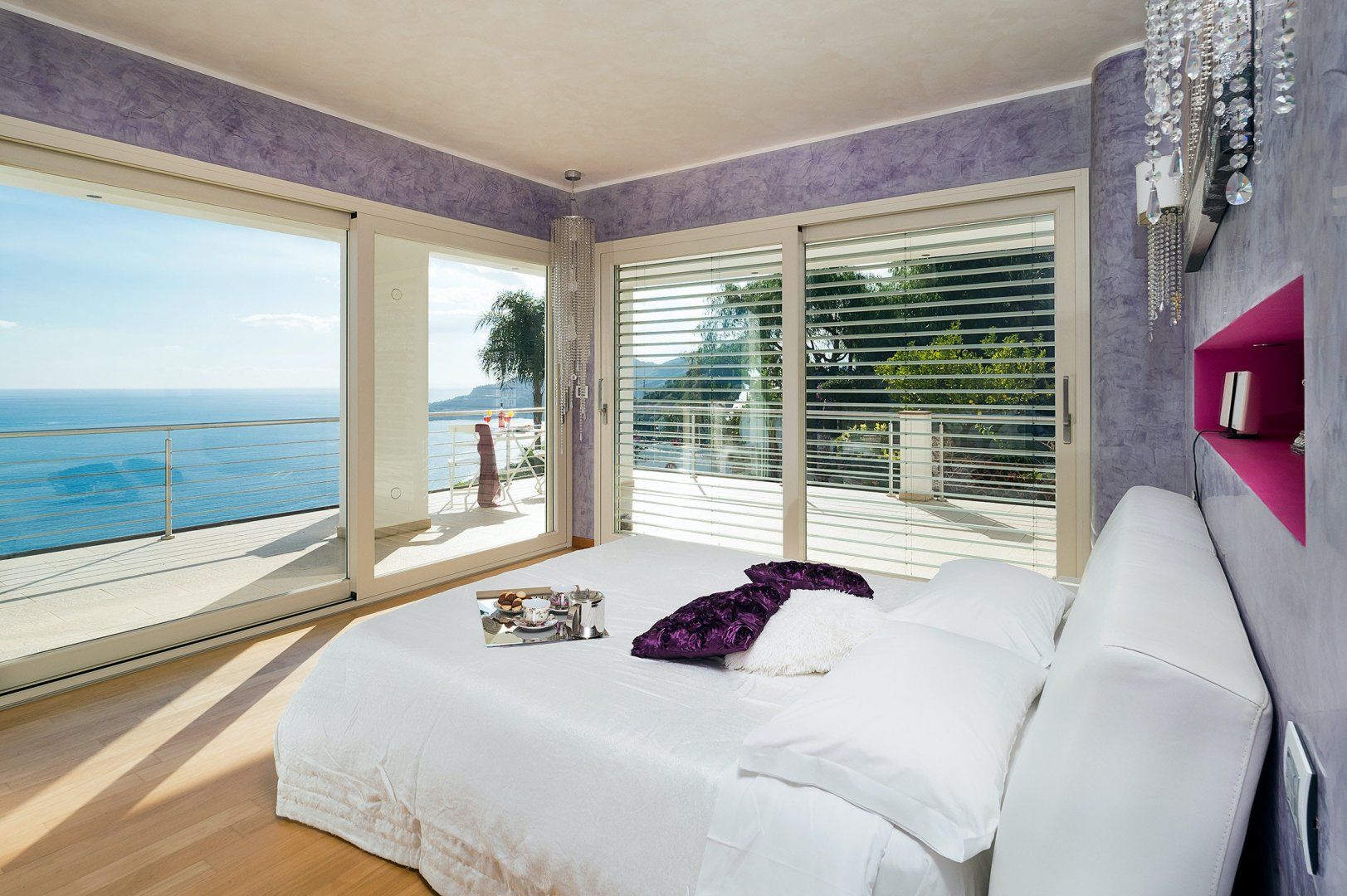 Wake up to sea breezes and glittering sunshine at this peaceful villa overlooking the turquoise Tyrrhenian. Inside the abode, expect an eye-catching blend of colour and texture – we loved the exposed stone walls and the purple mosaic bathrooms.