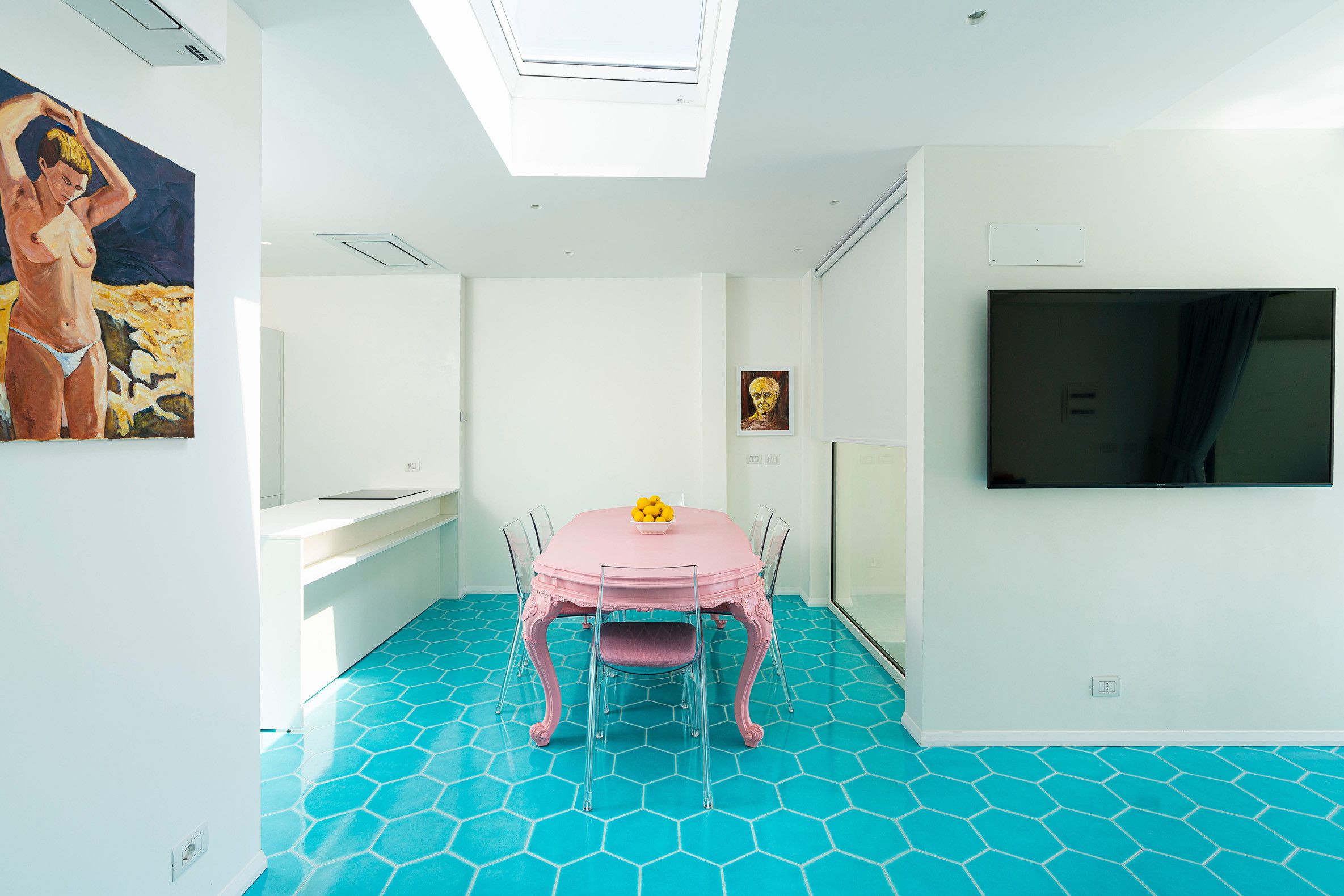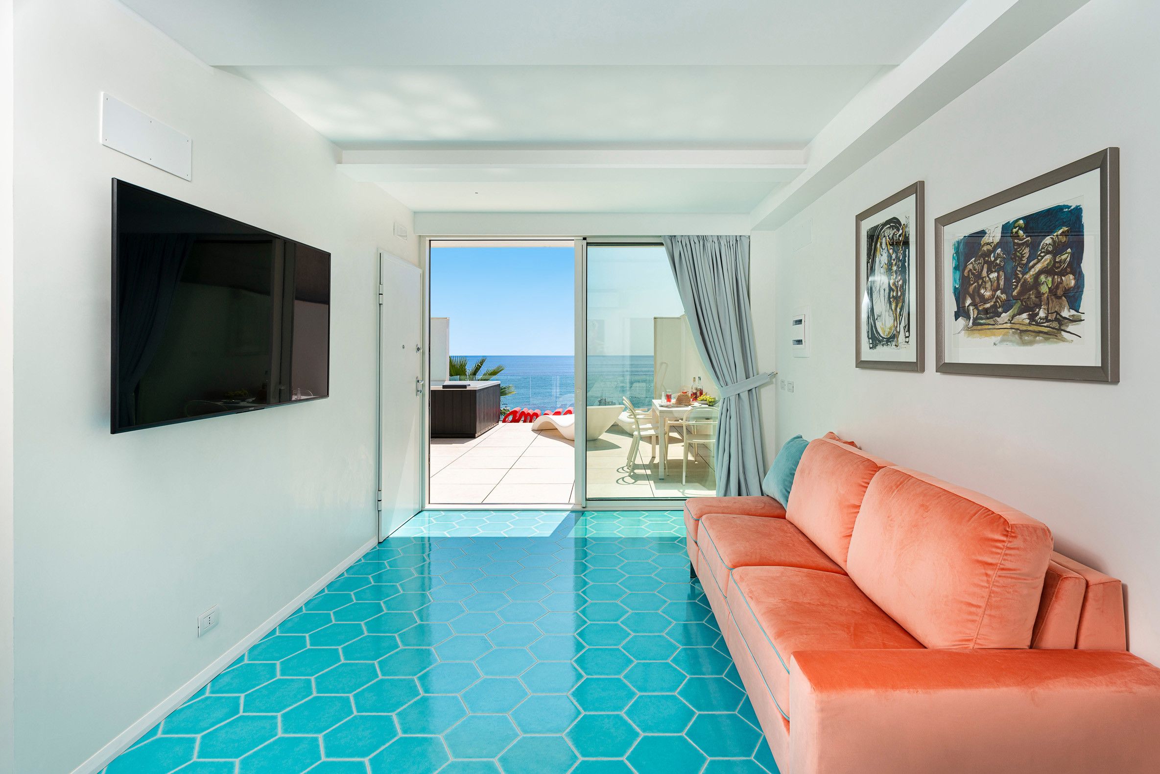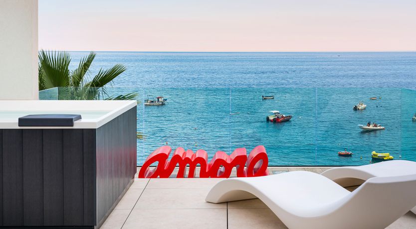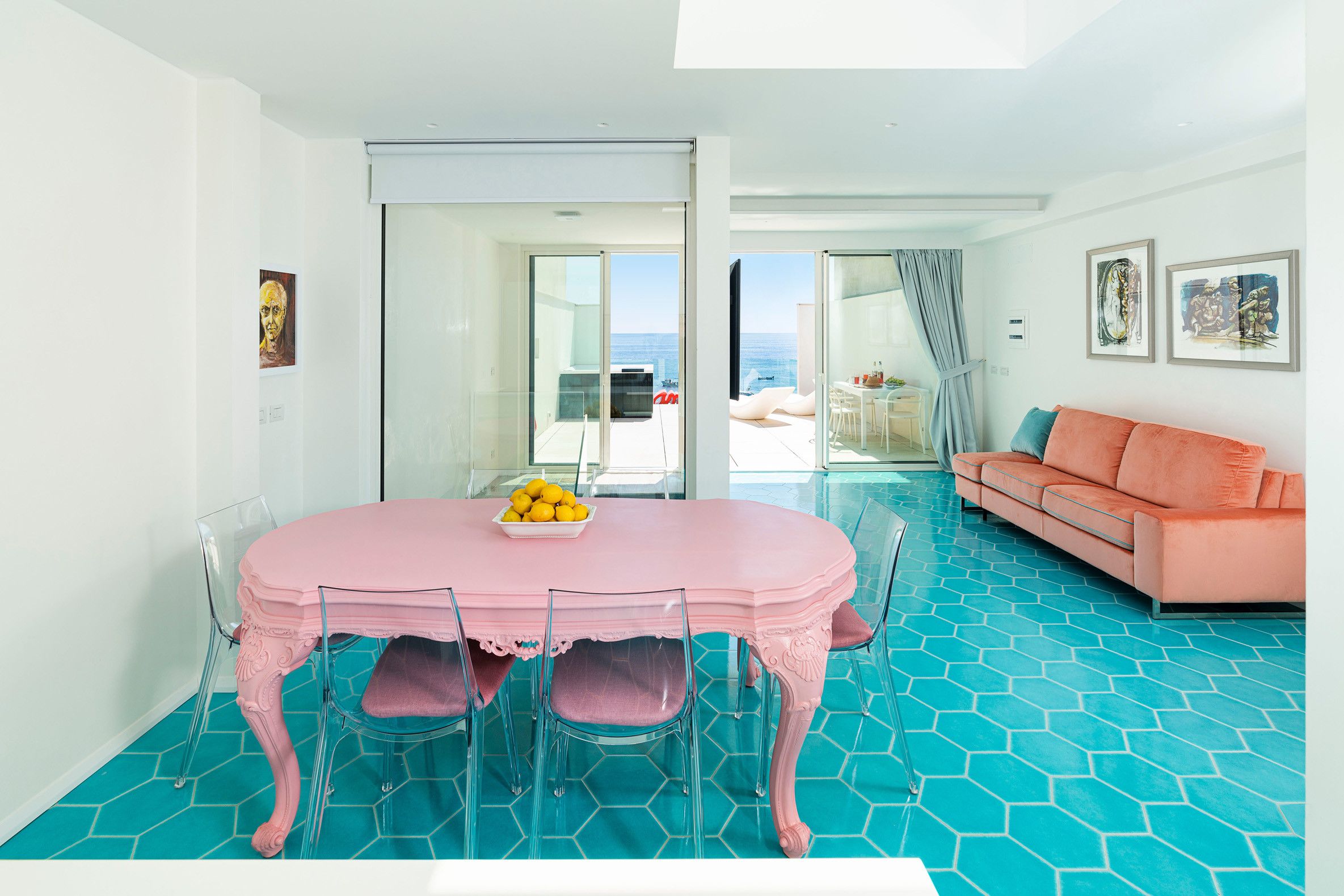 This seafront apartment makes for a special base in Sicily. You’ll find this home in Letojanni, close to Taormina and with plenty of shops, bars and restaurants nearby. When you’re not exploring Sicily or sunbathing on the beach, you’ll likely spend most of your time on the terrace. There are sun loungers, an alfresco dining area, and a Jacuzzi – it’s the perfect spot for watching the sun set with a cocktail. Inside, the decor is bright and cheerful with a nod to the sixties.