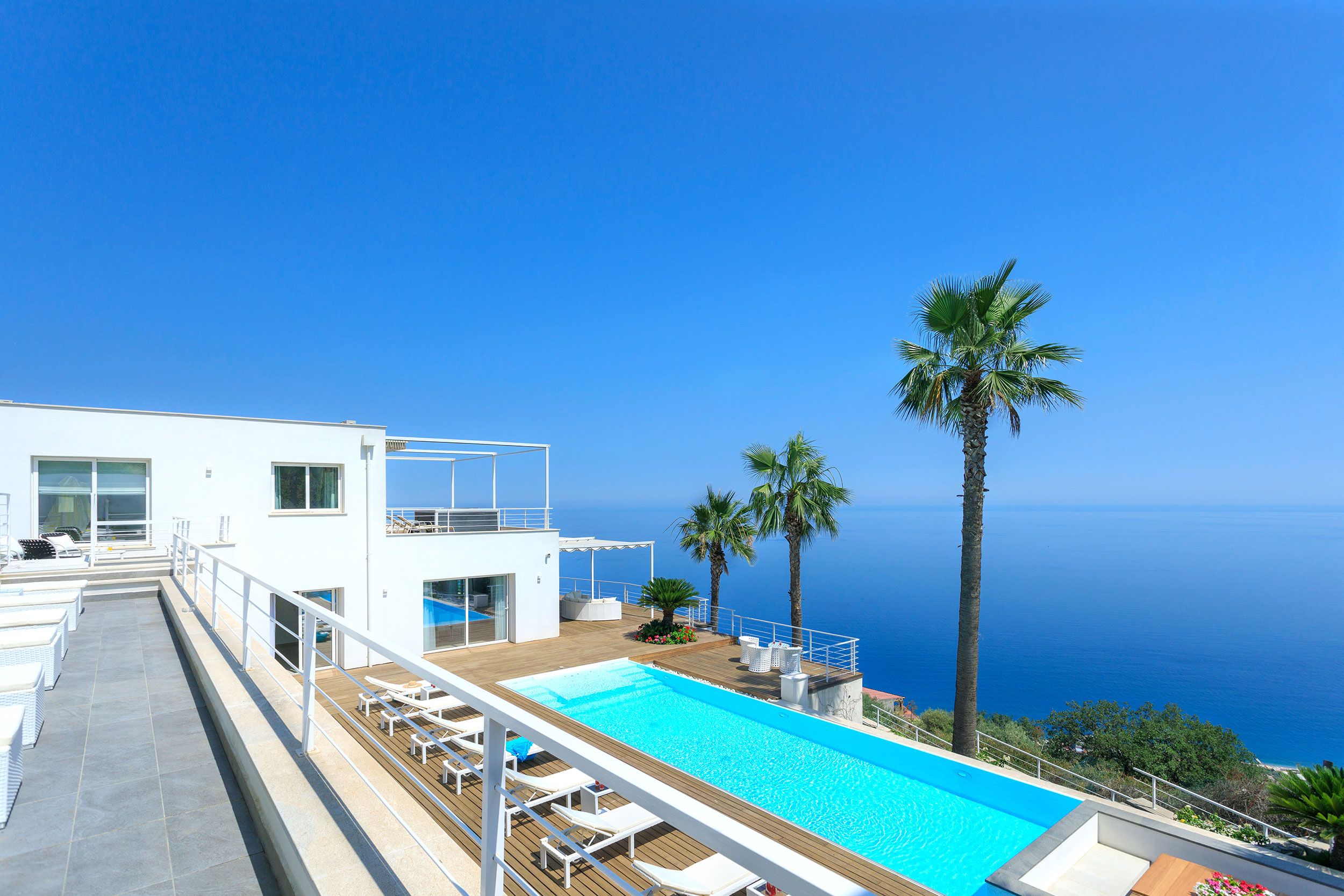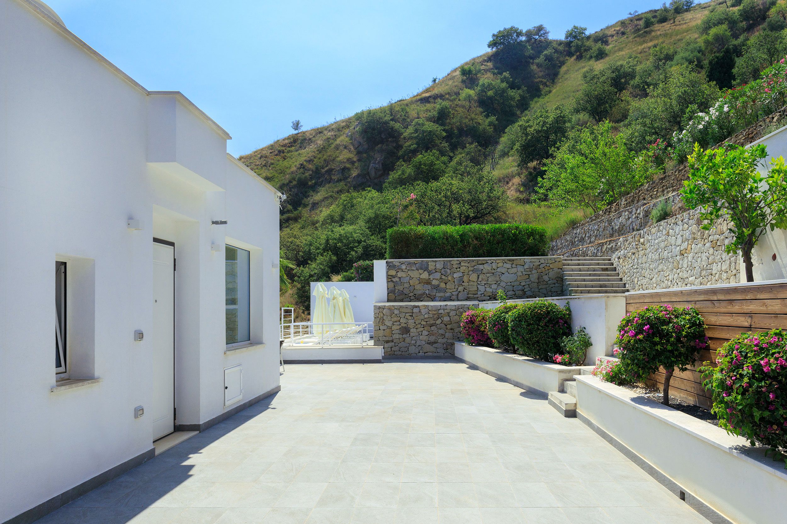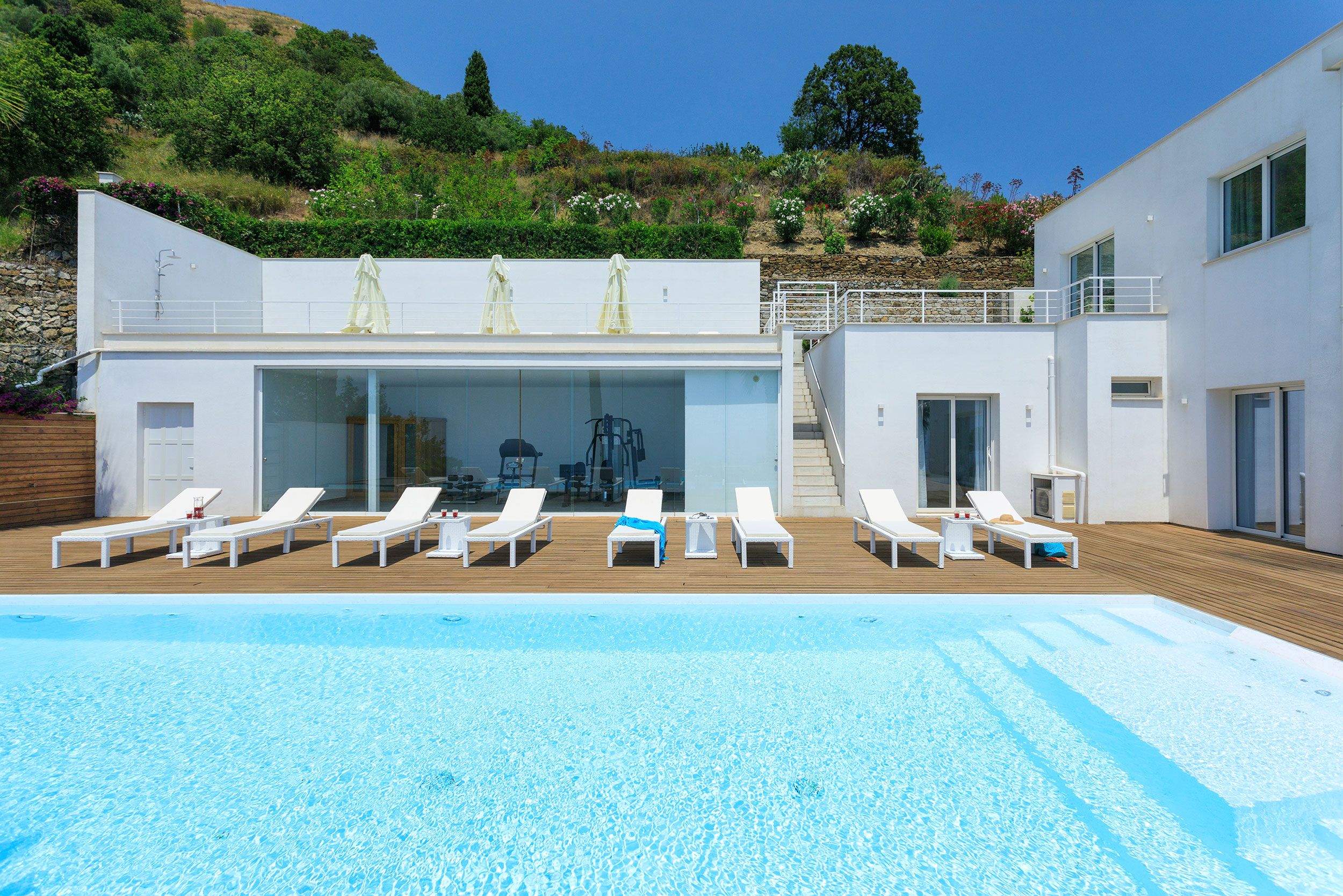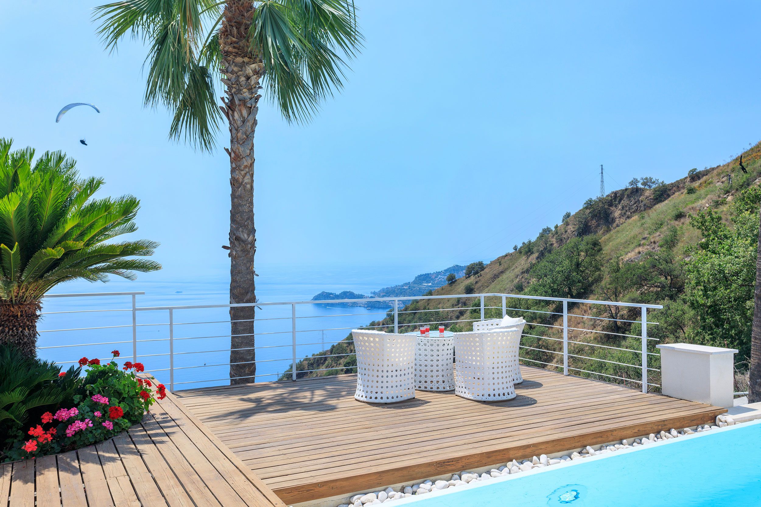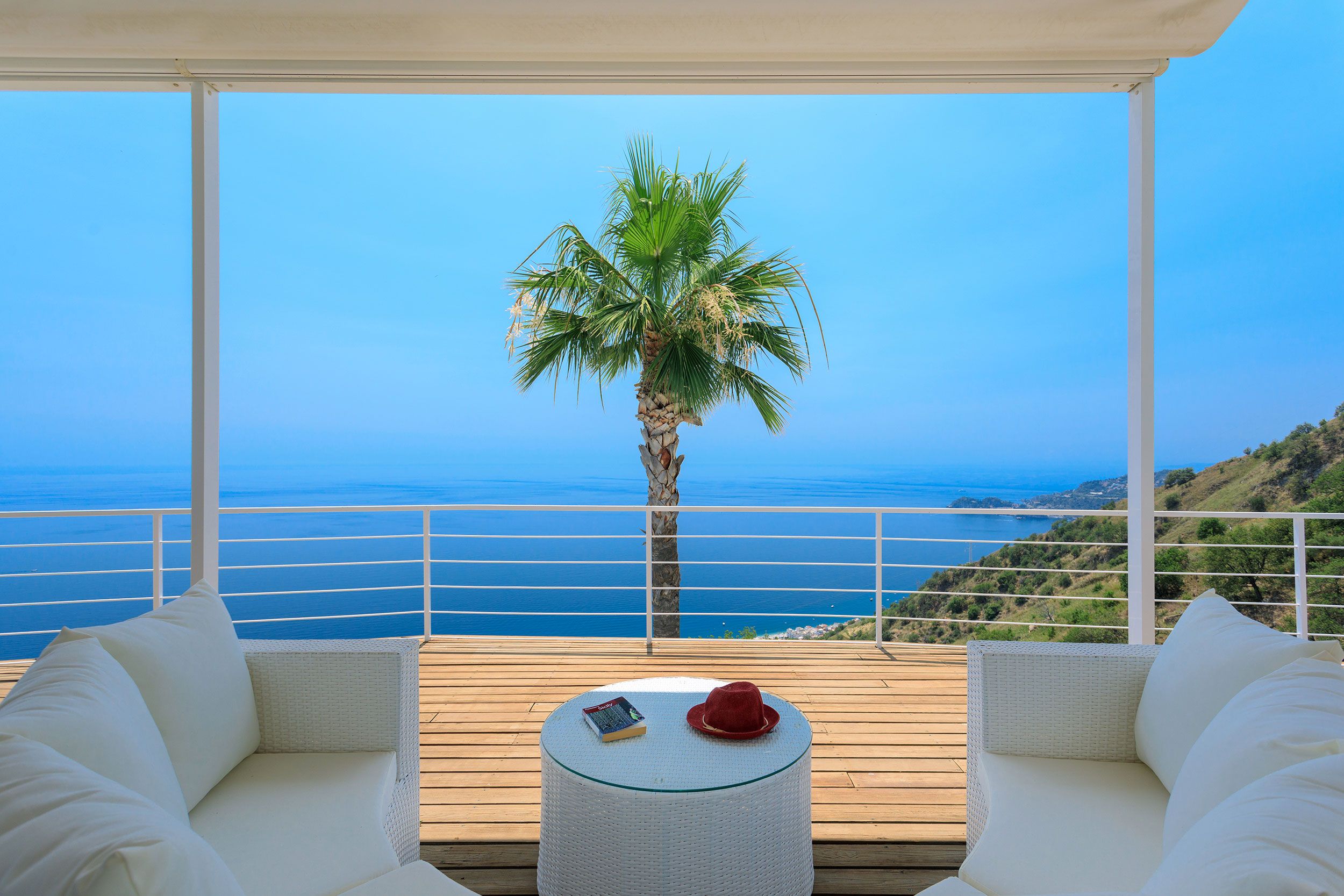This luxurious villa is a stunning base in east Sicily. It’s just above the seaside town of Letojanni and is close to Taormina, with beaches nearby. The villa boasts truly glorious views over the Ionian Sea and Taormina, which can be admired from inside as well as outside, thanks to floor-to-ceiling sliding French doors. Inside, the decor is crisp and clean, and you’ll find everything you need to enjoy a comfortable, relaxing stay. There’s even a gym and a sauna. Outside, the infinity pool is the main focus – aside from the views. The pool has a hydromassage area, and there’s a separate Jacuzzi. We love the alfresco dining area – there’s a barbecue to cook on too.