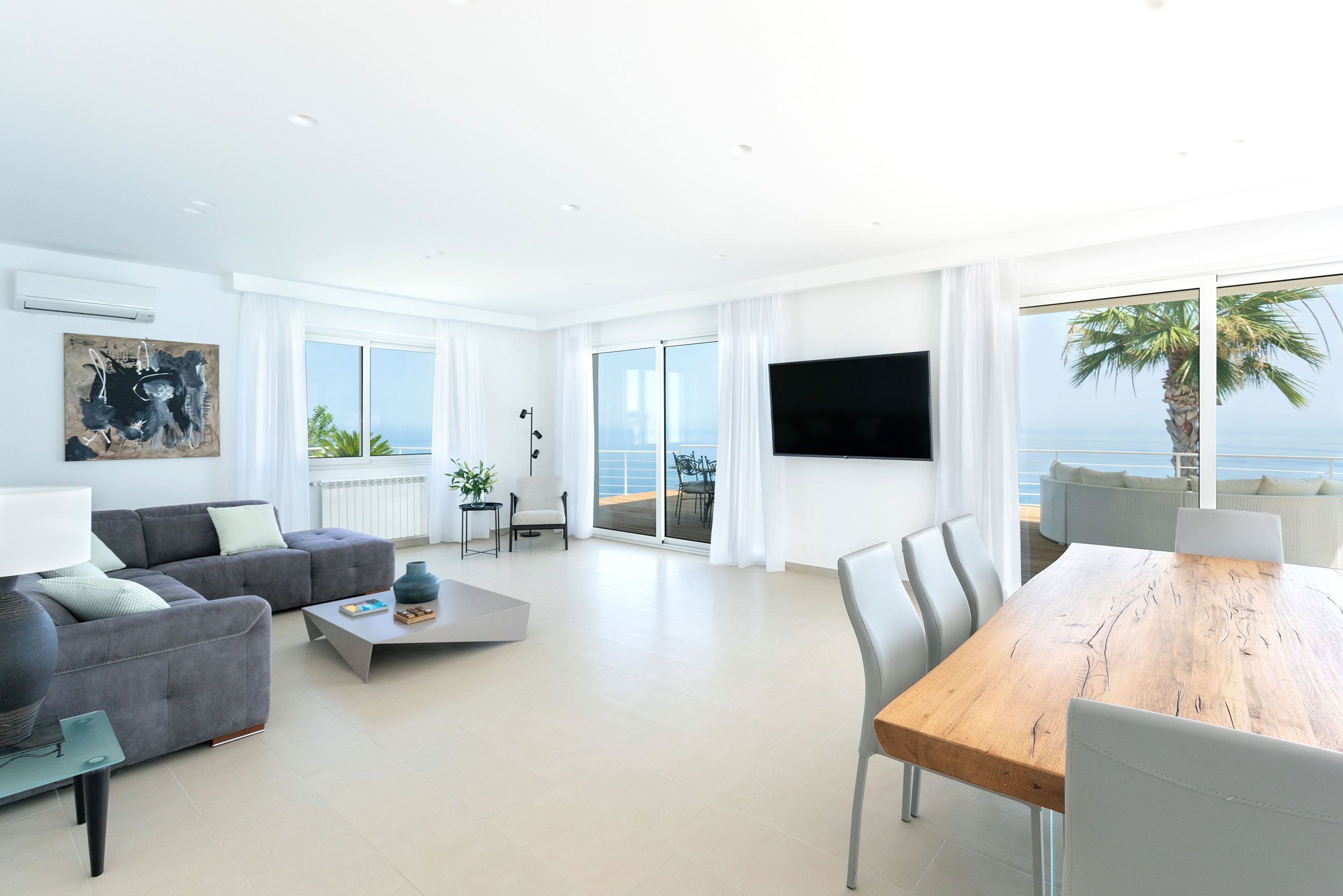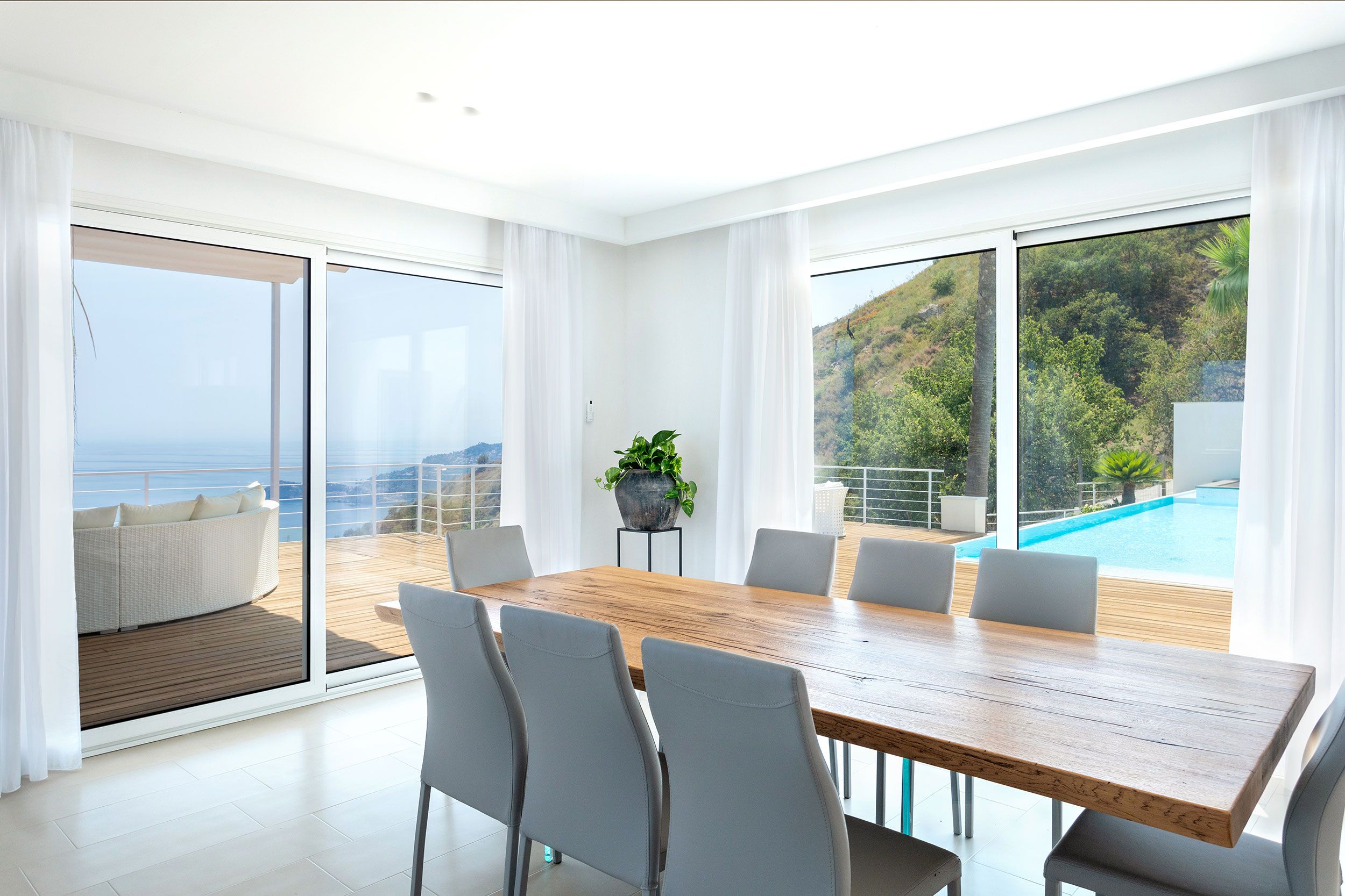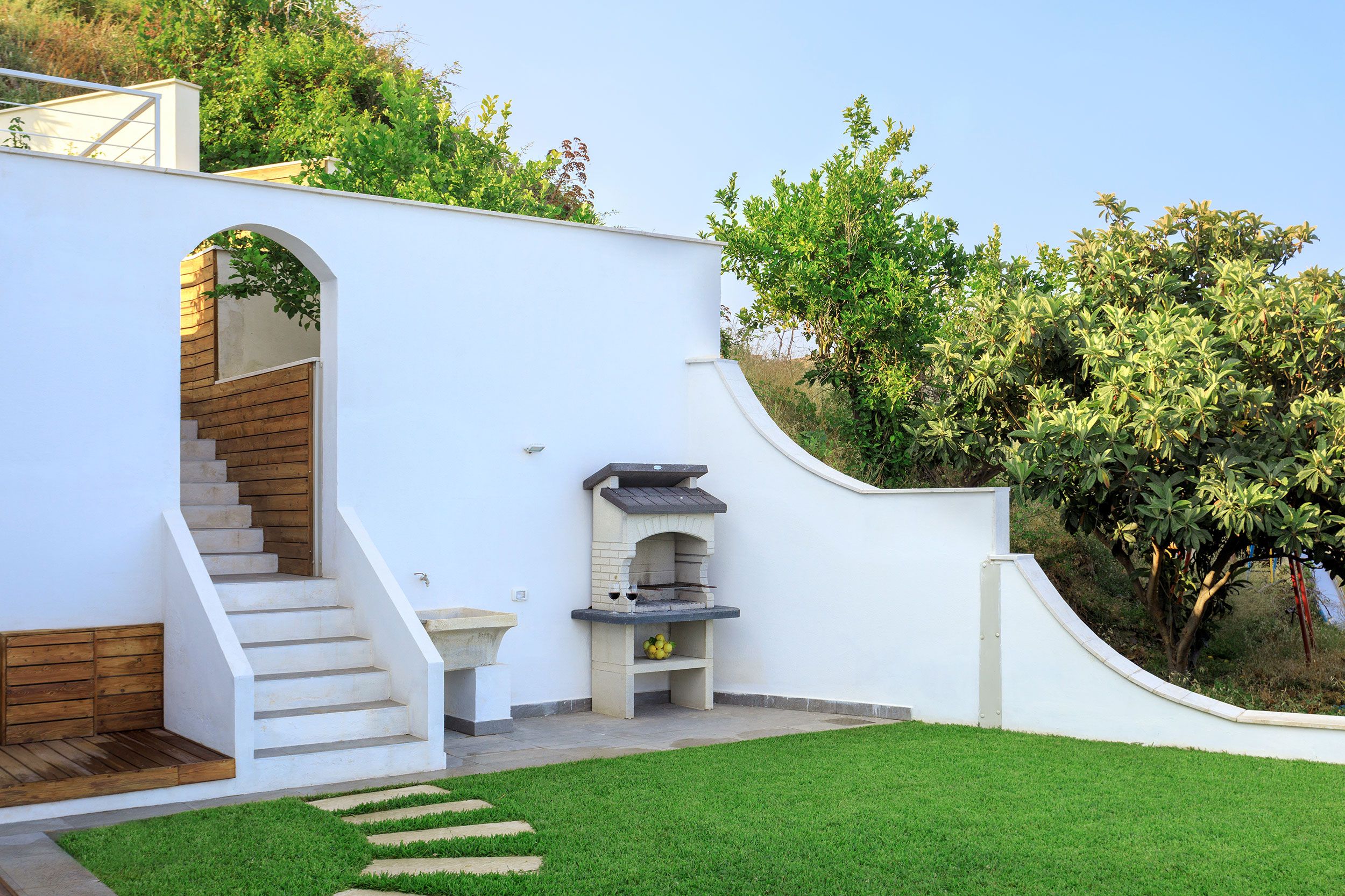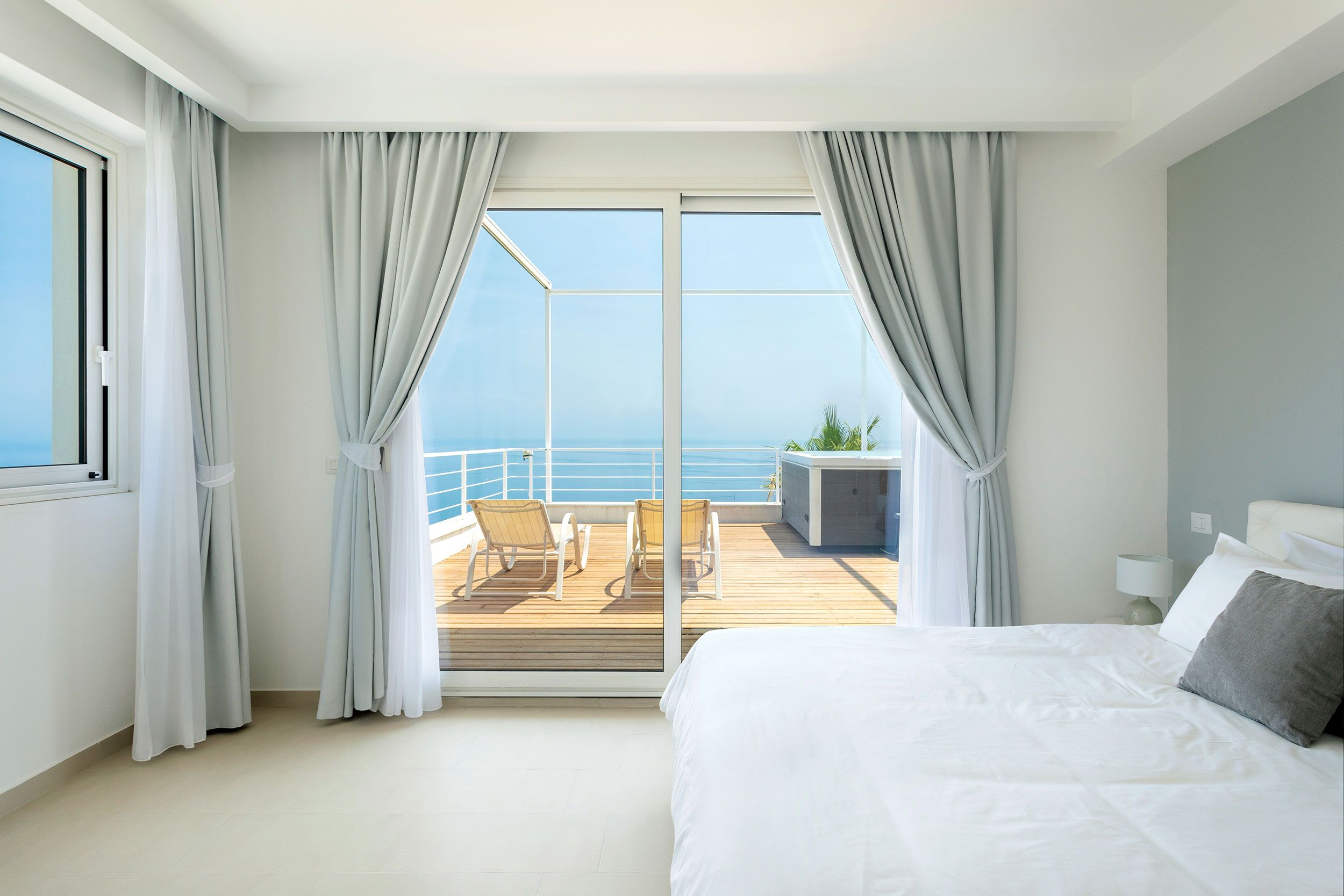 This luxurious villa is a stunning base in east Sicily. It’s just above the seaside town of Letojanni and is close to Taormina, with beaches nearby. The villa boasts truly glorious views over the Ionian Sea and Taormina, which can be admired from inside as well as outside, thanks to floor-to-ceiling sliding French doors. Inside, the decor is crisp and clean, and you’ll find everything you need to enjoy a comfortable, relaxing stay. There’s even a gym and a sauna. Outside, the infinity pool is the main focus – aside from the views. The pool has a hydromassage area, and there’s a separate Jacuzzi. We love the alfresco dining area – there’s a barbecue to cook on too.