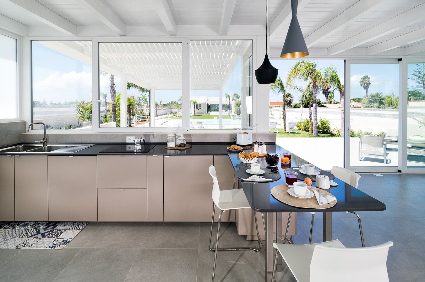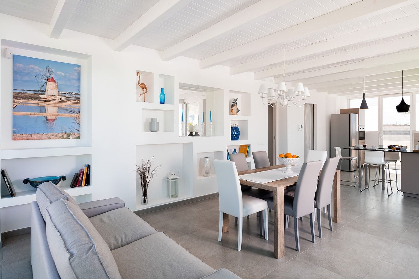 Chic and modern, this villa is an ideal base for friends or family on a Sicilian retreat. Set over two non-connecting floors, both have living, dining and kitchen areas, so it’s a fantastic choice for people who like to holiday together, yet still enjoy some privacy. Step outdoors, and you can take advantage of the sun-kissed terraces, a Mediterranean garden and a swimming pool that’s shared with the owners, who live in another villa on-site. Ready to head out and explore? It’s a short distance to the beach of Lido Signorino, or hop in the car for a trip to Marsala, six kilometres away, where authentic Italian eateries and shops await.