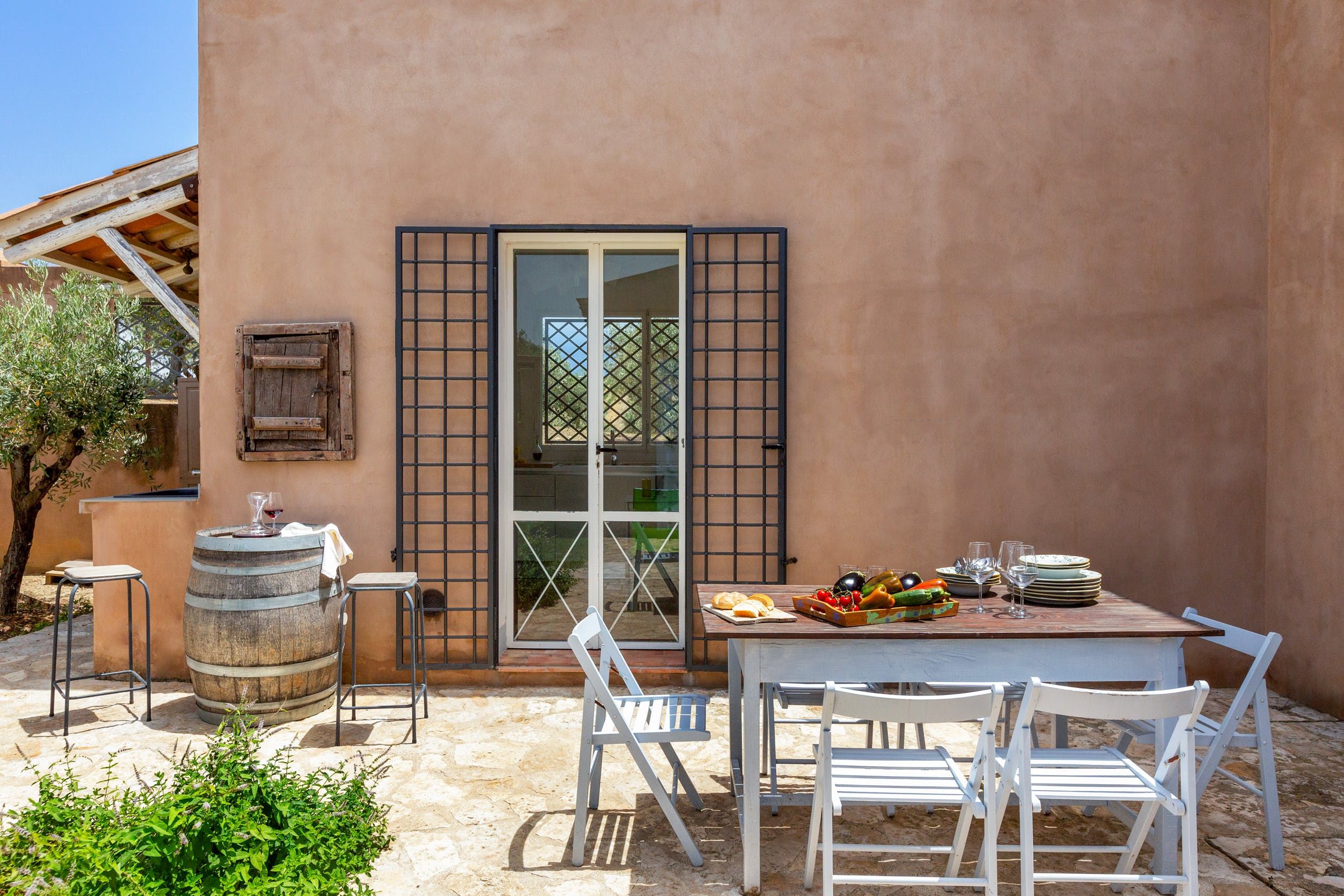 Stepping inside, you’ll find a bright and breezy interior – it’s a lovely mix of traditional Sicily styling with a touch of contemporary furnishings. Patio doors invite you out to the courtyard, where you can embrace the laidback, country lifestyle and prepare lunches on the outdoor worktop. This enclosed area is a wonderful place to let the little ones run free, but the front of the house is where the real magic lies.