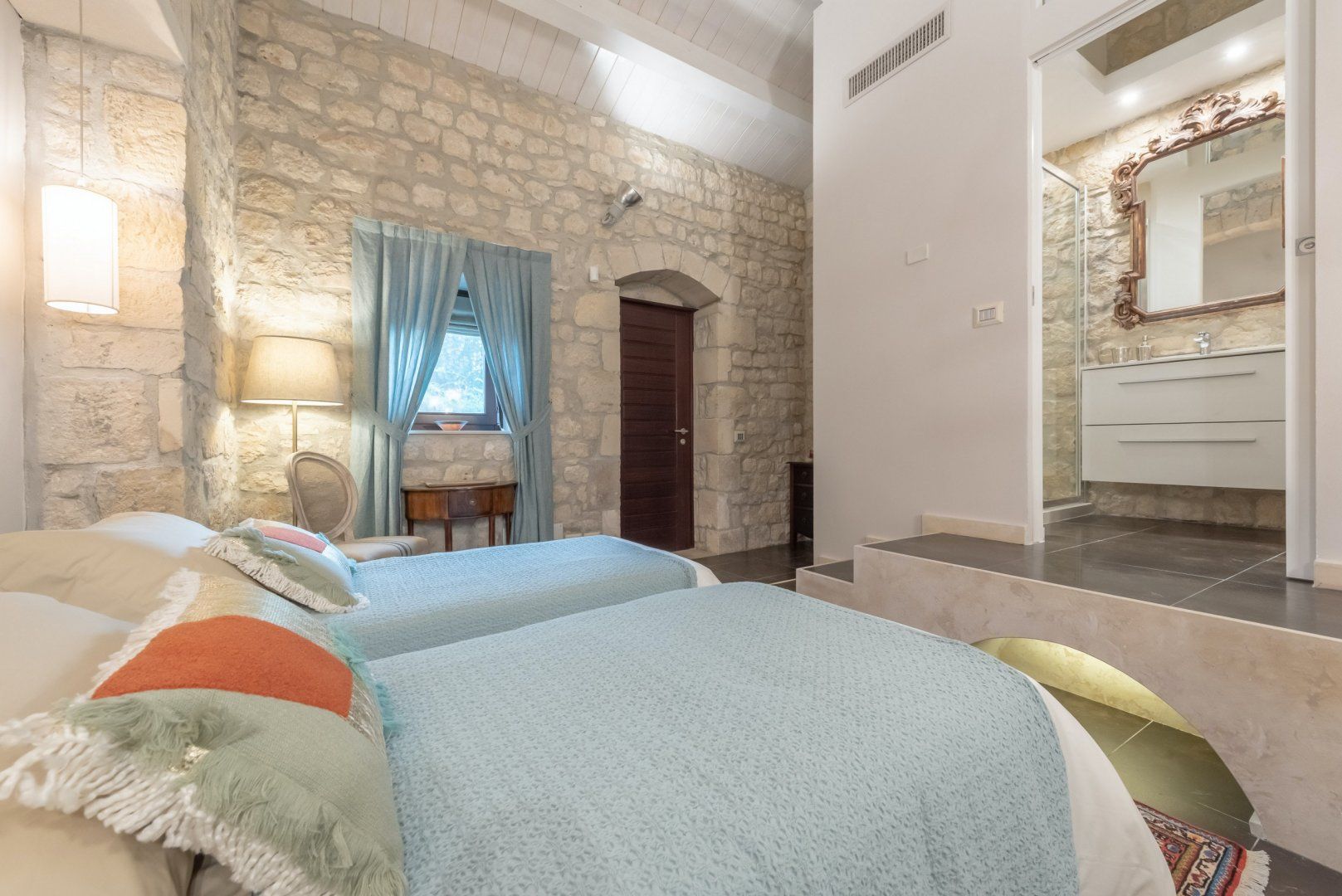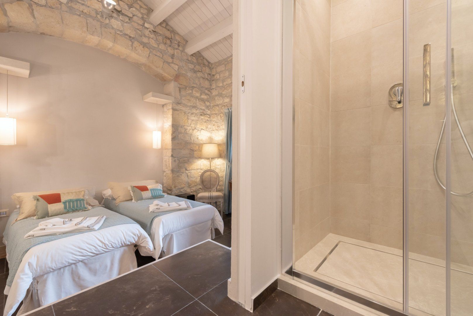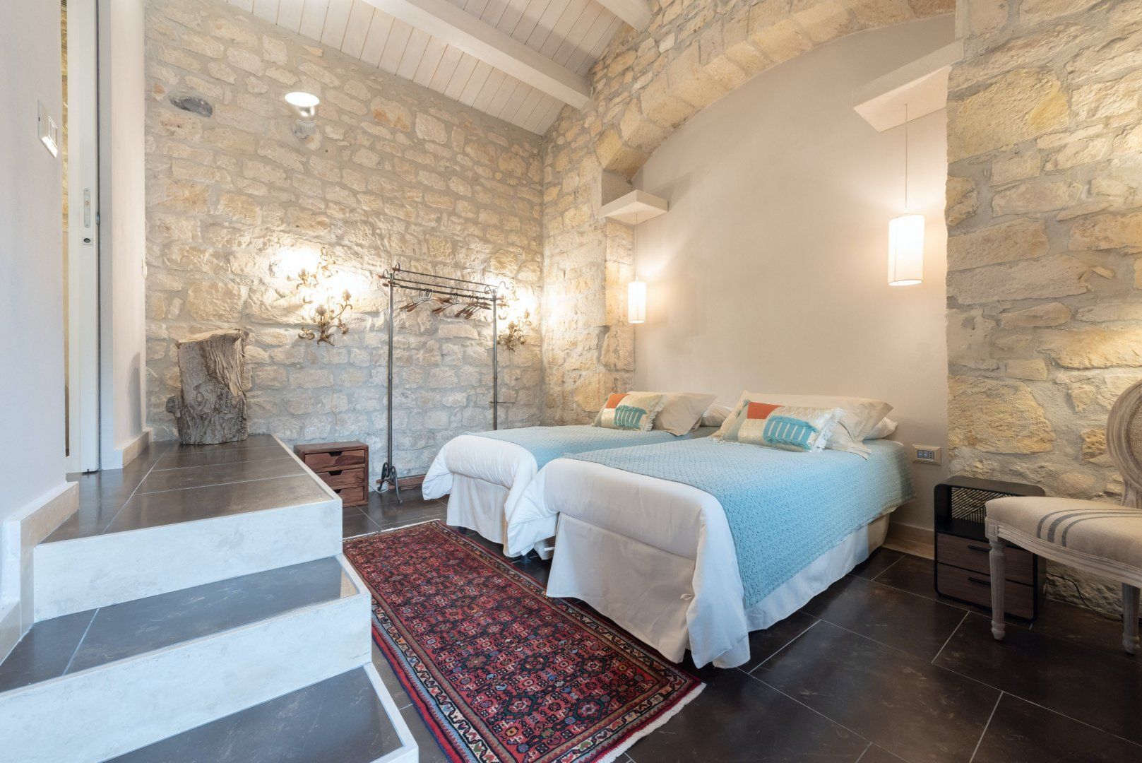 Back home, after days of exploring, that hydromassage pool has rest and reset written all over it – as does that expansive veranda for sundowner cocktails and balmy night barbecues. On cooler evenings, take things inside beneath the vaulted ceilings of the stylish living space. That crackling fire is beckoning you to hunker down with a full-bodied glass of Nero D'avola and after-dinner treats you picked up from Modica's master chocolatiers. And when it's finally time to lay your head, each bedroom with its own shower room is as elegant as the next, with lofty ceilings and exposed stone walls bringing all the wow factor.