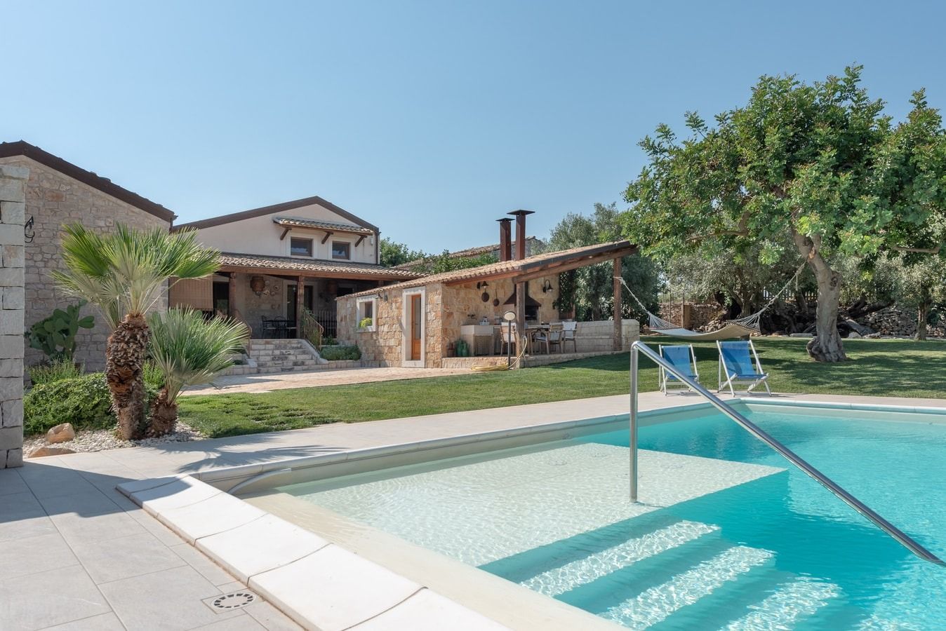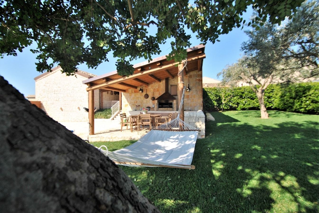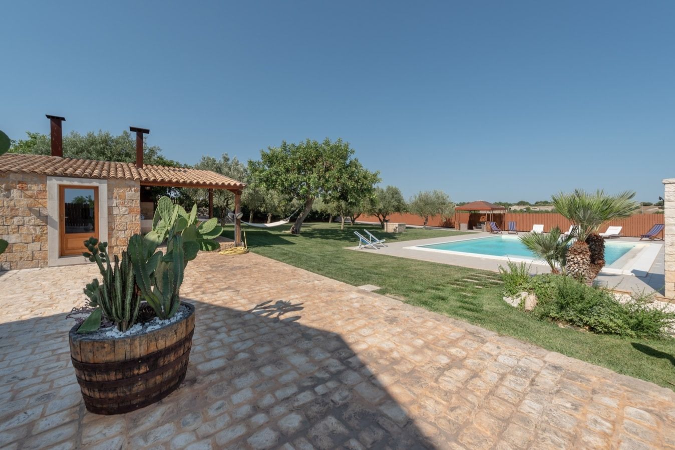 Nestled halfway between Sicily's south coast and the mountain town of Modica, this villa offers everything you need for a sun-soaked stay. The spacious garden features a large pool and patio, but if you want to cool off, there's a covered terrace – or under one of the many trees on the lawn. The hammock is surely the best spot for an afternoon nap, waking up just in time for a barbecue as the sun goes down. With a garden this big, you won't see much of the interiors, but high ceilings and natural stone walls offer a bit of character. You're in an ideal location for exploring Sicily's natural beauty – the beach at Marina di Modica is ten minutes' drive away, and bikes are provided for more local adventures.