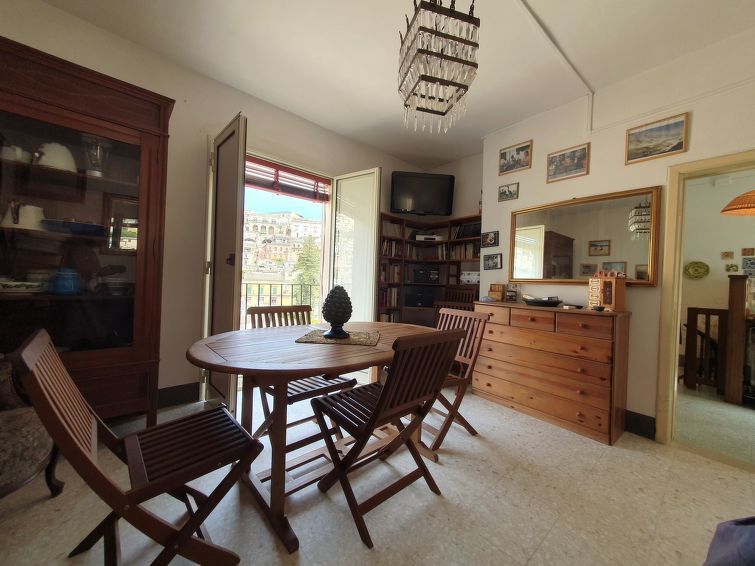 4-room house 45 m2 on 2 levels, on the upper ground floor. Bright, simple and beautiful furnishings: living room. 1 double bedroom with air conditioning and forced-air heating. Shower/bidet/WC. Upper floor: (spiral staircase) walk-through room. Exit to the terrace. Living/dining room with 1 sofabed.