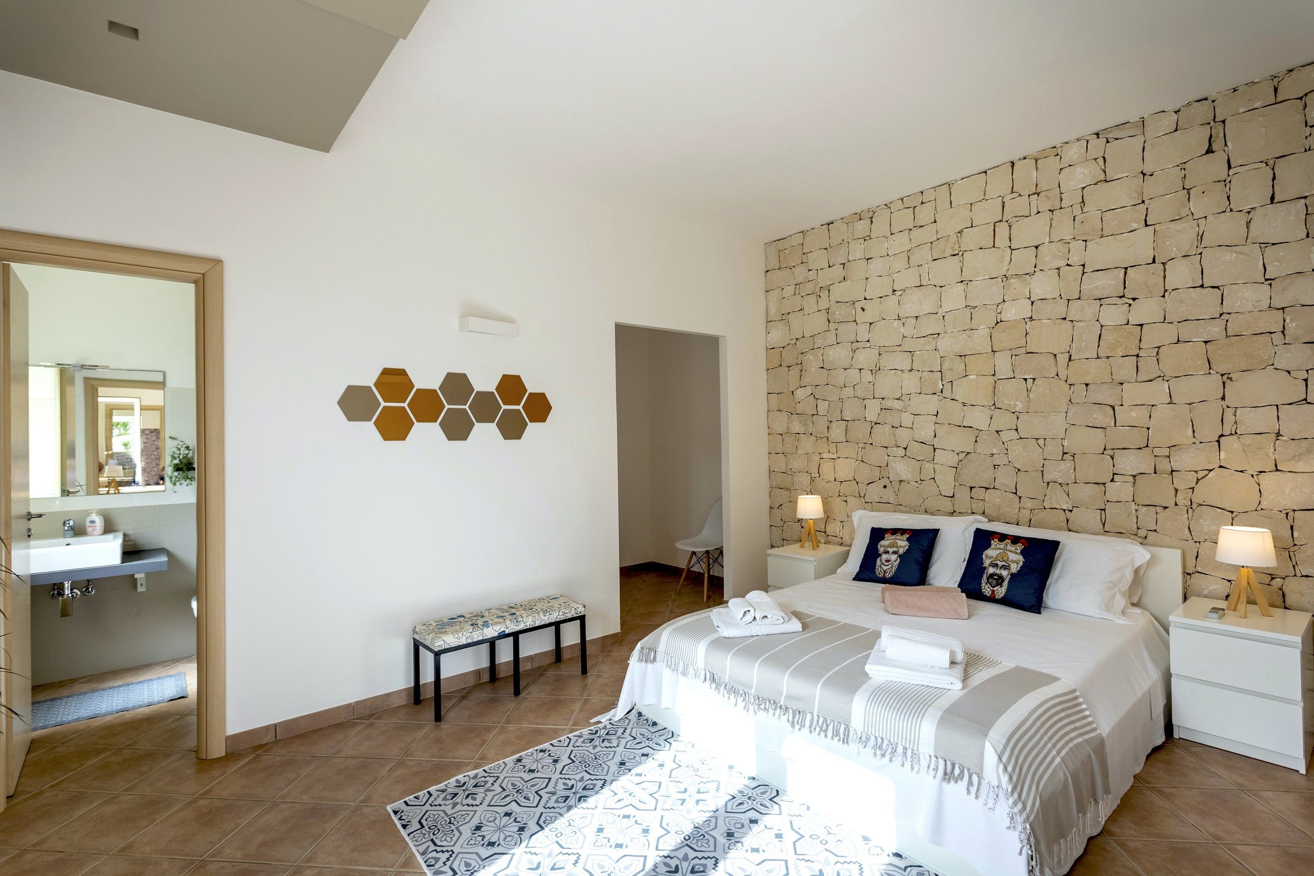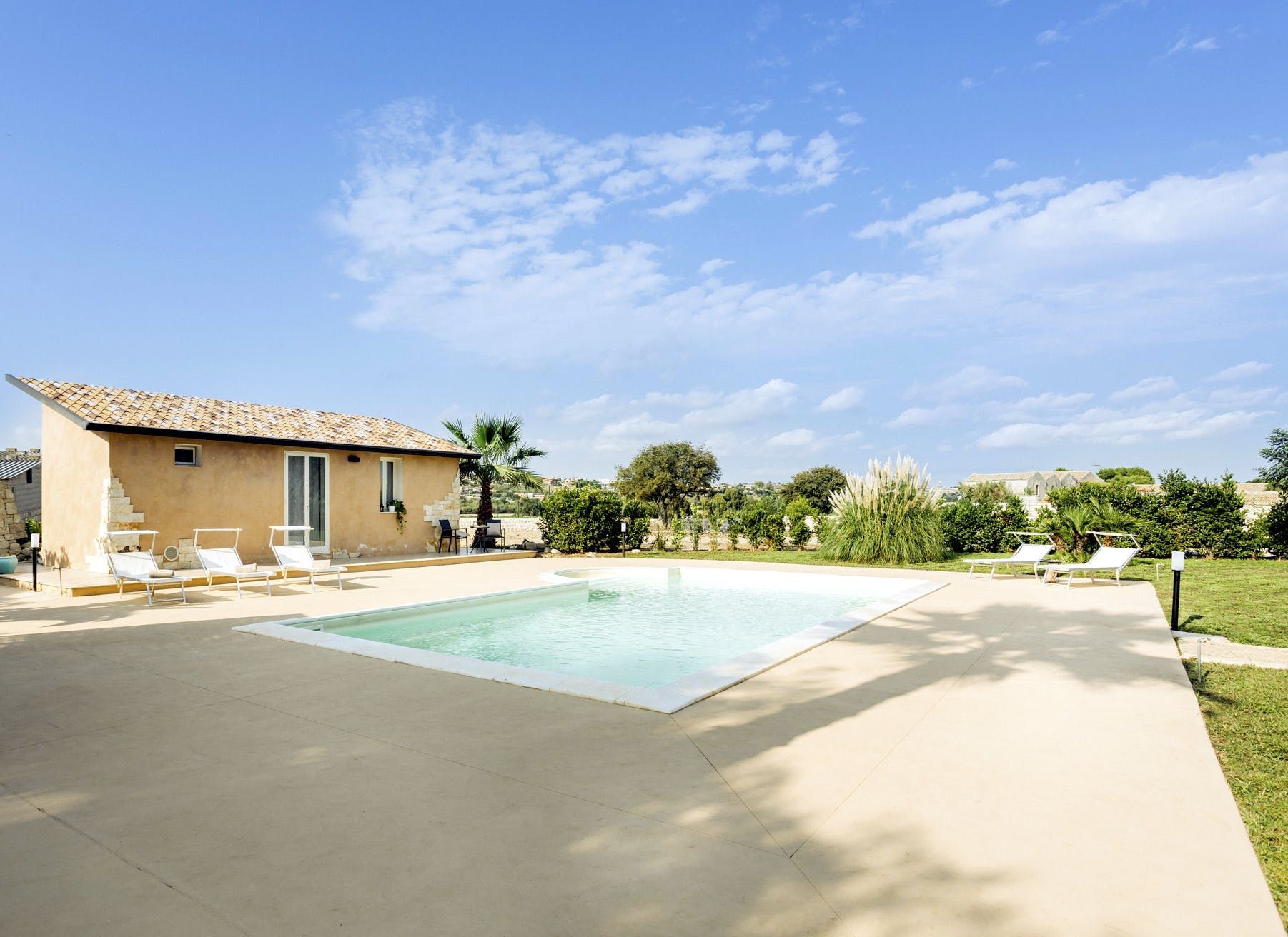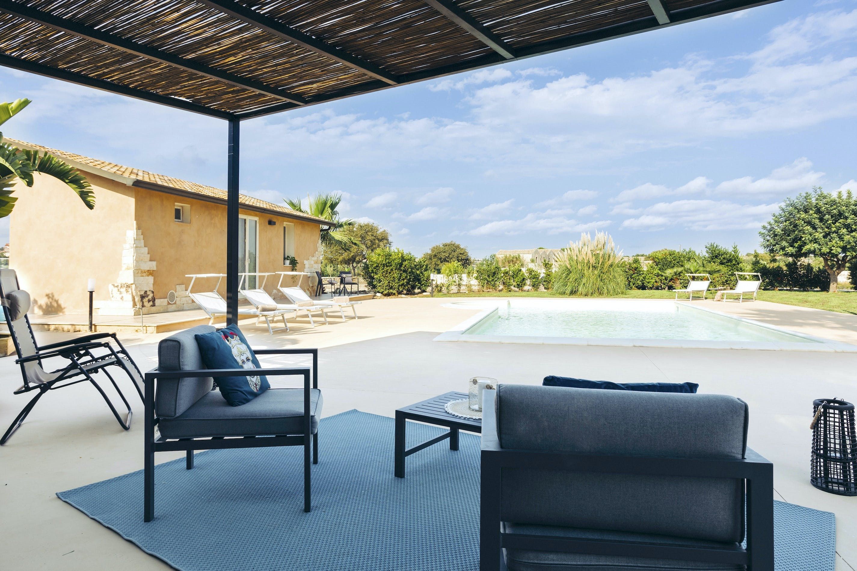 Nestled in the countryside between the sea and the city of Modica, this home makes the ideal setting for a relaxing getaway. It’s worth noting the apartment is set within the grounds of the owner’s home and the swimming pool is shared, but you will have a private terrace and plenty of space to relax and unwind. Children’s amenities can be arranged on request, plus there is a lot to discover in the surroundings. From here, it’s just 12 kilometres to the nearest beach (Marina di Modica), while the nearest shops and restaurants are also within easy driving distance.