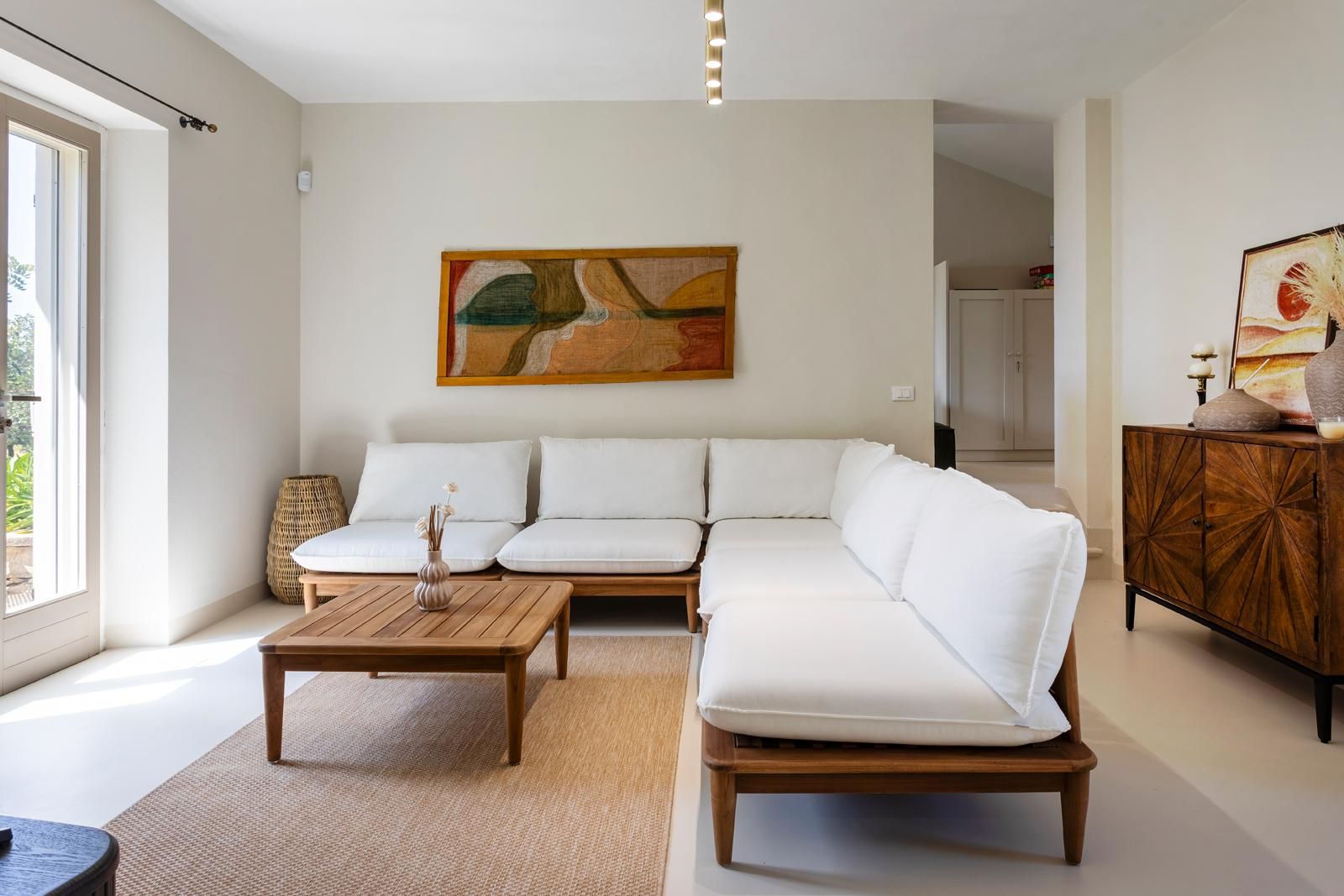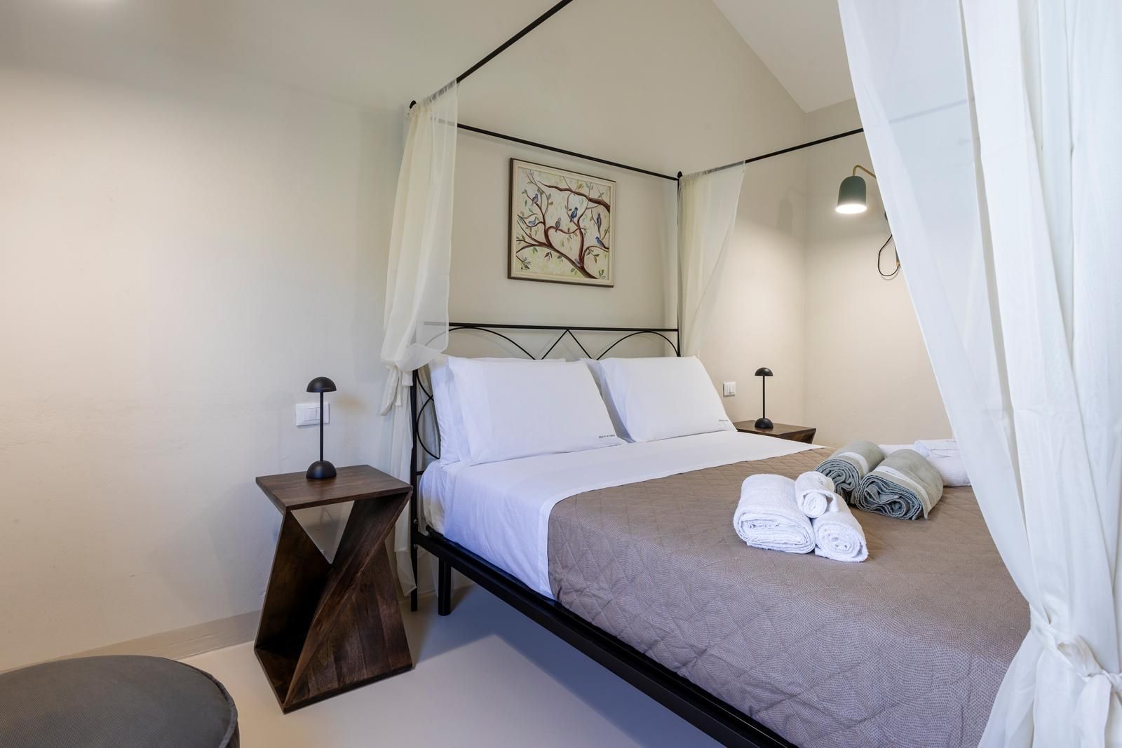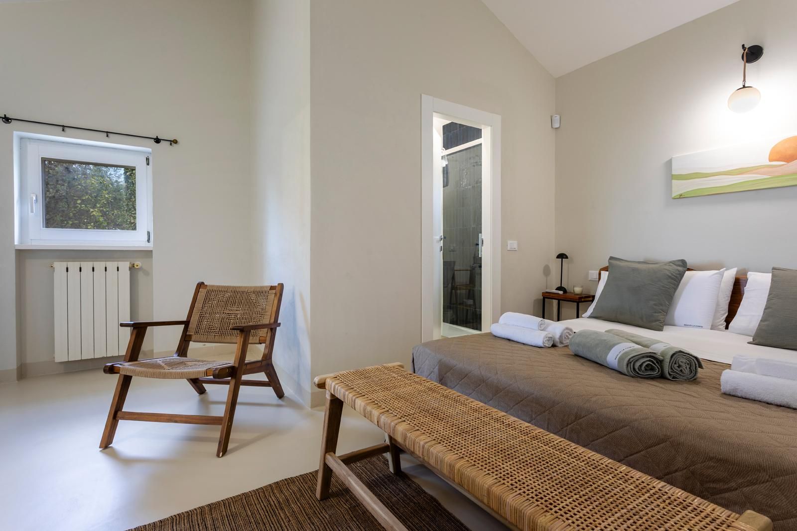 This villa sits in the countryside between the sea and Modica, with panoramic views over olive trees, citrus groves, and the coast. Outside, there’s a private pool, jacuzzi and a garden dining area that connects straight to the kitchen – great for relaxed meals with a view. The main house has three en-suite bedrooms, two of which have sofa beds if you’re a bigger group. There’s also a separate annexe with its own kitchenette, living space and mezzanine bedroom. You’ll want to hire a car, but it’s only twenty minutes to the beach, or you can head into Modica to wander its baroque streets and sample some local chocolate.