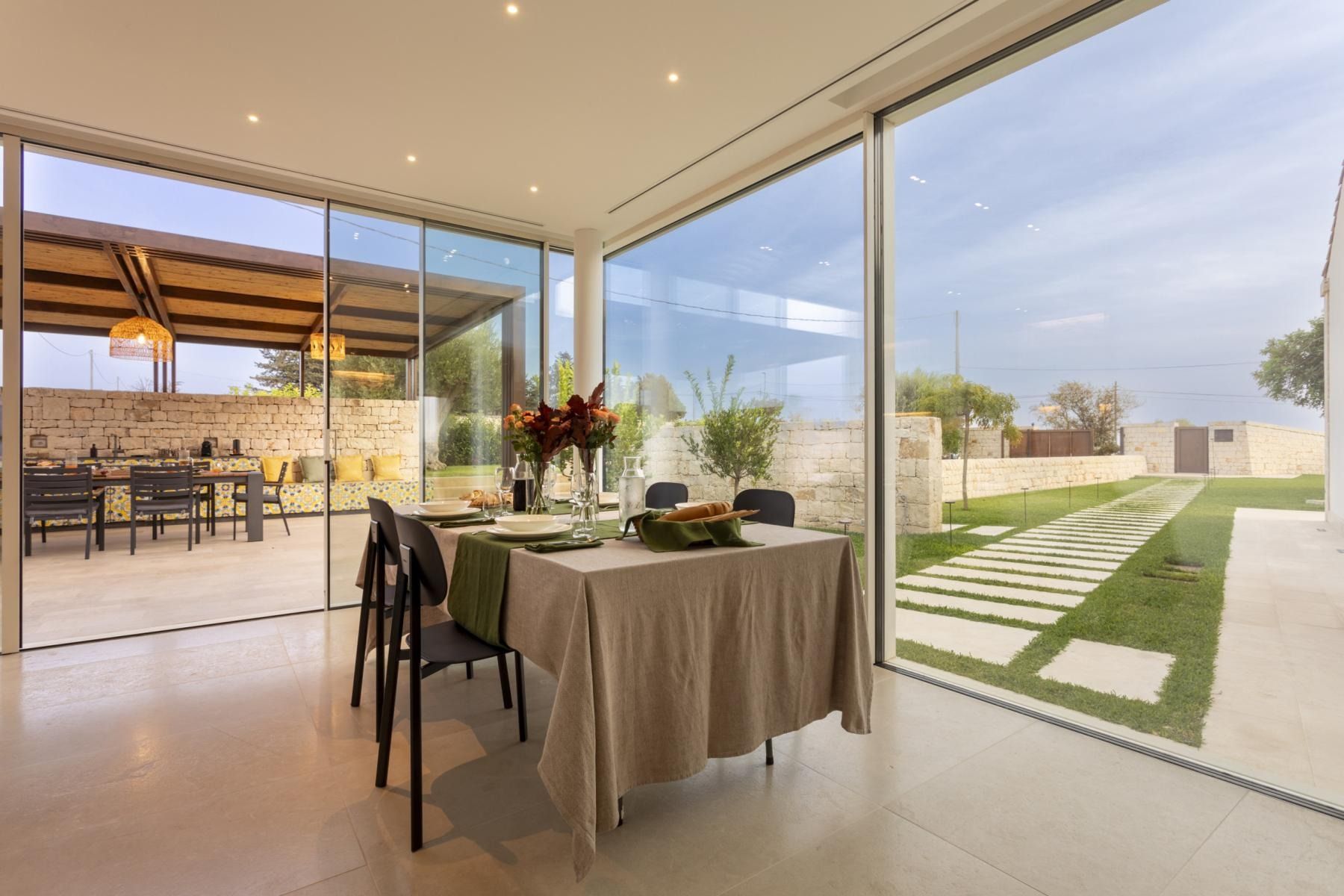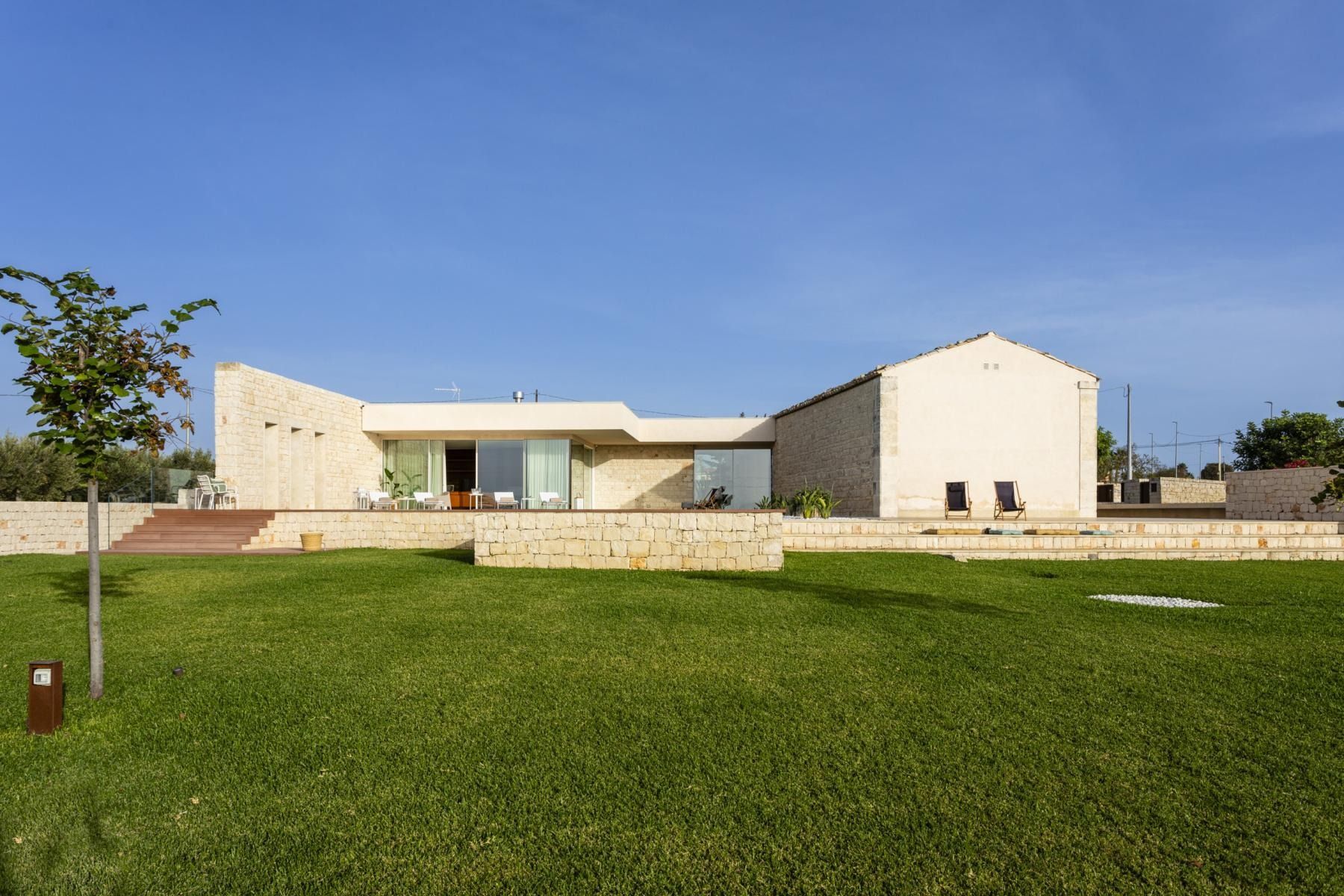 Blending traditional charm with modern convenience, this Sicilian homestay ticks a lot of boxes. Set across a single level, it features glass-panel walls and natural materials, which seamlessly blend the indoor and outdoor living spaces. The true highlight here, though, has to be the garden. It comes with an impressive outdoor kitchen, sprawling green spaces and a swimming pool, too. Well-placed for discovering all this stunning region has to offer, you'll find Modica just a five-minute drive away and the beach just a bit further afield. All in all, it measures up nicely for a stay with family or friends.