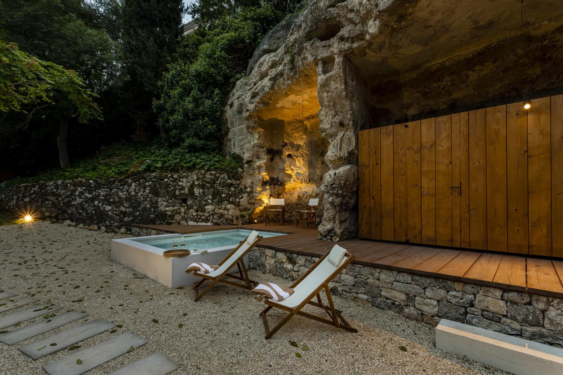 Boasting sweeping views over Modica’s baroque skyline – including a glimpse of the Duomo of San Giorgio – this home is a true Sicilian gem. Built into the rocky hillside of the historic centre, it blends seamlessly with its surroundings, with shaded terraces and a heated plunge pool carved into the stone. Inside, the natural rock walls and minimalist design create a calming, contemporary retreat. Split across two self-contained spaces – one with a kitchenette and the other with a full kitchen – it’s ideal for couples or families with older children seeking both privacy and togetherness. And with Modica’s historic streets, cafes, and trattorias just moments away, you couldn’t be better placed to soak up local life.