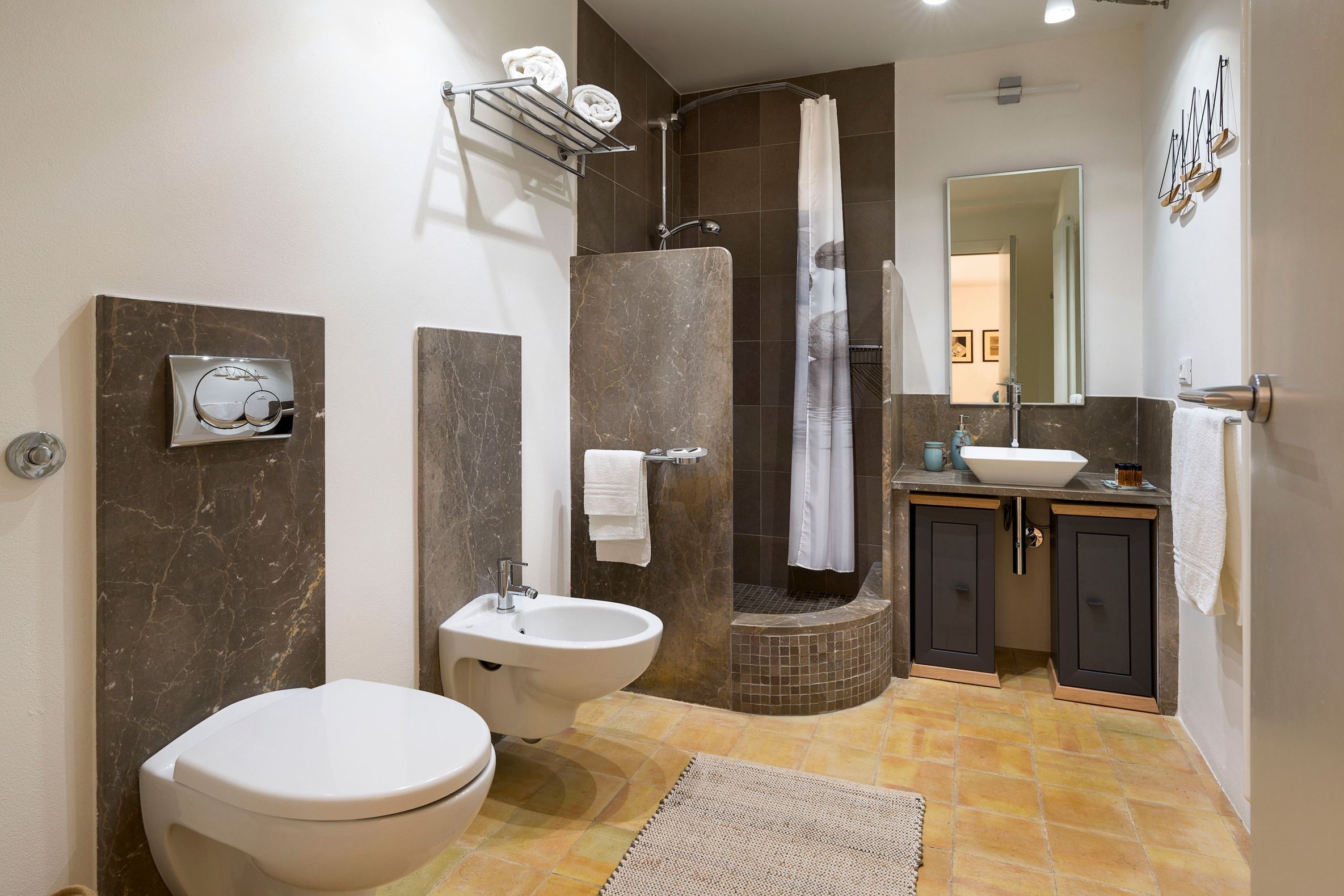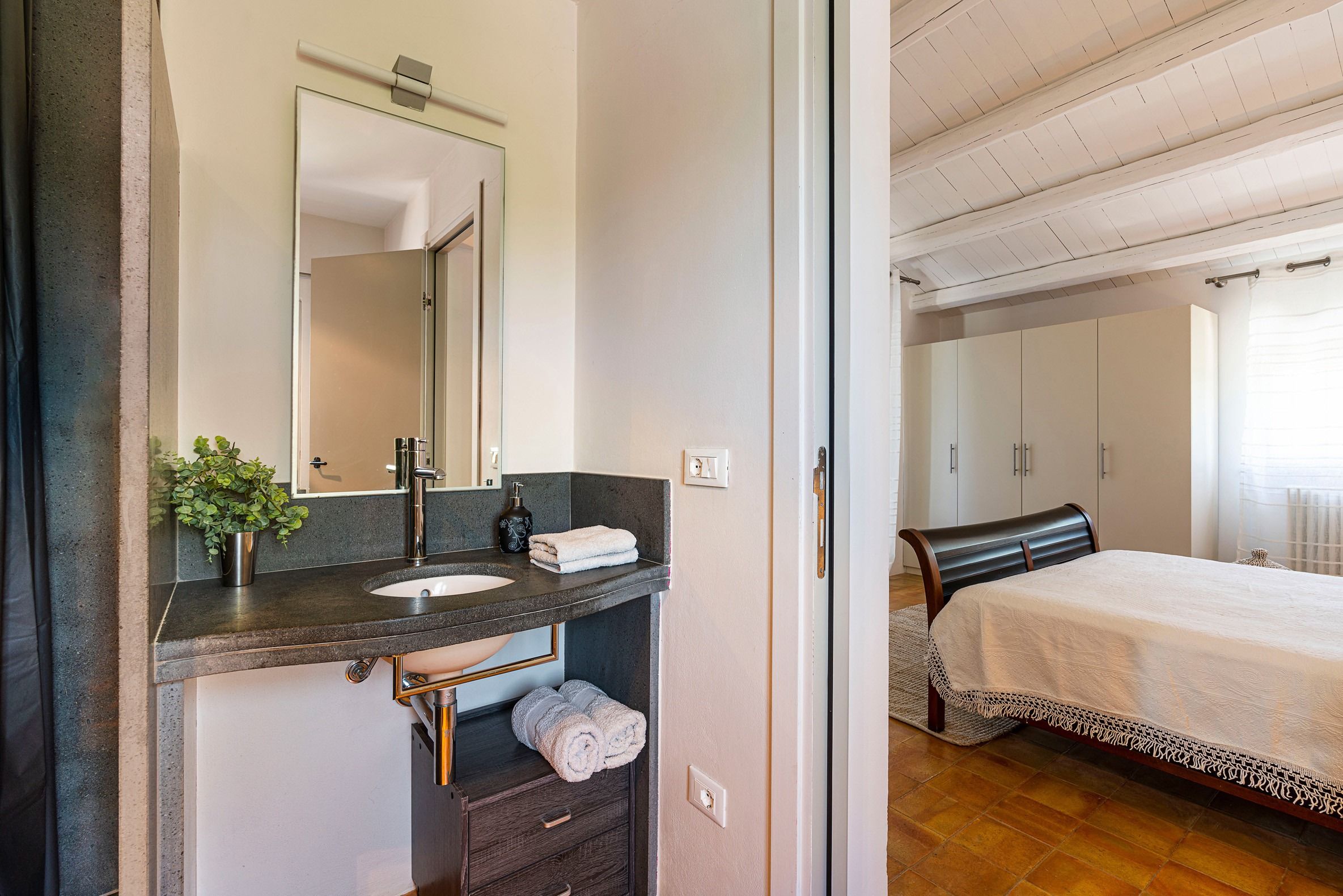 Every guest can enjoy their own independence – not only is there a main kitchen, but two of the bedrooms have their own kitchenettes. Find a shady spot on the terrace to read your book in perfect peace, then plunge into the swimming pool for a refreshing dip when the temperature rises. And, when evening rolls around, the whole group can gather for an aperitivo before you fire up the grill for a delicious alfresco feast.