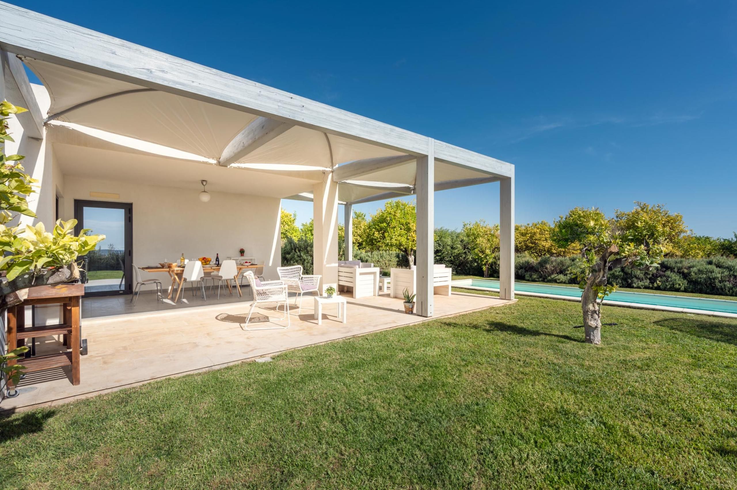 This contemporary villa in rural Sicily comprises two separate properties rented as one, so its the perfect choice for two families or a group of friends. Moments apart, separated by an olive grove, each home has its own private pool and garden. Located in a peaceful spot, surrounded by orange and lemon trees, the villa boasts views of the countryside with the sea in the distance. And when it comes to exploring the island, the popular Baroque town of Noto is just 1.5 kilometres away and the nearest beach is a ten minute drive.