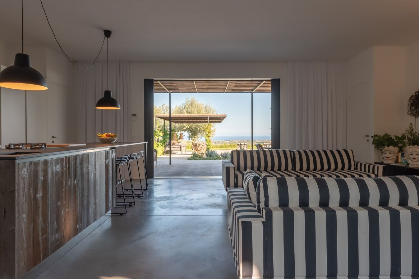Situated in the Val di Noto, you’ll have views over the countryside and the Mediterranean Sea from this villa. Its setting is perfect for a quiet relaxing holiday with family or friends. Outside, the villa has verandas on both sides as well as a large garden with a lawn, a private swimming pool and two shady terraces. And there are more vistas to enjoy from the open-plan living area too. Location-wise, the city of Noto, with its Baroque architecture, is just over three kilometres away. Or for a day at the beach, Lido di Noto is under 7 kilometres from this home.