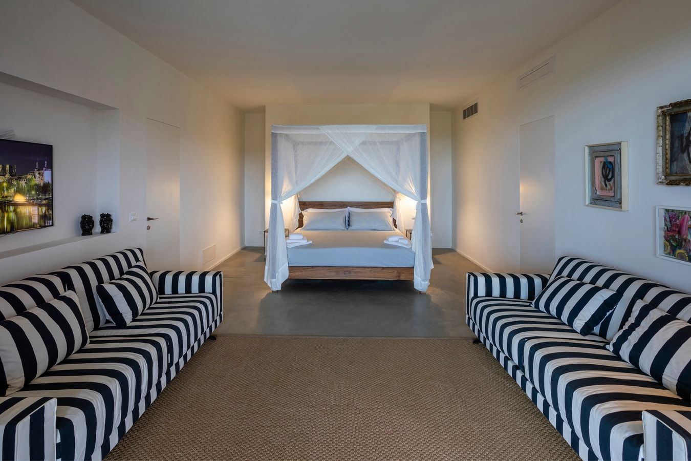 With a hillside setting, this villa has wonderful views of the sea and Sicilian countryside. There’s a private garden, a small swimming pool, and a shaded terrace for relaxing and dining alfresco. Inside, there’s an open-plan kitchen and living space, while both bedrooms have a four-poster bed and lounge area. When you feel like exploring the locale, the city of Noto, a UNESCO Heritage Site is under 4 kilometres away. Or when you want a day at the beach, Lido di Noto is under 7 kilometres from this well-located home.