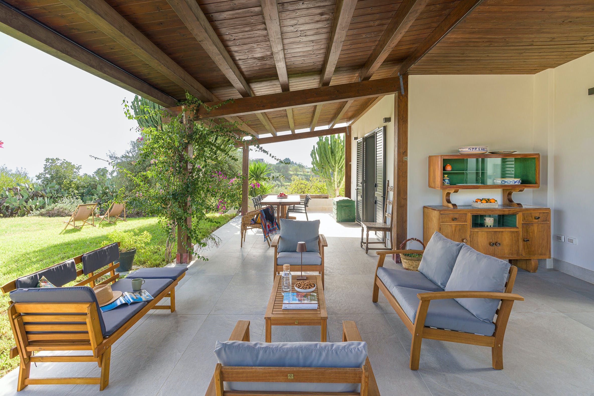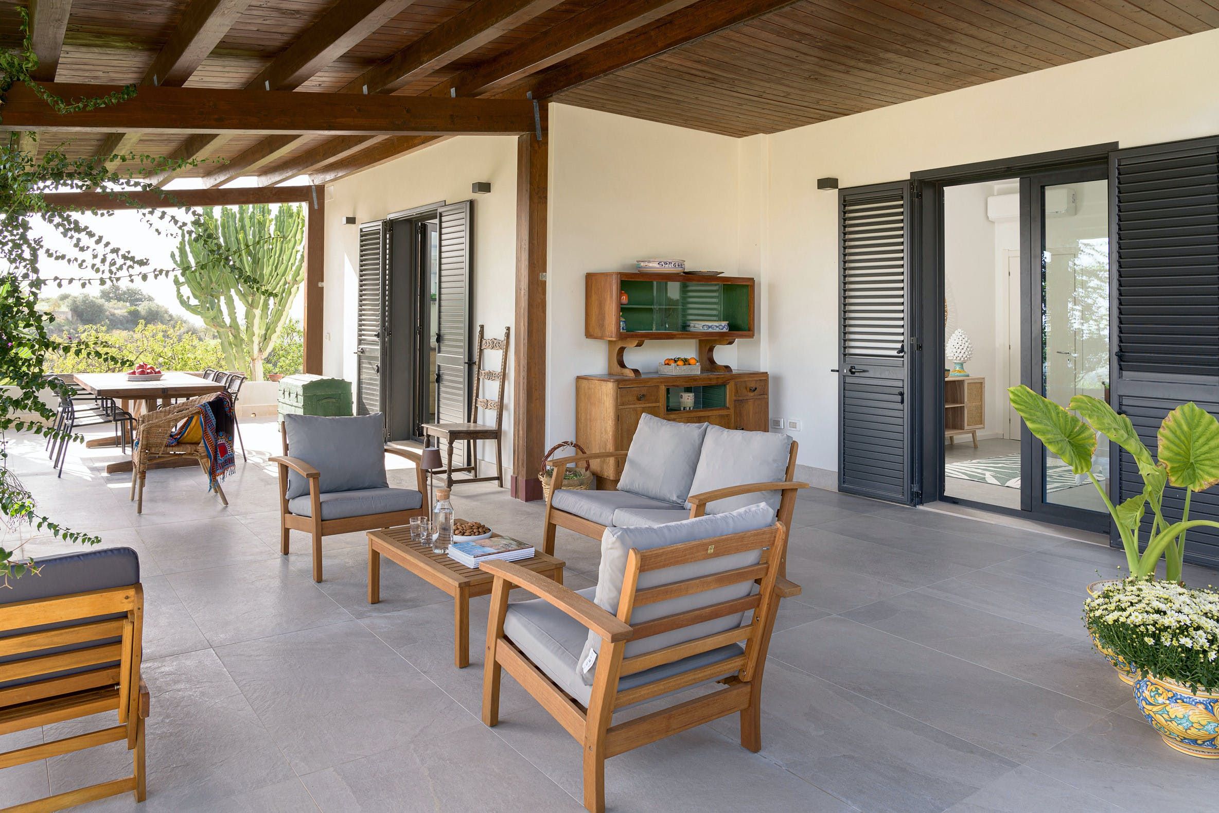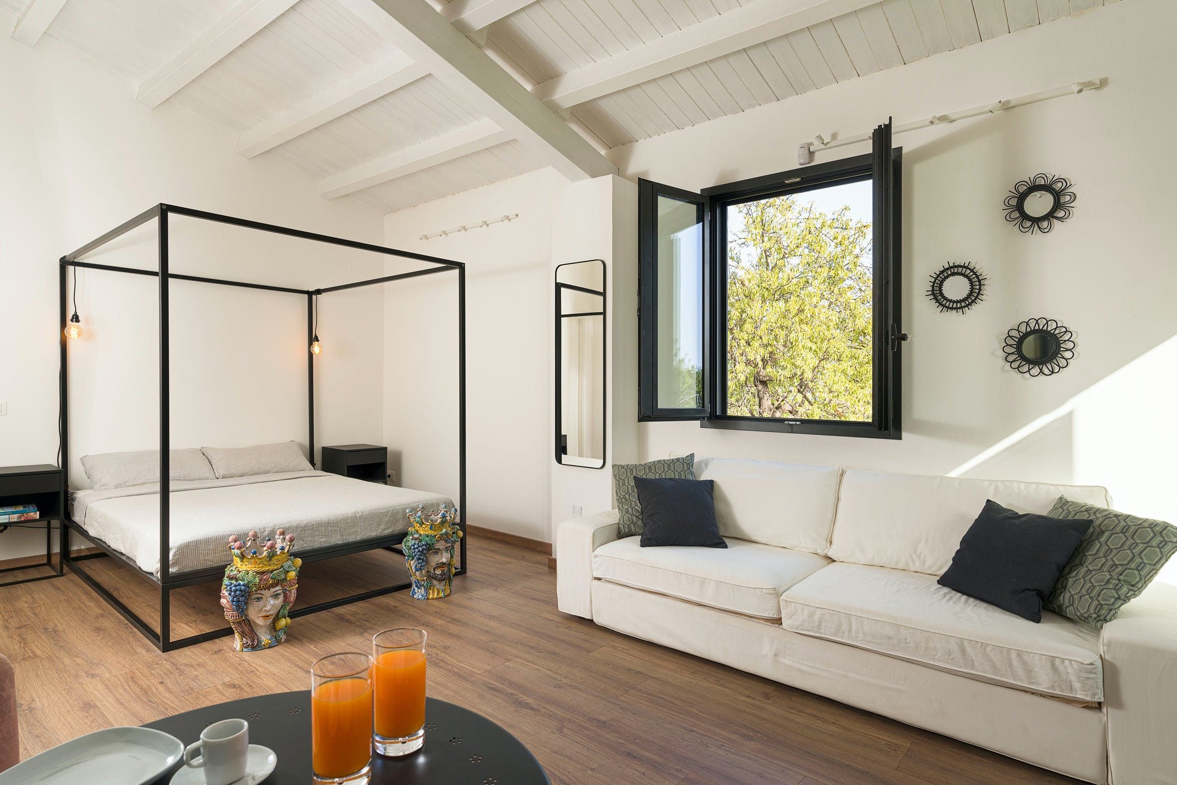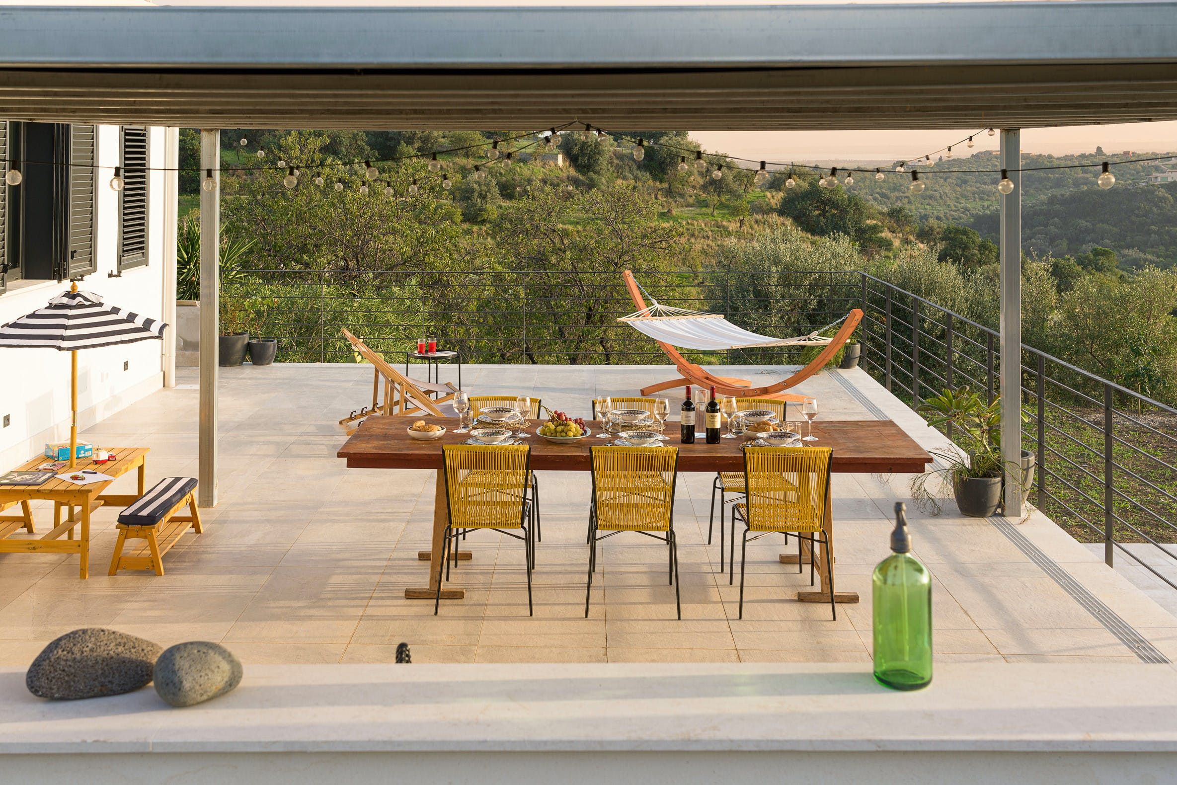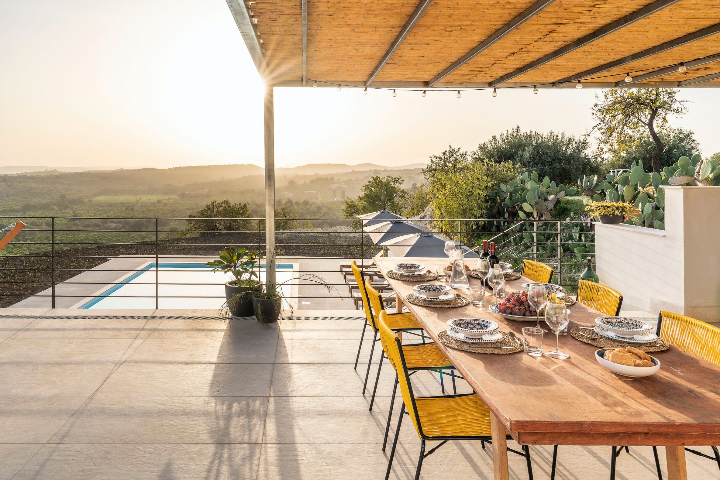 This dreamy villa boasts a stunning location in the Sicilian countryside. It’s just a short drive from Baroque Noto and is also close to the coast. The home is surrounded by gardens, making it feel like a private oasis. The outside space features terraces with stunning sea views, a private pool, and a wonderful alfresco dining setup. This home is split between the main house, which can accommodate four guests, and a separate annex for two. This is ideal for a couple seeking more privacy, as it has its own kitchenette.