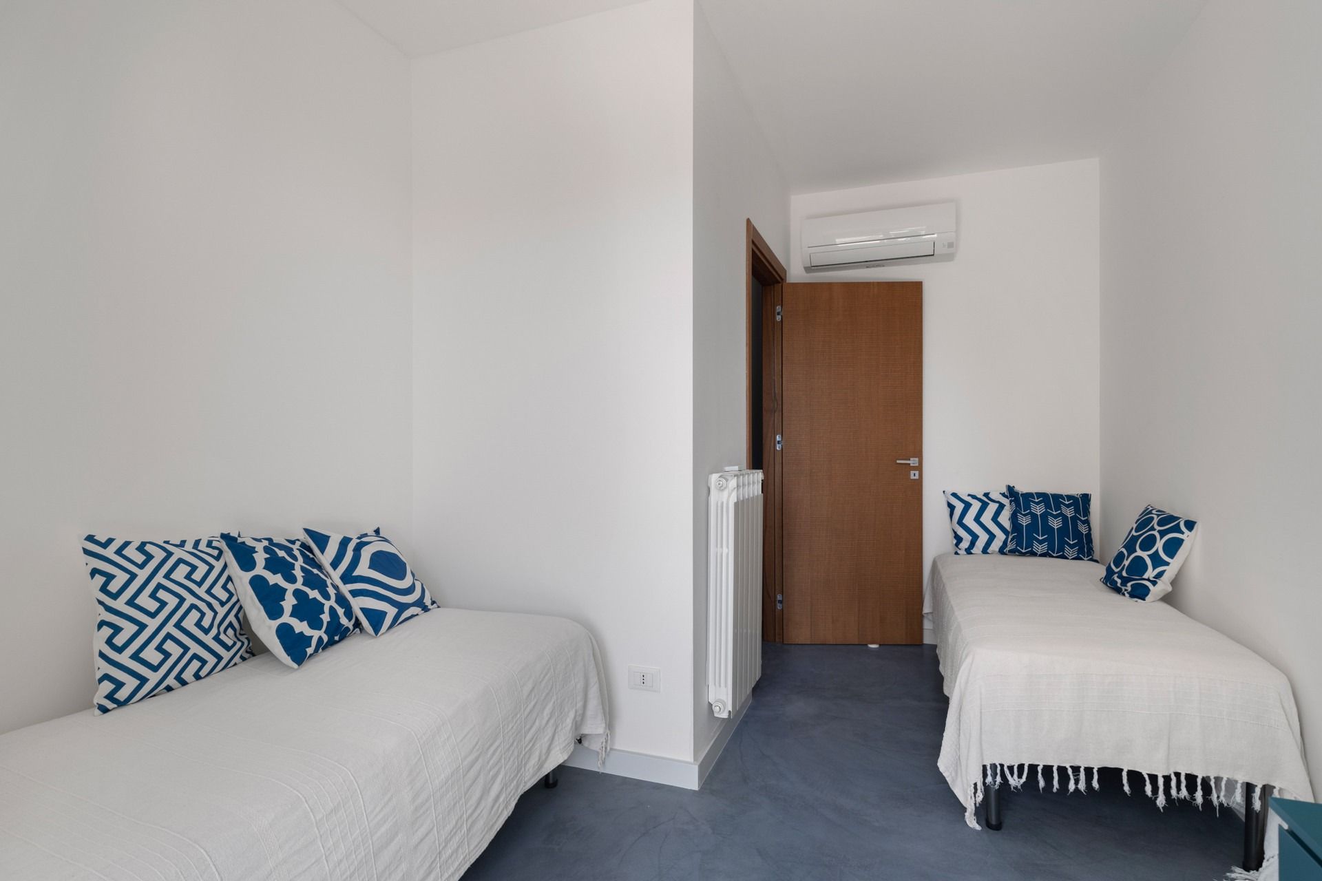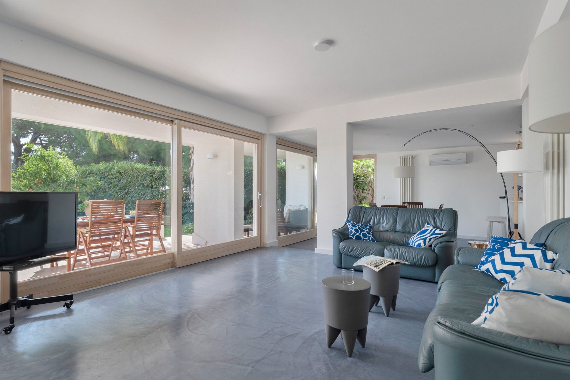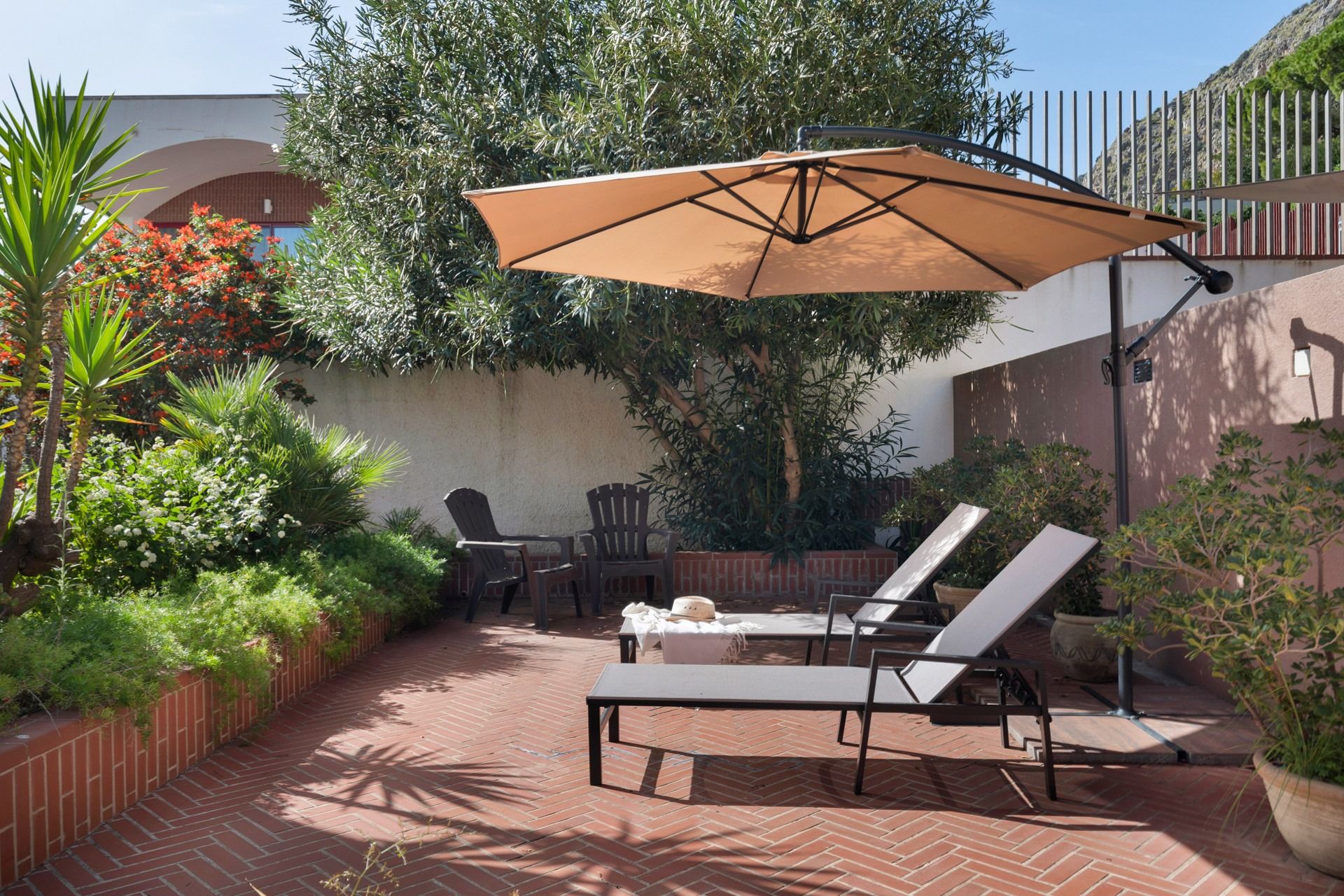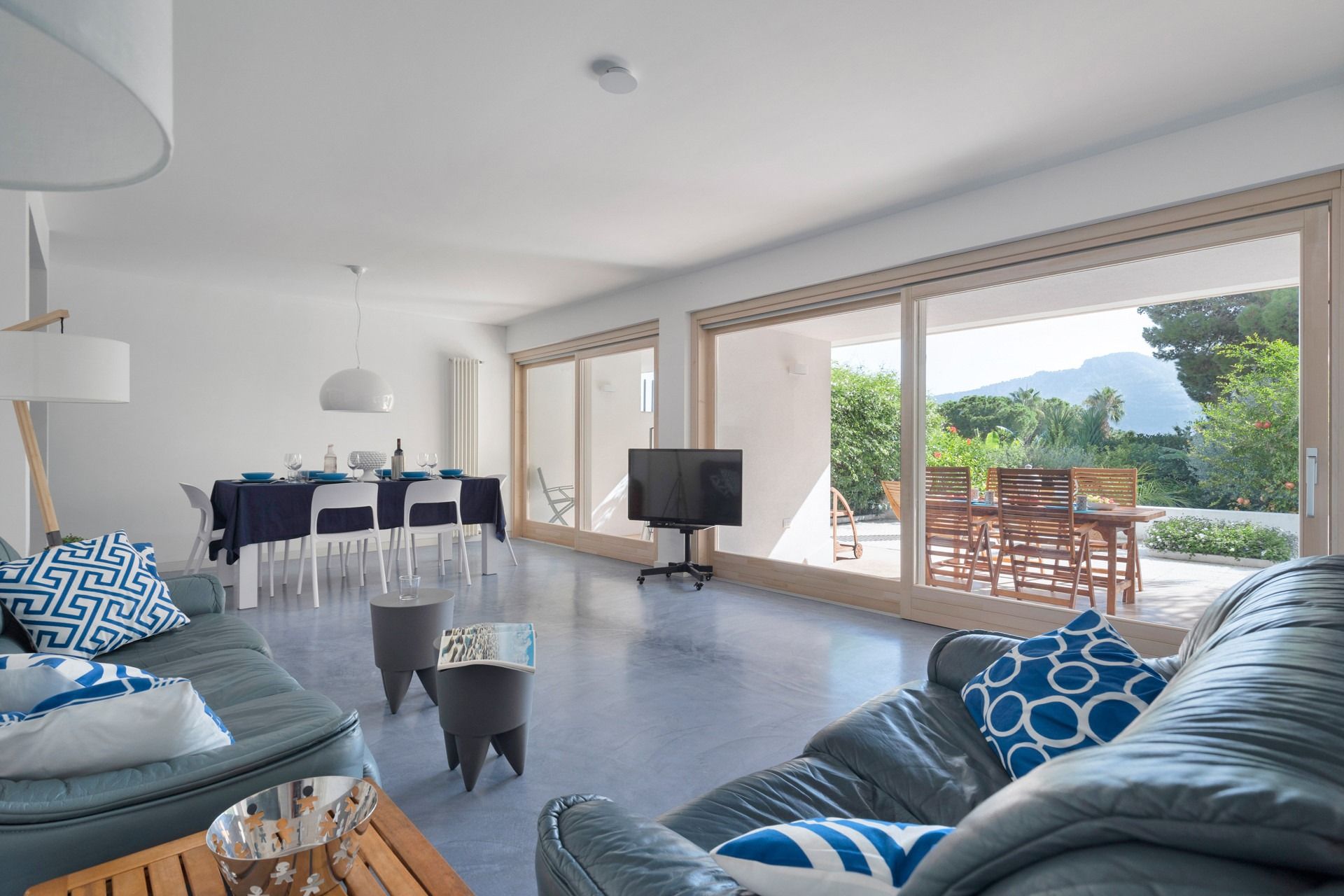 This contemporary villa is located in one of Palermo’s most beautiful and exclusive seaside areas, close to the Mondello seafront. It’s surrounded by greenery in a pretty spot, where you can enjoy a relaxing break. The garden is full of verdant trees and plants, with views that can be admired from several seating areas – there’s a table for alfresco dining, too. Inside, you’ll have plenty of room to spend time together without missing out on the vistas, thanks to floor-to-ceiling glass doors.