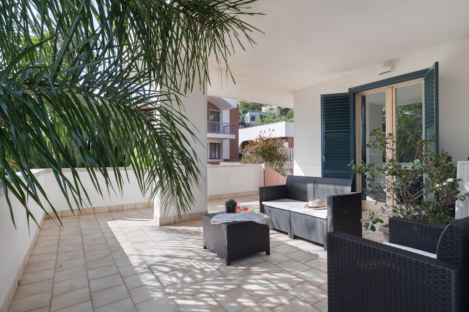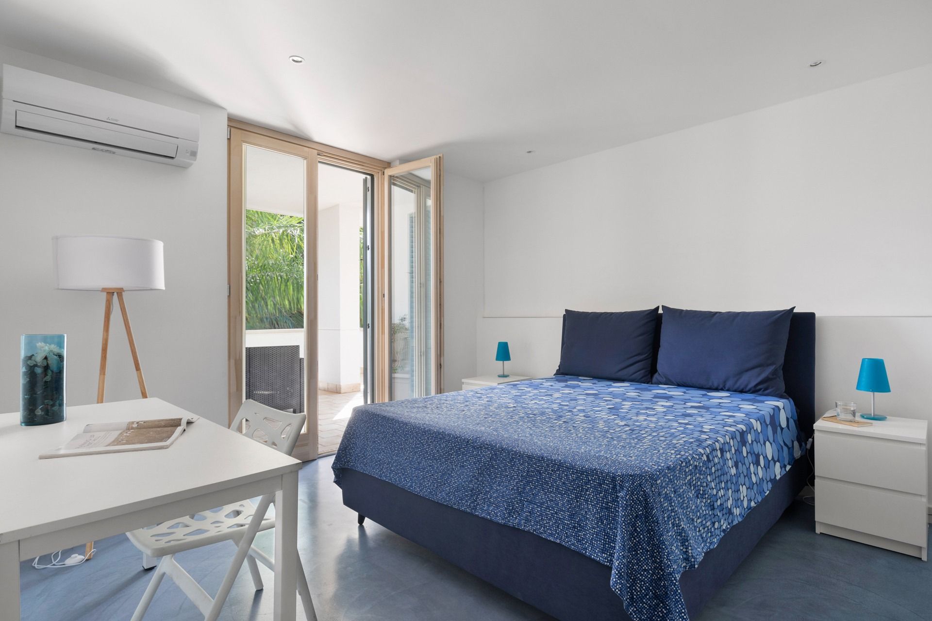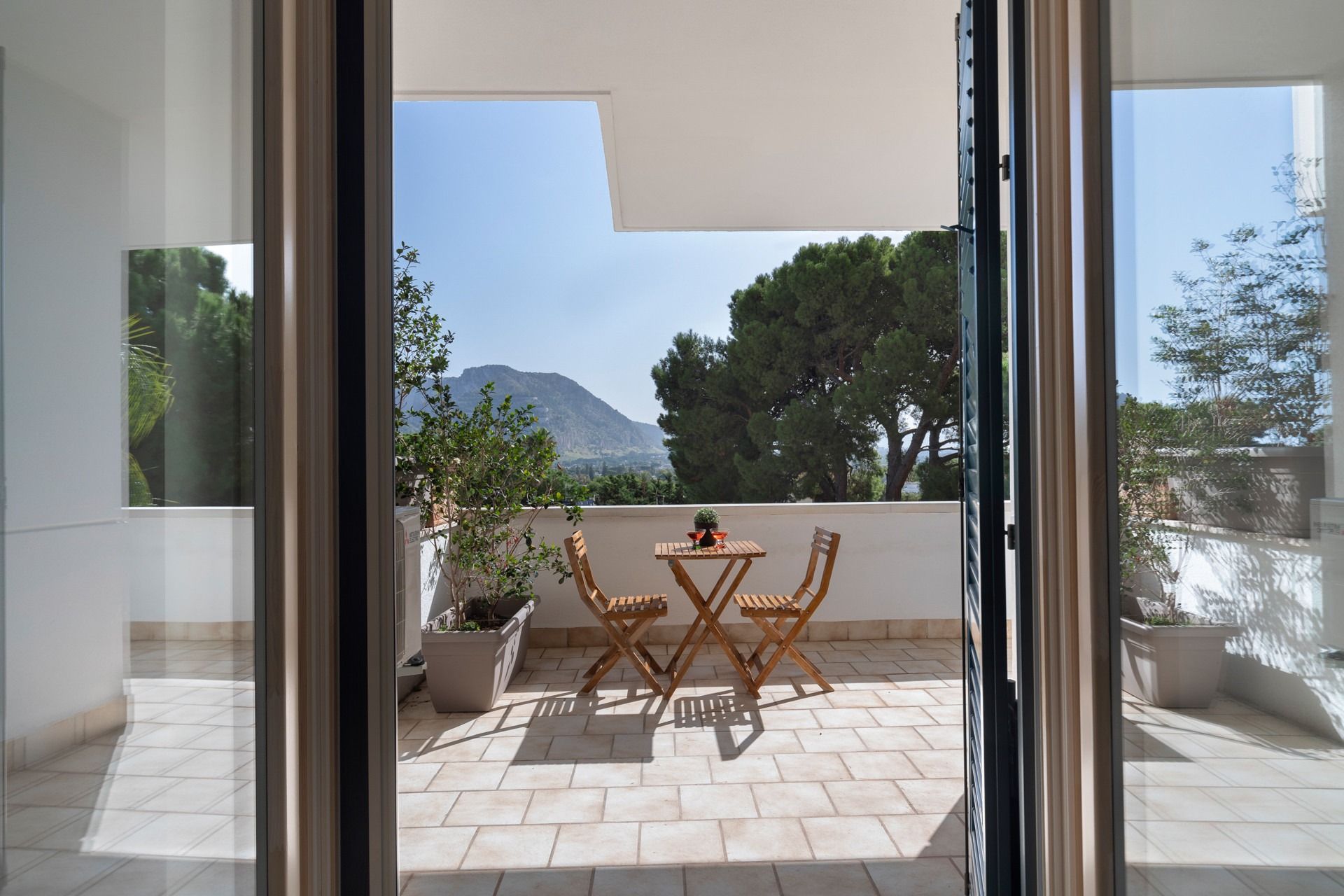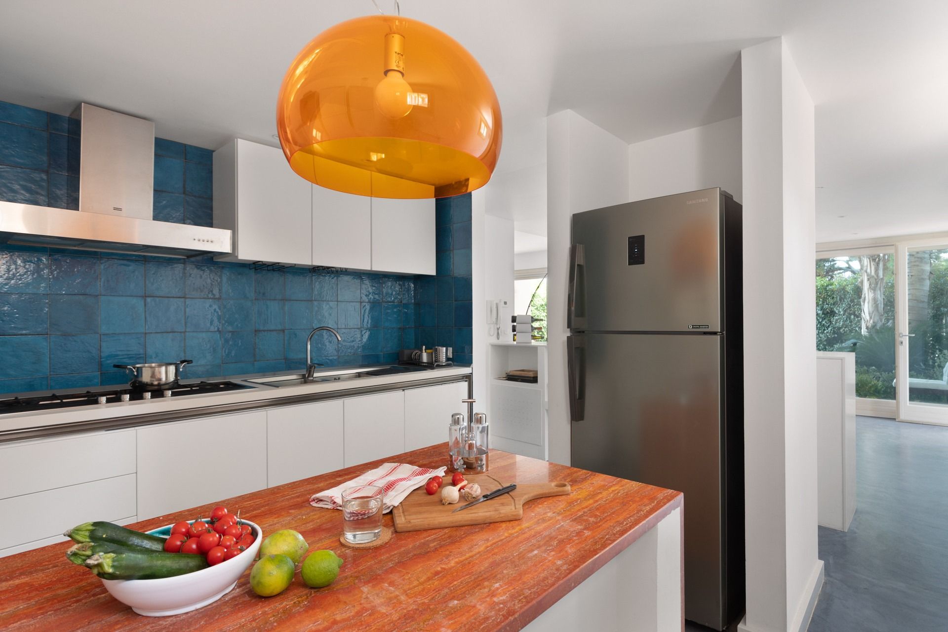 This contemporary villa is located in one of Palermo’s most beautiful and exclusive seaside areas, close to the Mondello seafront. It’s surrounded by greenery in a pretty spot, where you can enjoy a relaxing break. The garden is full of verdant trees and plants, with views that can be admired from several seating areas – there’s a table for alfresco dining, too. Inside, you’ll have plenty of room to spend time together without missing out on the vistas, thanks to floor-to-ceiling glass doors.