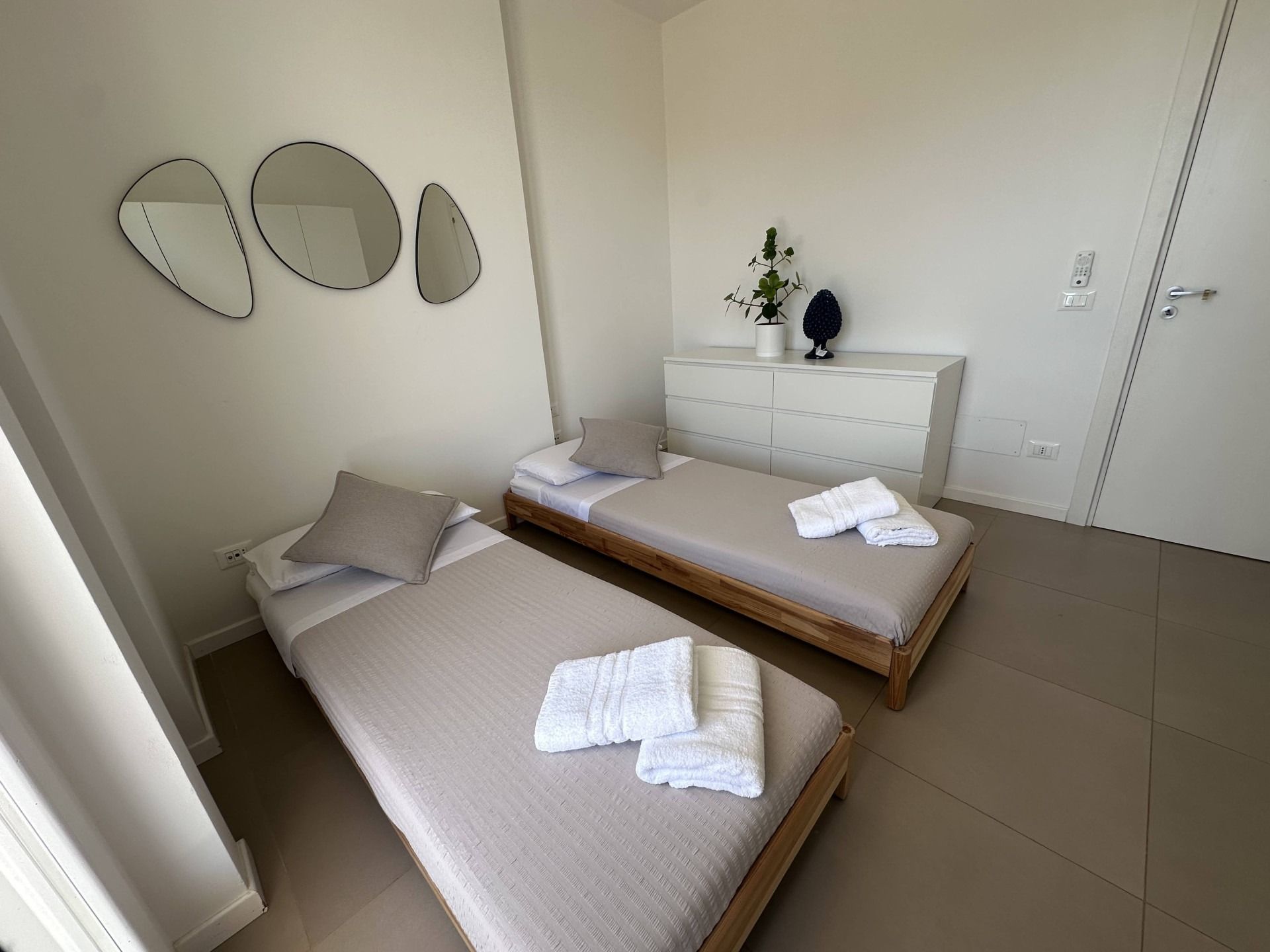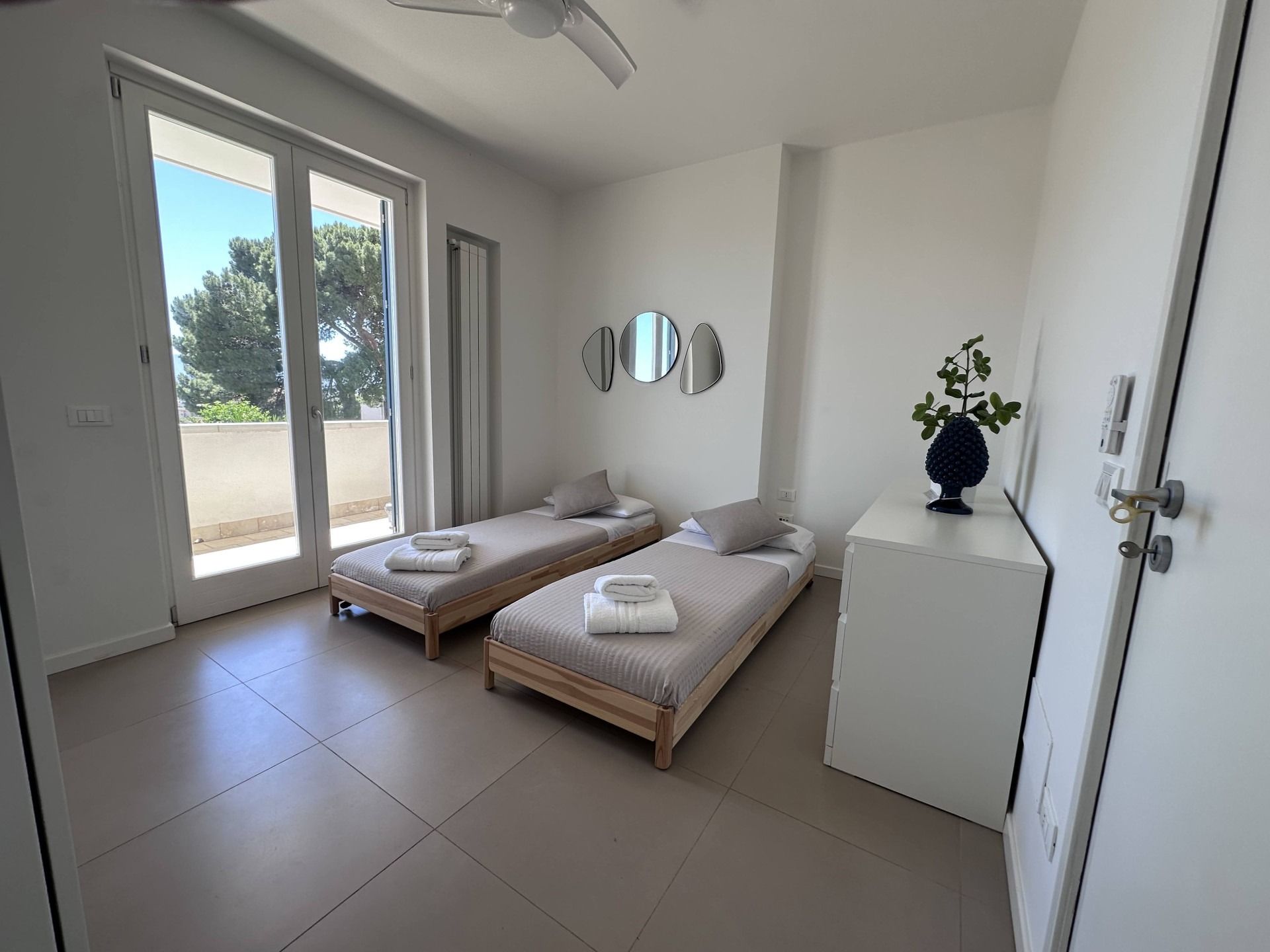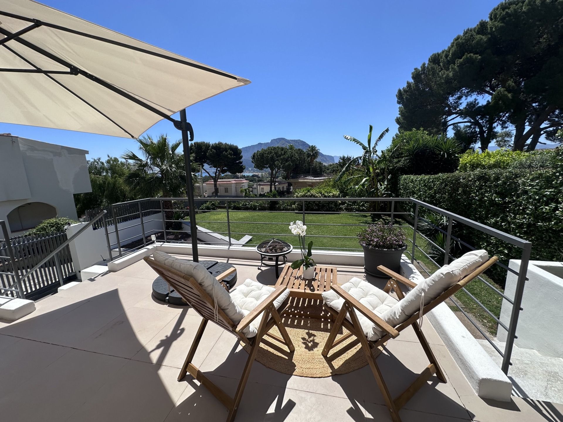 Welcome to this retreat, which is just a short walk from the stunning Mondello Beach and a variety of cafes and restaurants. When you’re not exploring the town, you can relax in this home’s colourful private garden. Or dine on the balconies with their beautiful views of the surrounding mountains and sea glimpses. Set on several levels, the villa has a good-sized living room which also sleeps guests seven and eight on a comfy sofa bed. We love the primary bedroom with its terrace, and if you need to work while away, a couple of the bedrooms have desks. So, if you’re looking to stay near the heart of Mondello, this home could be the one.