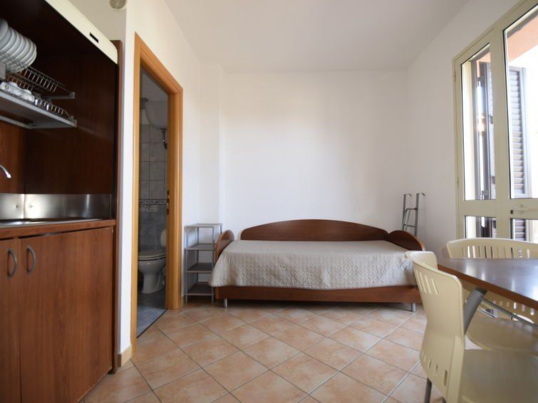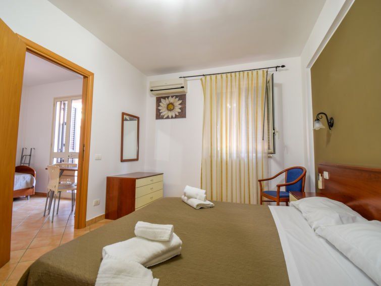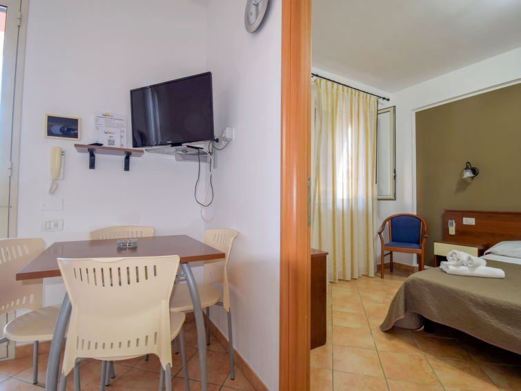 2-room apartment 30 m2 on 1st floor. Simple and practical furnishings: living/dining room with 1 x 2 bunk beds, TV (flat screen). Exit to the balcony. 1 double bedroom with air conditioning and forced-air heating. Small kitchenette (2 hot plates). Shower/bidet/WC. Heating, forced-air heating.