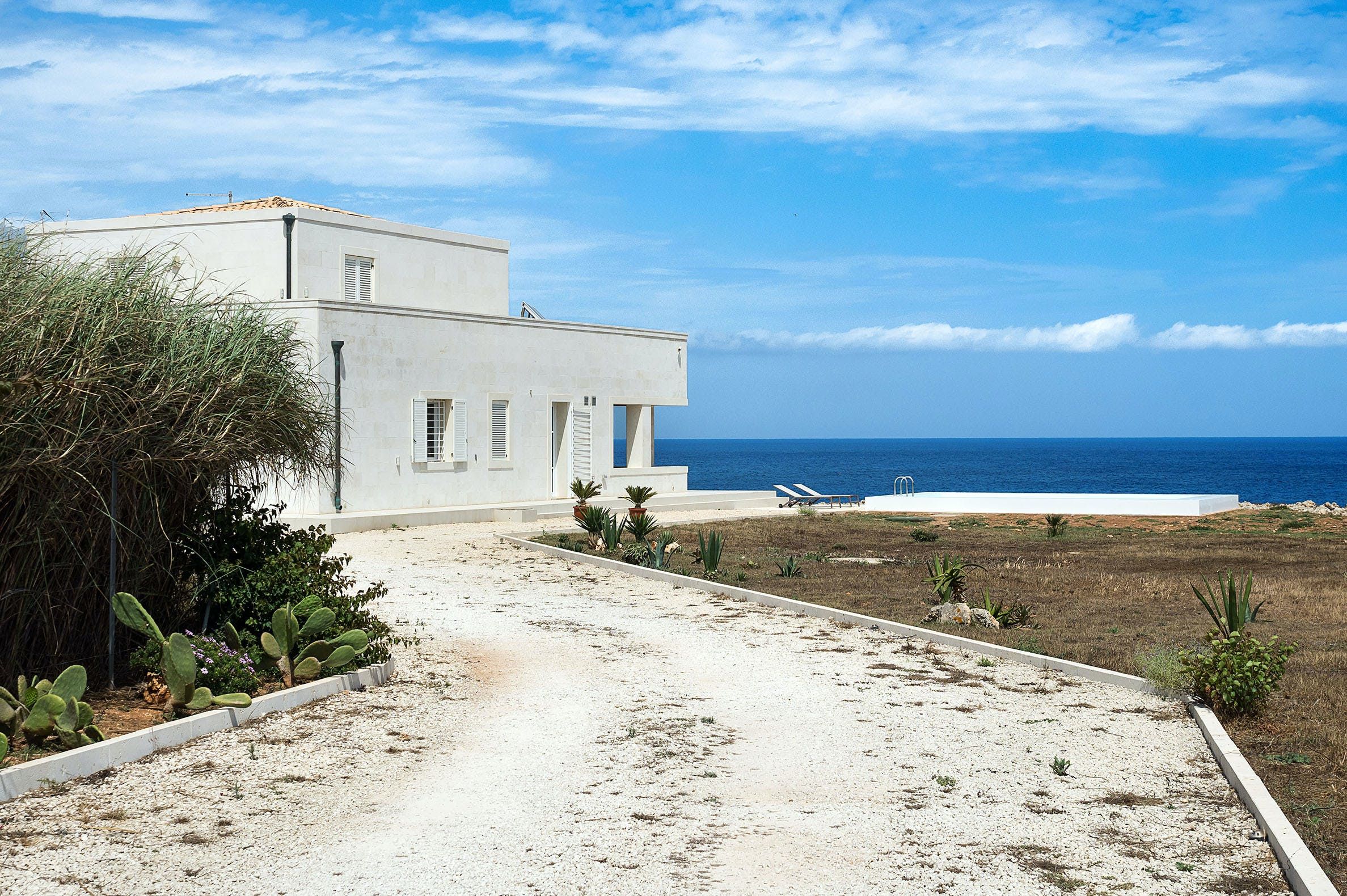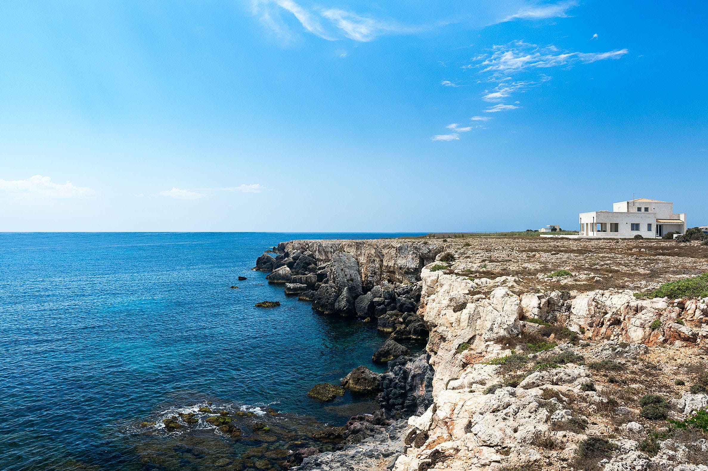 Situated on Sicily's southernmost tip in the town of Portopalo, we find this whitewashed stone villa. Though the home lacks a bit of cosiness, you’ll find everything you need here for a great holiday. The property boasts a large open garden with a private swimming pool, as well as a terrace that lends itself perfectly to home-cooked alfresco meals. The sea is easily accessible via a footpath along the cliff and most of Portopalo’s eateries and bars are within walking distance. Worth noting is that there’s an independent annex here too which can host four more people.