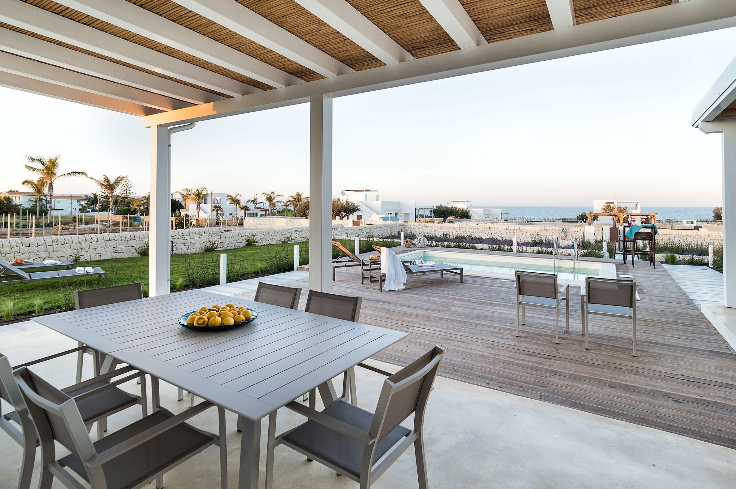 This home is comprised of two villas, making it ideal for large groups or a few families travelling together. The sandy beach is just a few steps away, so you can enjoy sea views from beside the private pool and the rooftop terrace. The pool even has a hydromassage feature in the corner, and there’s a Jacuzzi – this is a great home for relaxing. The baroque town of Noto is just a short drive away, so there's plenty to keep you enterained.
