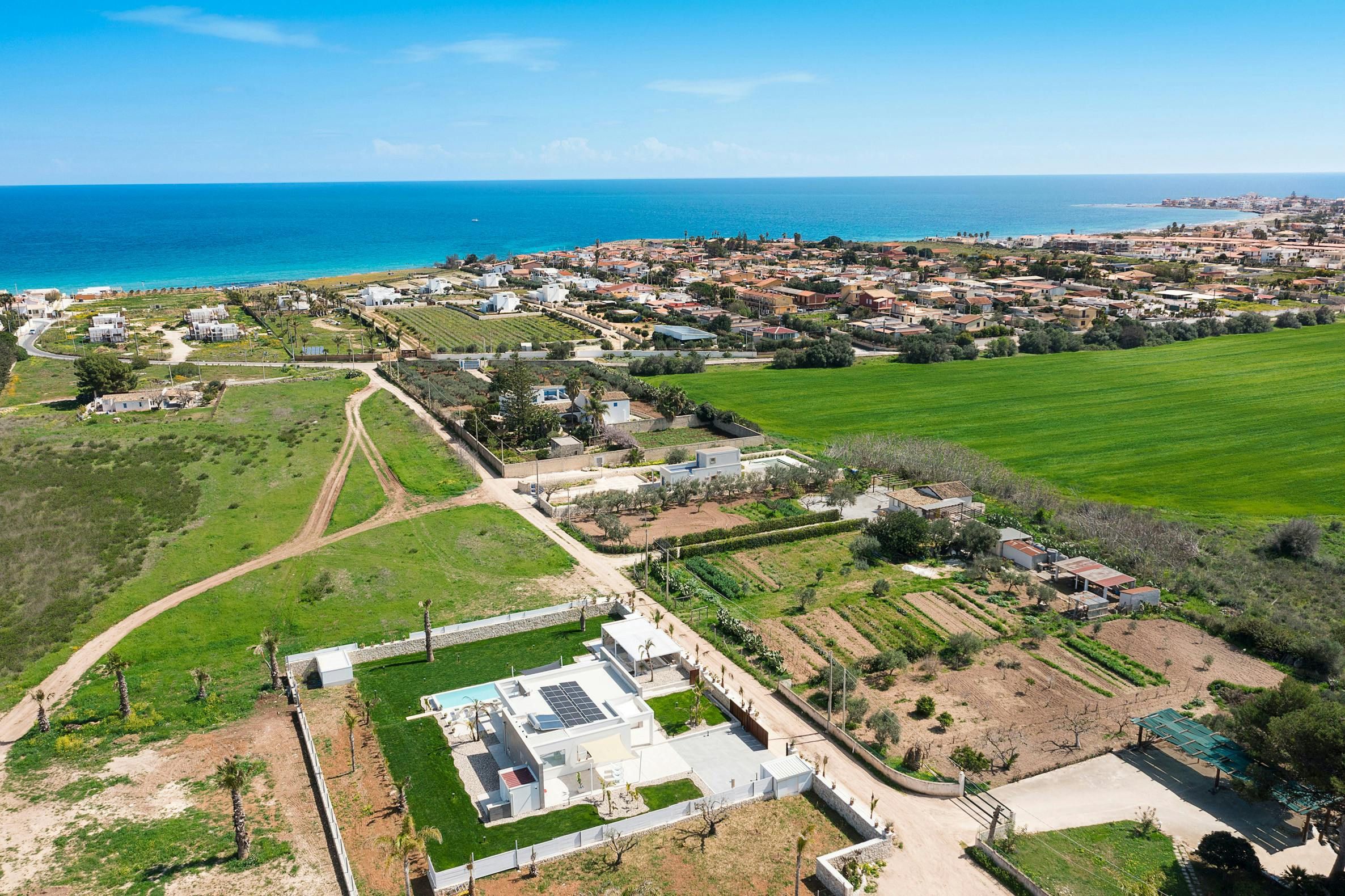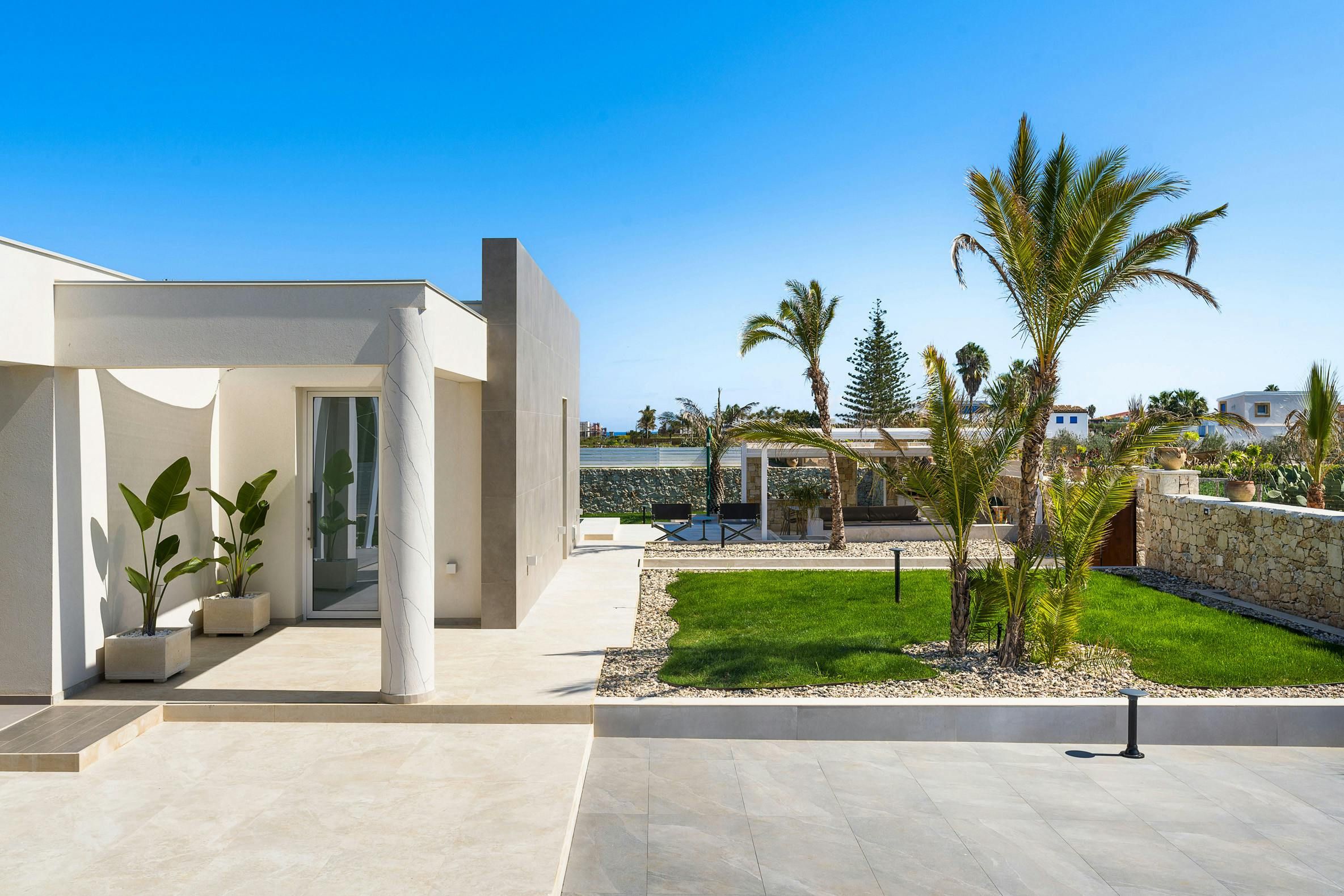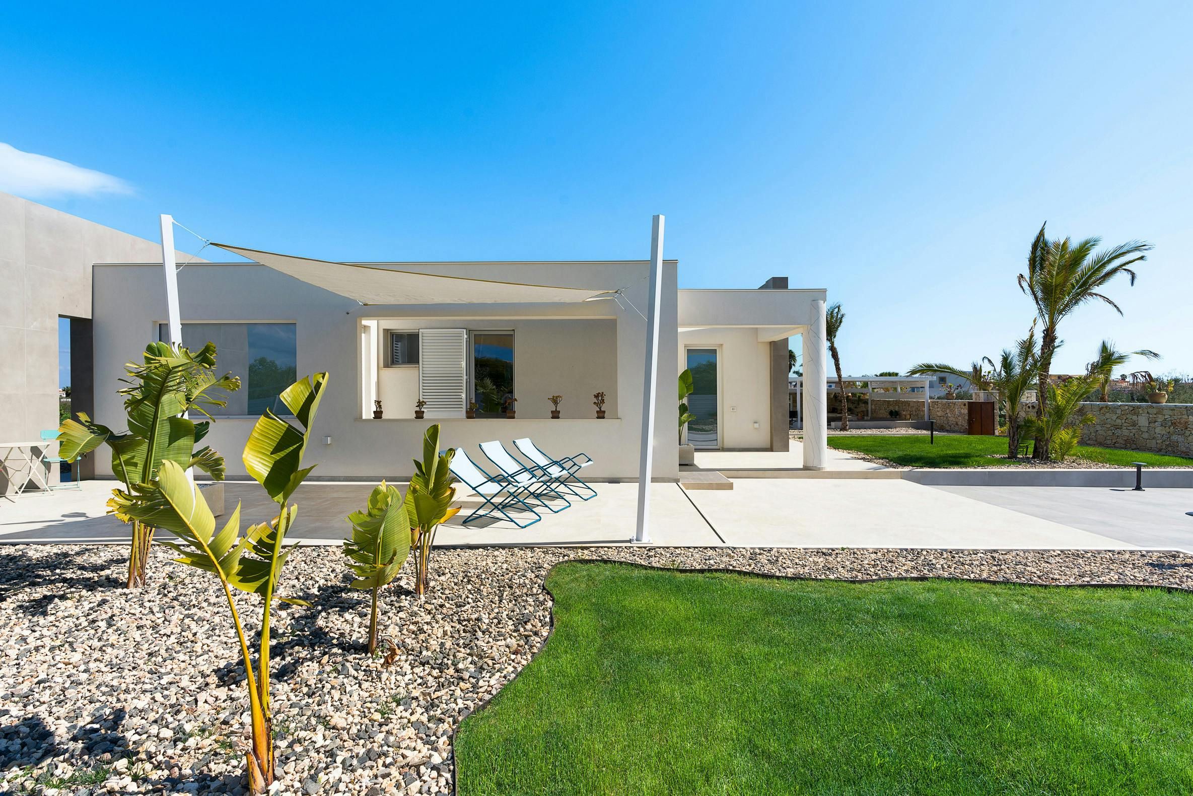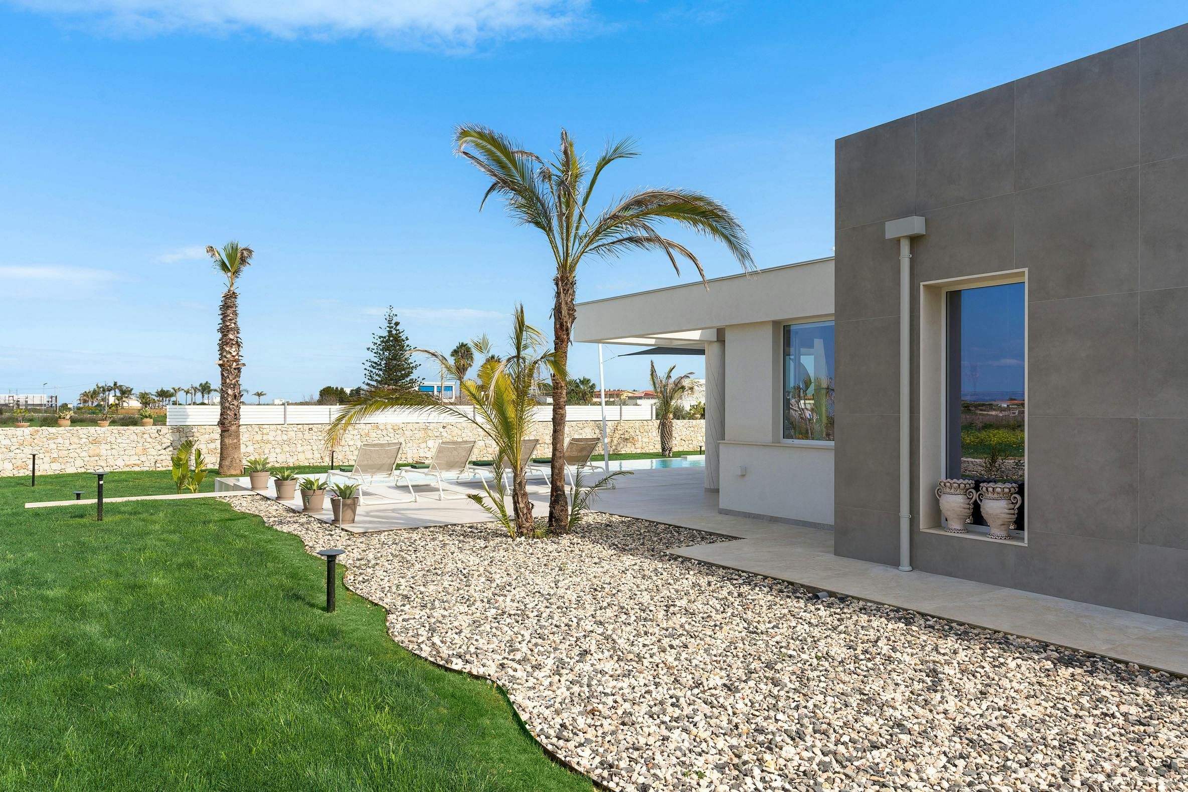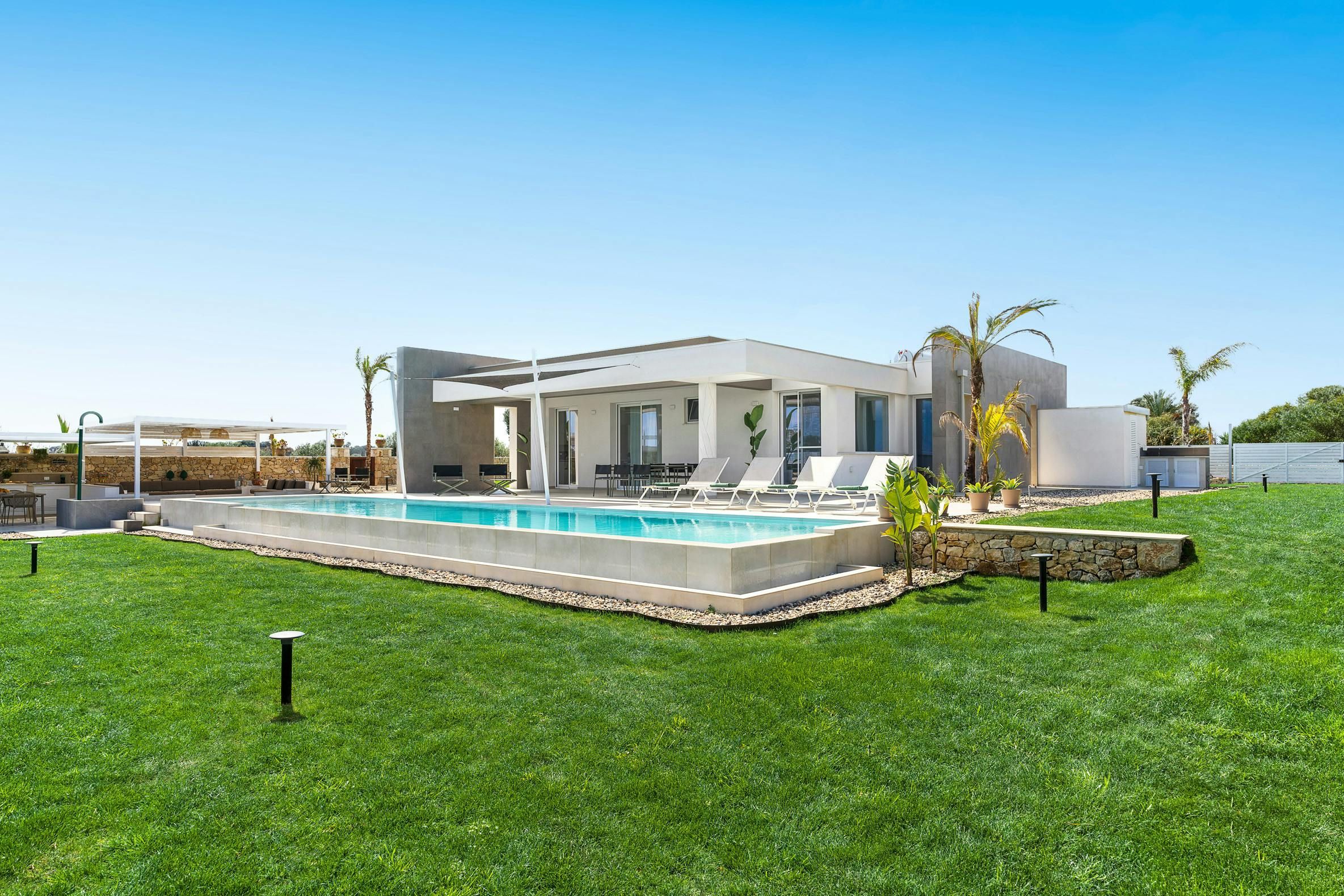 This incredible villa offers the perfect setting for a special Sicilian getaway. Set in the sun-drenched southeast, it’s just a short stroll from stunning sandy beaches. The spacious outdoor area is made for relaxation, with plenty of spots to unwind or dine with friends and family, whether you want to soak up the sun or snooze in the shade. The private pool is a true highlight, offering a refreshing escape if you start to sizzle. Combining modern design with comfort, this villa has everything you need for a truly relaxing and unforgettable stay.