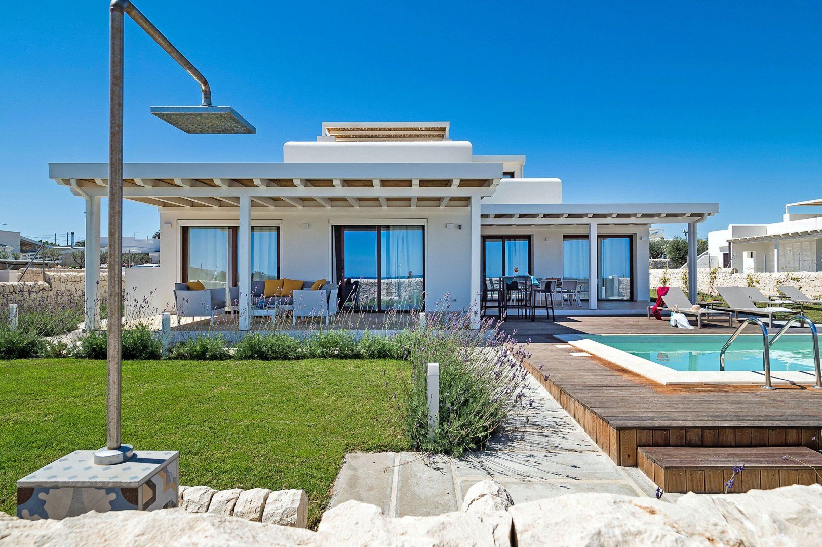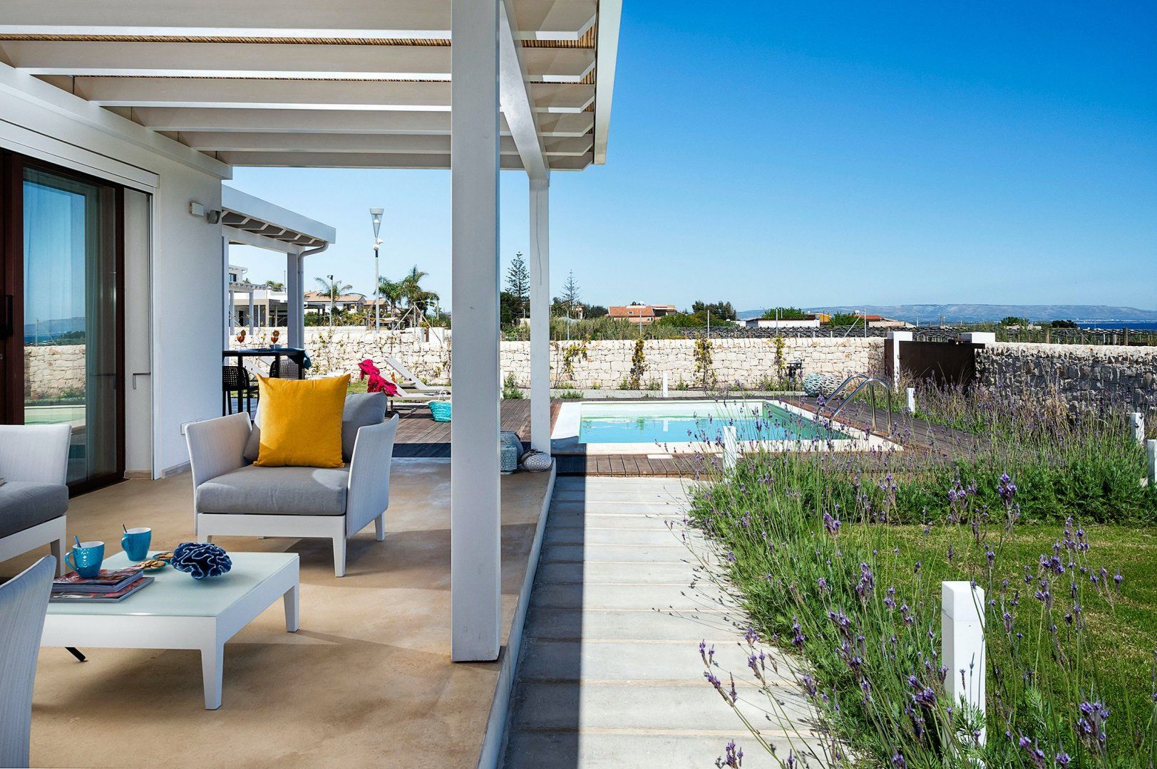 Once you've settled into the modern luxury of the home, set your sights on the natural beauty in the south-east of Sicily. San Lorenzo is home to one of the island's most beautiful beaches, and it's just a minute's walk from the villa. Further along the coast, you'll find charming towns such as Noto and Syracuse.