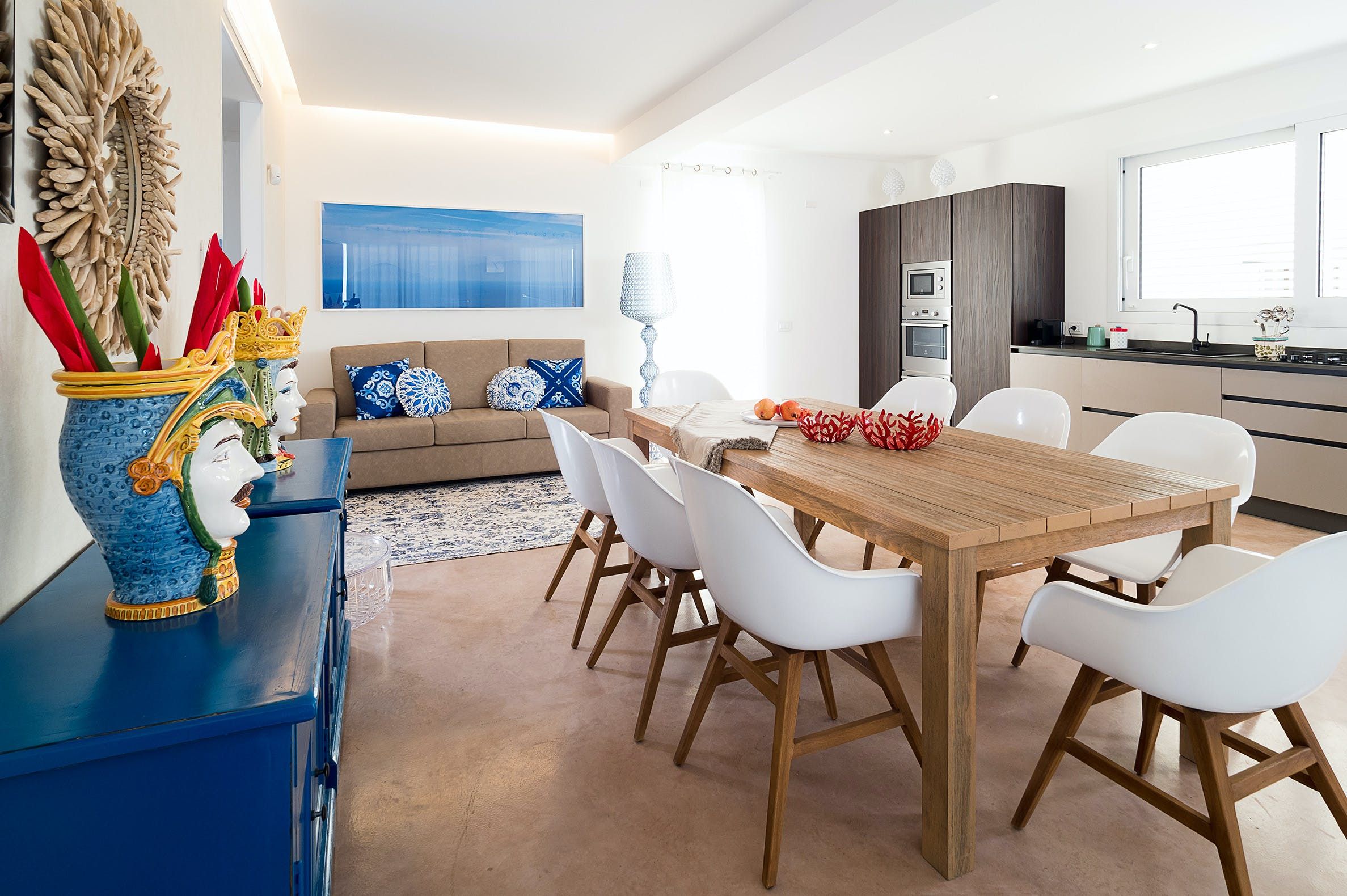 If you’re visiting in a group, this is the spot. There are two villas on this property, so your cohort will have plenty of space to unwind solo and socialise over a pitcher of Aperol spritz. The designs are minimal, which allows those sea vistas to really shine. Speaking of, you’ll have direct beach access here – and even when you don’t feel like sand, you can watch the waves from your private pool. For dinners out, head into the charming fishing village of Marzamemi to sample the local cuisine, or spend a day soaking up some culture in Noto, a short drive away.
