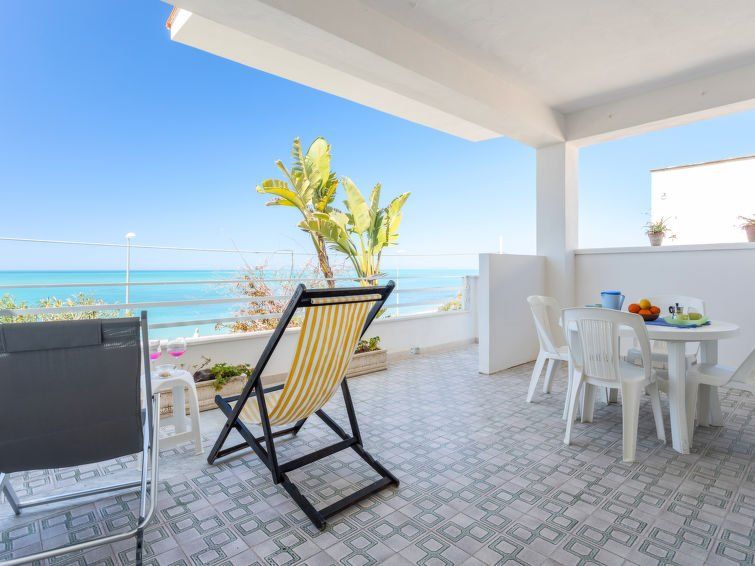Nothing to say to the sea and to the place equipped with everything and within walking distance. Supermarket, pharmacy, restaurants ... Even the bread van passes by every morning! The beautiful sea, very clean and also the beach that is not sandy so equip yourself with shoes suitable for entering the water. The house with a breathtaking view were it not for the flowering trees that occupy 80% of the view! We found it clean but to take care of the bathroom which unfortunately falls apart. Dear all of the place!