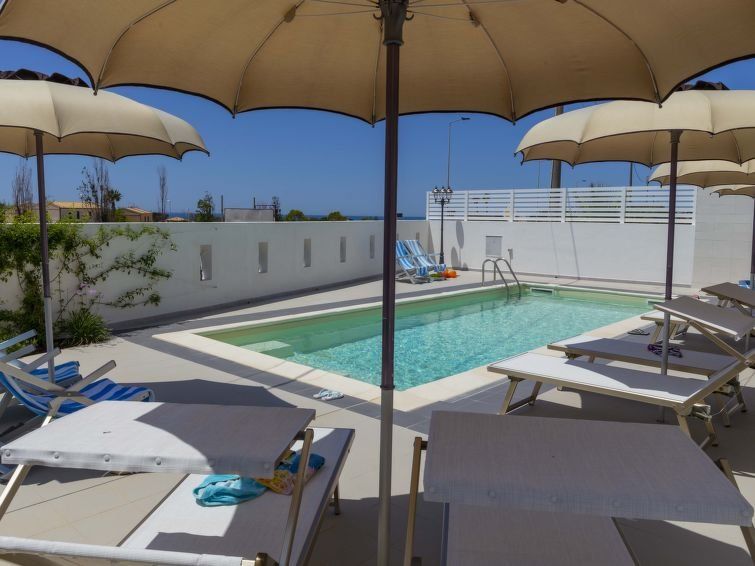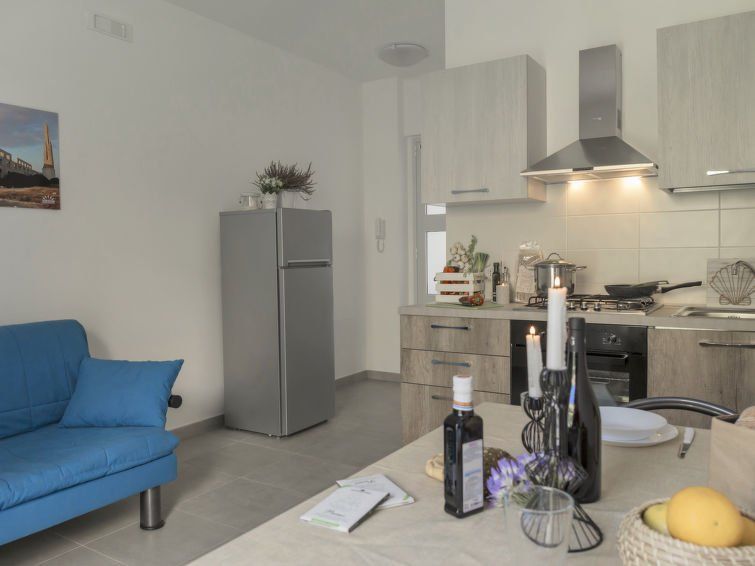 "Talìa Luna", 2-room apartment 40 m2, on the ground floor. Practical and comfortable furnishings: living/dining room with 1 double sofabed and TV (flat screen), air conditioning and forced-air heating. Exit to the terrace. 1 double bedroom with fan. Exit to the terrace. Kitchenette (4 hot plates, oven).