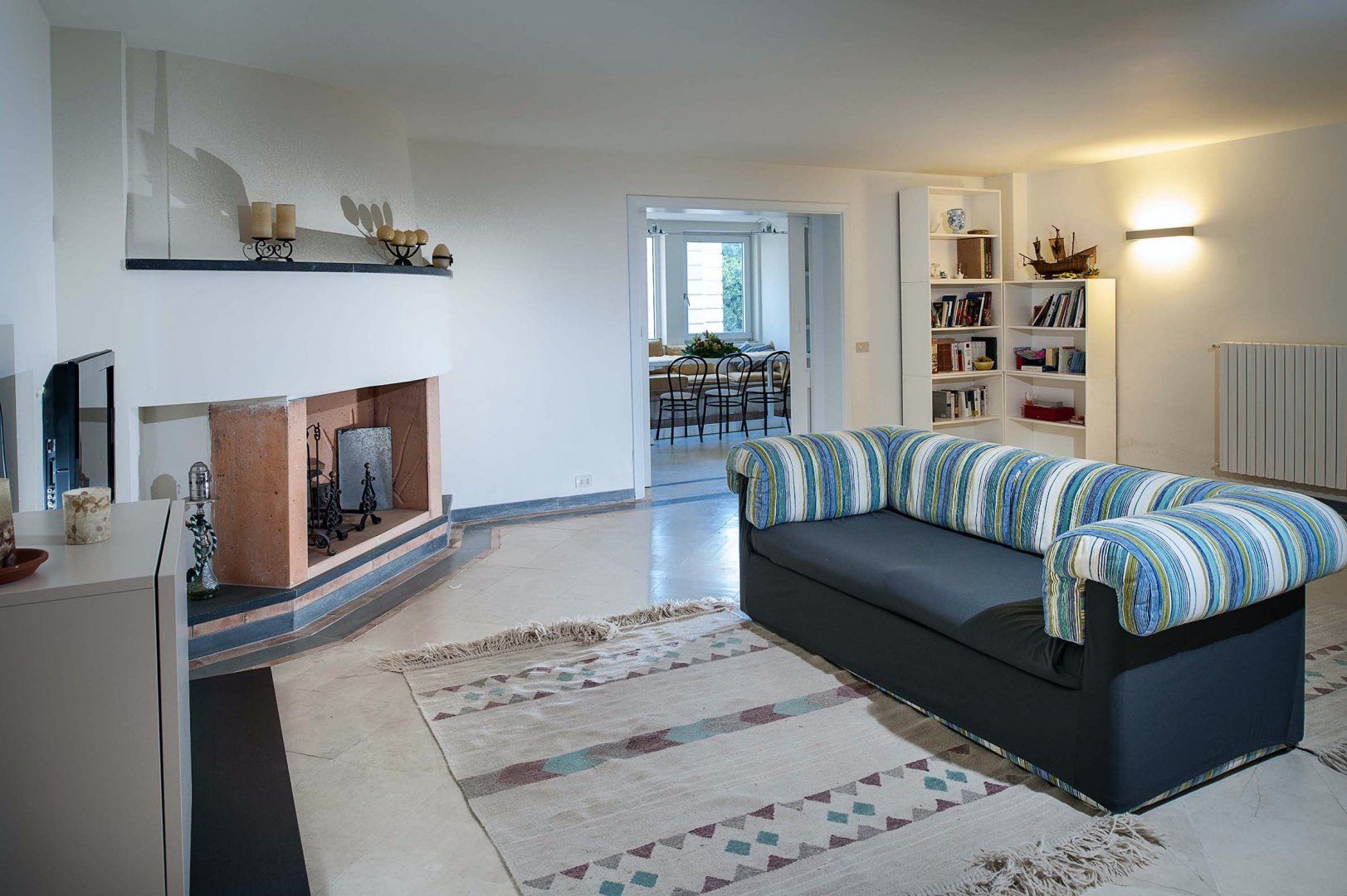It’s easy to immerse yourself in San Lorenzo’s natural beauty at this home, the entire villa is enveloped in olive trees, flora and palms. The serene outdoor area boasts a freeform swimming pool and plenty of lounging space for both shaded reading and sunbathing. There is also a glass-tabled dining area on the balcony, ideal for enjoying those memorable meals in the balmy evenings overlooking the abundant reserve.
