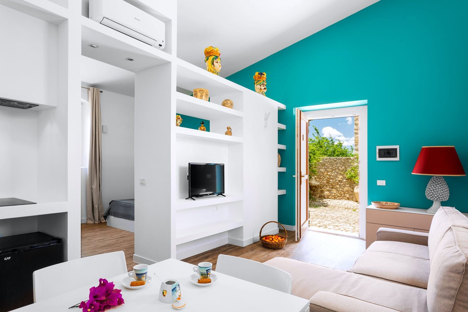 Surrounded by vast palm-strewn grounds and ancient vineyards, this place offers up privacy, space and luxury in equal measure. Take your pick from the traditional and oh-so-regal bedrooms of the main villa (each with its own bathroom), where lofty ceilings, heirloom-worthy antiques and chandeliers bring all the traditional Sicilian feels. Or, if sleek and contemporary is your vibe, you’ll love the interiors of the guest house across the courtyard, housing three additional bedrooms, each with en-suites.