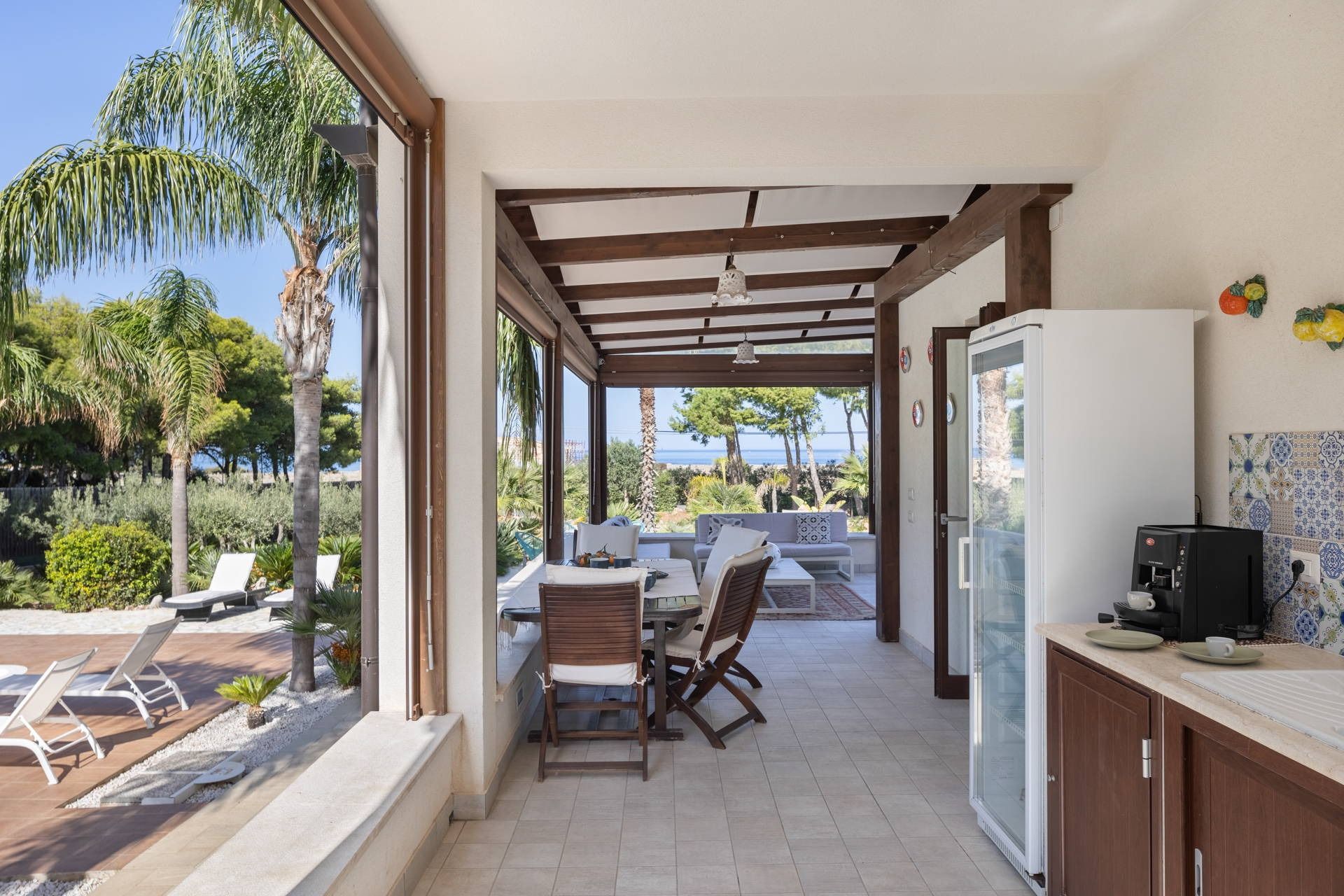 Just a five-minute stroll from the beach, this home is a refreshing coastal sanctuary with a lot to offer. It’s an easy walk into the centre of San Vito Lo Capo where you’ll find restaurants and shops, while the close proximity to the Zingaro Nature Reserve makes this a great spot for nature lovers. Plus, you’ll find everything you could need at home to slow down and relax. There’s a private pool for blissful swims, incredible views and a terrace with a barbecue for alfresco dining. Kids will love the football pitch and table football. It’s worth noting one of the bedrooms has independent access, but this is a great option for those seeking a little extra privacy.