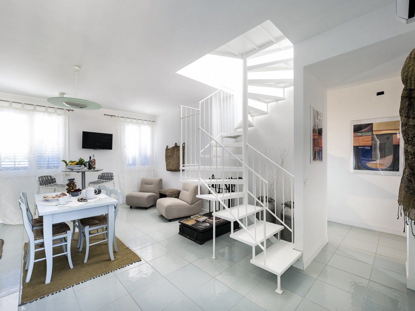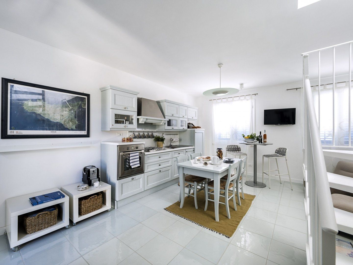 This pure white home is situated close by to the bright blue sea of Sicily, which can be admired from the comfort of your very own terrace. You'll also notice a fantastic view of the nearby rock formations accompanied by the glistening skies and verdant scenery. Relax on the sofa with a brand new book or watch TV from the dining table as you tuck into a light bite for breakfast. You'll wake up every day to the sound of the ocean waves and the locals having fun at the beach – making it incredibly hard not to spend every moment of the day outdoors.