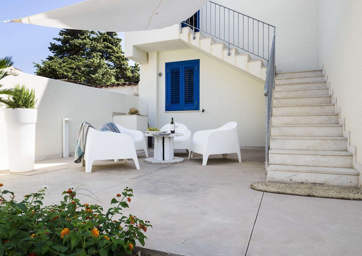 Head upstairs to the sun terrace to enjoy a bottle of wine with your loved ones under the sun – it's also a lovely little spot to dine on snacks together. Stretch out and put your feet up on one of the sun loungers as you spend the early afternoon in pure bliss before heading out to the beach. A seven–minute walk takes you to the golden sands for a day trip by the sea, followed by wandering through the streets of San Vito to discover local hidden gems and some delicious eateries.