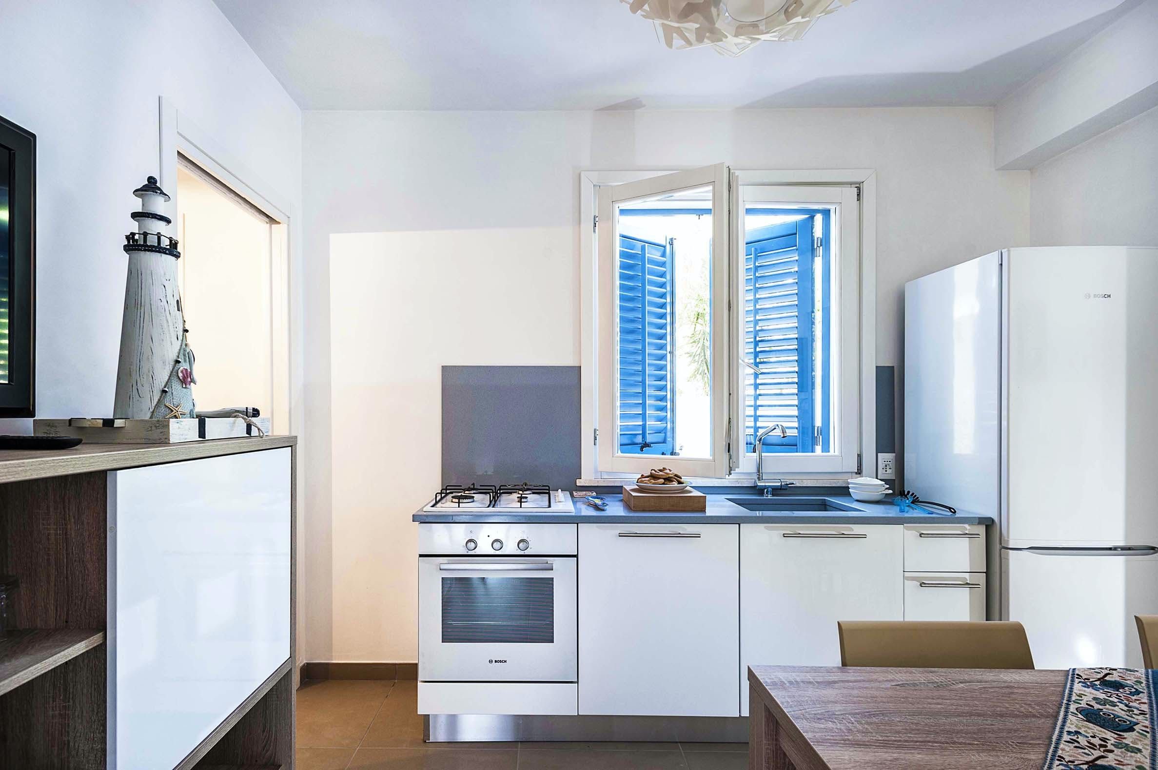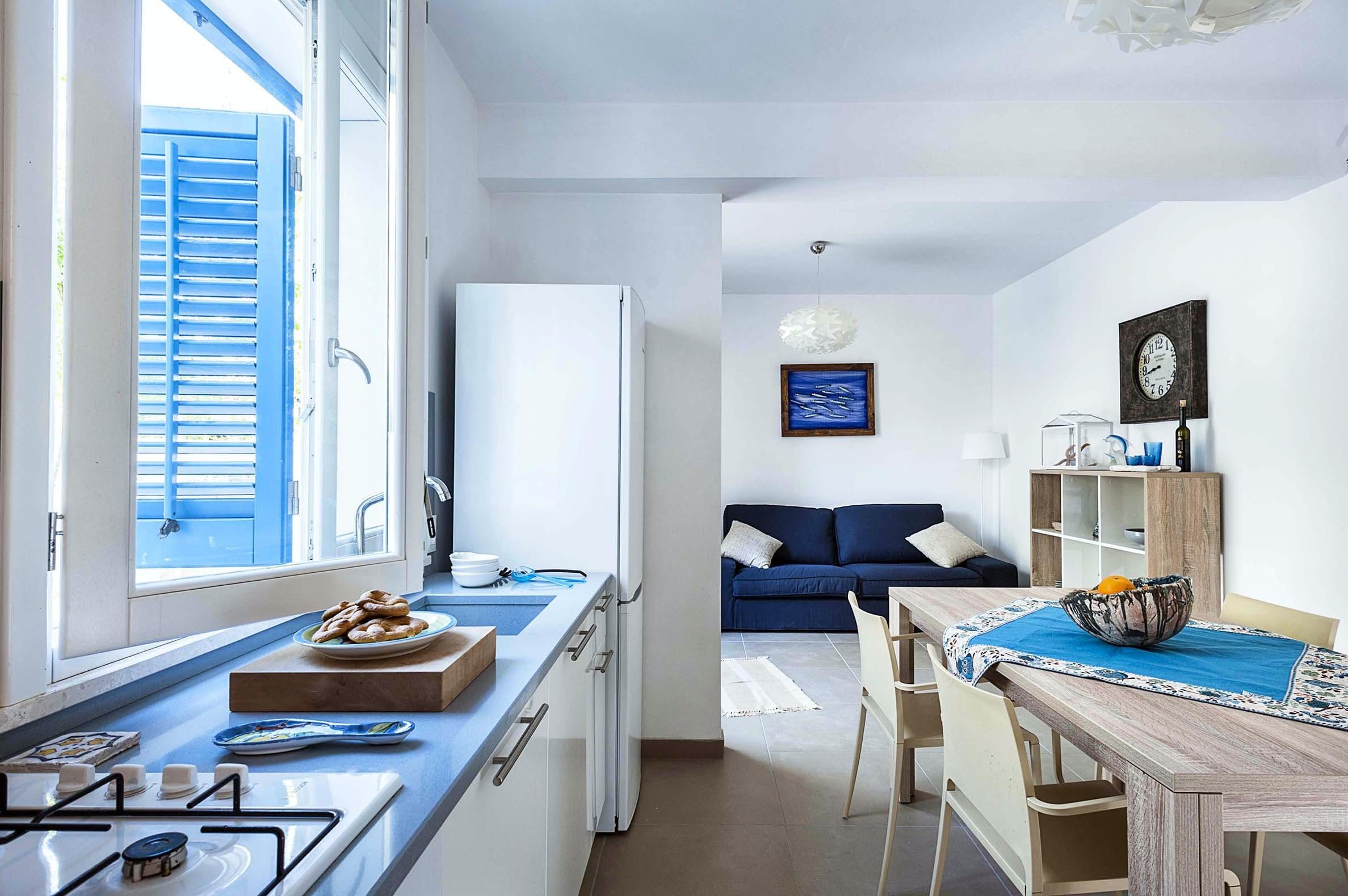 You’ll find this charming white house located in the centre of San Vito Lo Capo, just a few steps from the beach (80 metres) and close to shops, restaurants and cafes (400 metres). The town is ideal for foodies – it even hosts the Cous Cous Fest annually. Other nearby attractions include the Zingaro Nature Reserve, Scopello, Erice, Trapani and Marsala (let your host arrange some Marsala tasting). You don’t have to go anywhere, though, for beautiful views of the sea – take them in from the private roof terrace. There’s a garden with a terrace perfect for alfresco dining too.