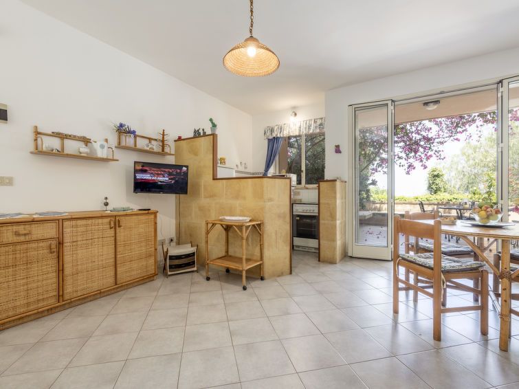 "Cicladi Anafi", 3-room apartment on the ground floor. Simple and comfortable furnishings: living/dining room with TV. Exit to the terrace. 1 double bedroom with fan. 1 room with 2 beds and fan. Kitchenette (oven, Gas stove, 4 gas rings, toaster, kettle, microwave). Shower/bidet/WC.