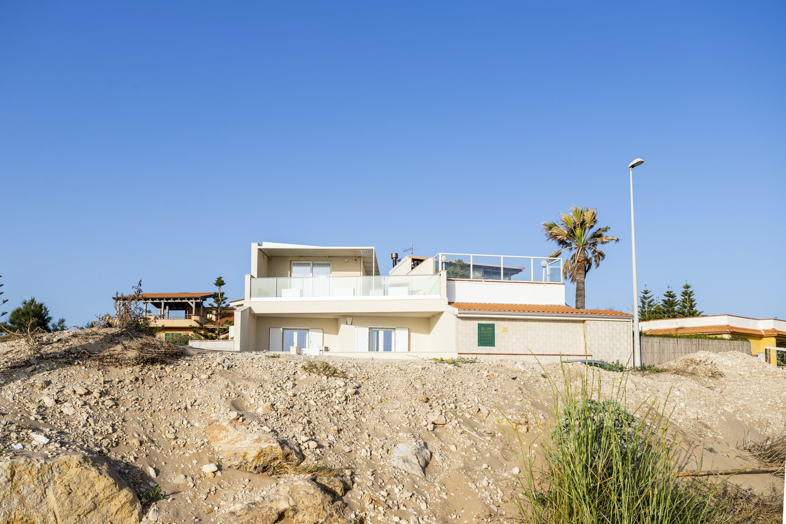 Positioned just 100 metres from Santa Maria del Focallo, this spot is made up of two apartments – making it ideal for two families travelling together and could benefit from having two kitchens and living areas. Since you'll want to make the most of the sea views here, the outside space is where you'll likely spend most of your time. The alfresco dining area provides a central meeting spot for the group to enjoy leisurely lunches and alfresco Italian meals at sunset. You'll find a supermarket and bar within walking distance, however, you'll need to drive to the more built-up towns of Pozzallo, Modica and Ragusa for more variety.