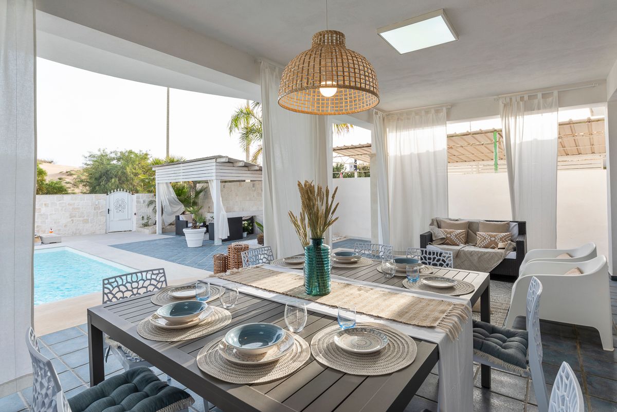 Right next to the shimmering azure waters of the south Sicilian coast – mere steps away from the beachfront – this gorgeous two-bedroom villa awaits its next lucky guests. Step inside and you’ll find sea-coloured tiles, modern furnishing and a cosy atmosphere – but it’s the exterior that truly dazzles. Here you'll be greeted by a large outdoor dining table, perfect for alfresco dinners at sunset, then go down a couple of steps to reach your own private salt pool. Surrounded by sun loungers, umbrellas and a chill-out nook perfect for a casual chat over a cocktail, once you’re here, you won’t want to leave this spot.
