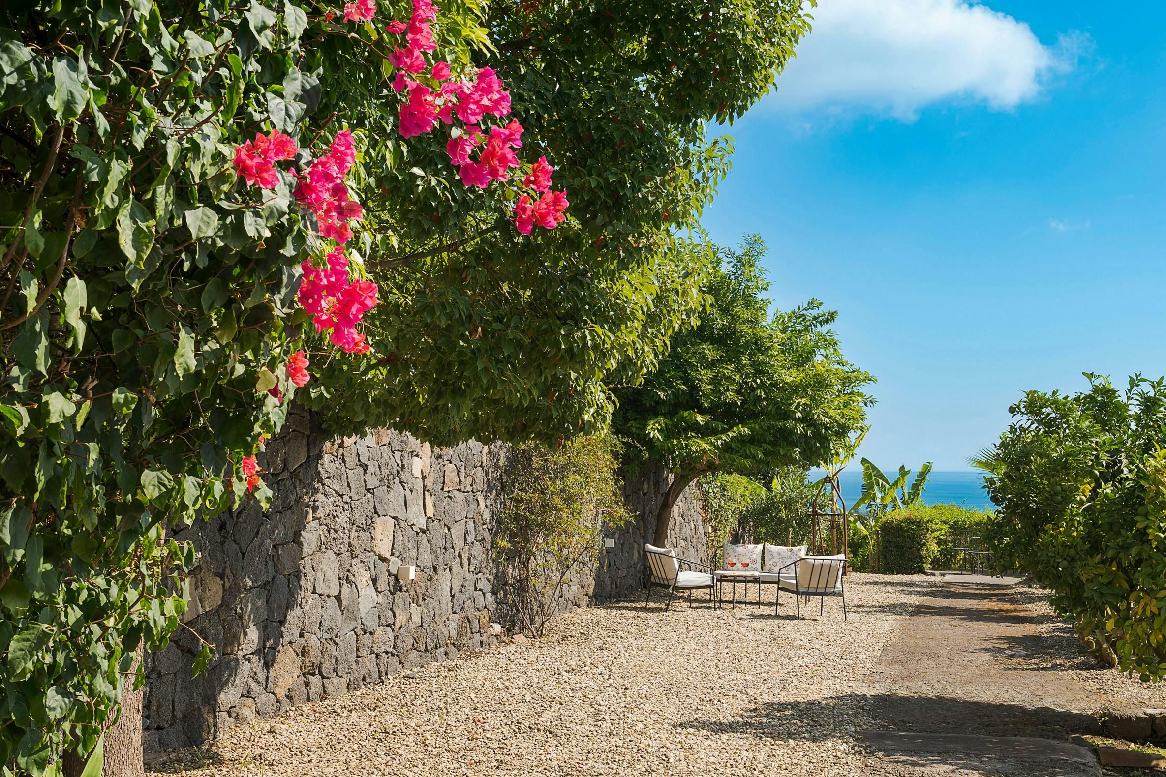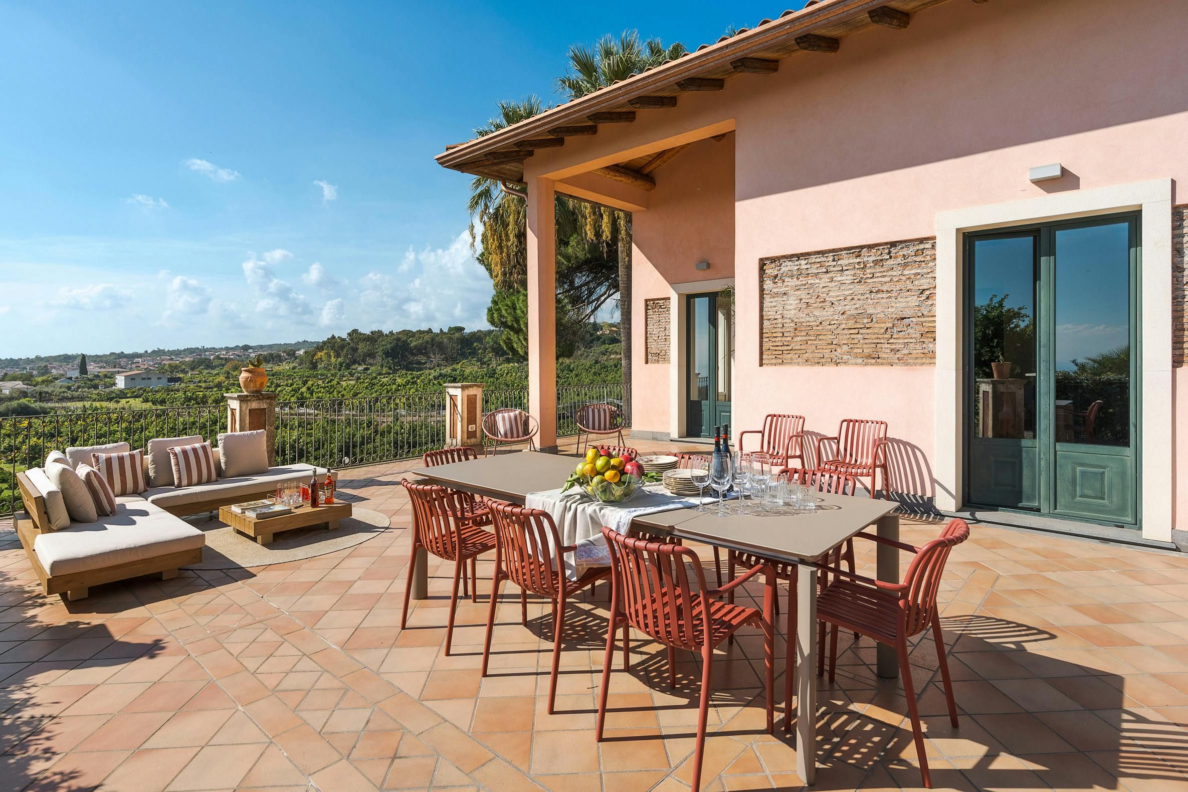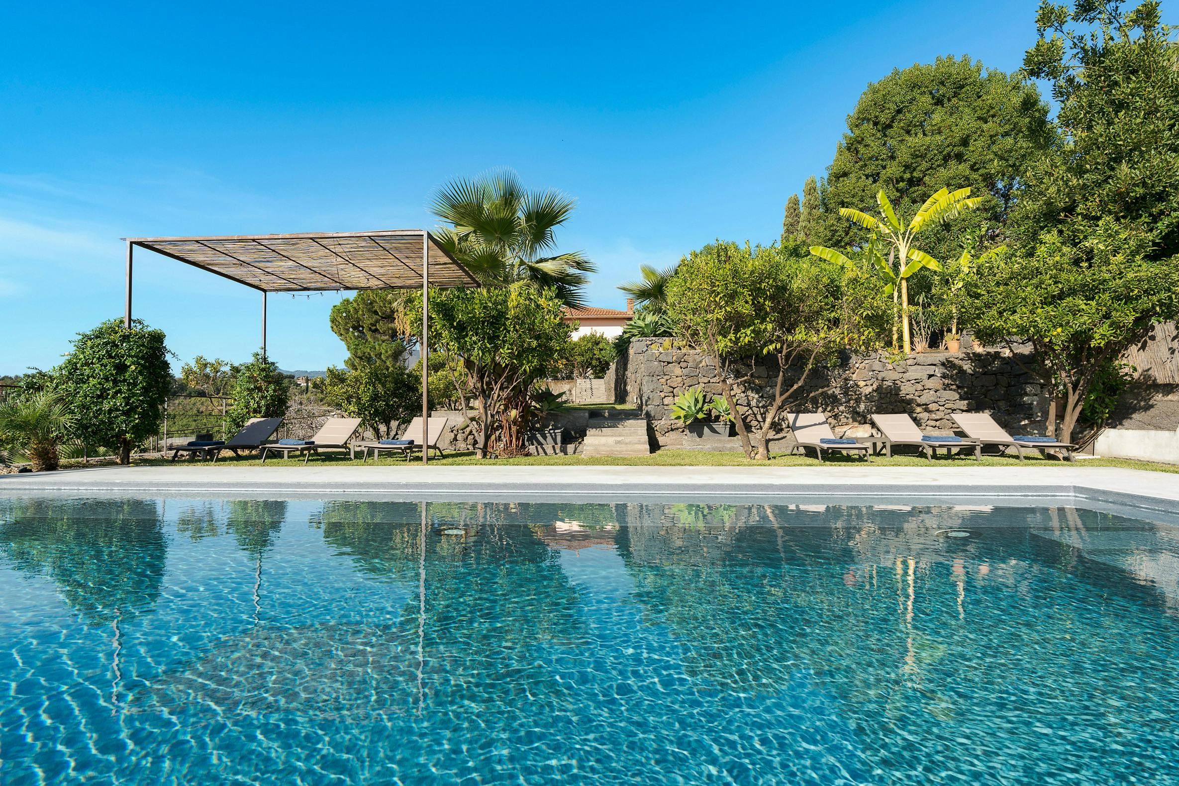 Don't be fooled by the stripped-back interiors at this Sicily villa – there are more than enough enchanting sights outside. The patio basks in the island sunshine, and from the infinity pool, you'll enjoy views down the green slopes of Etna to the Mediterranean. Tropical plants and orange trees fill the gardens, offering a peaceful setting for alfresco meals under the pergola. The minimal design might pale a little in comparison with the verdure outside, but the antique furnishings have their own charm – we bet the piano and air hockey table will get plenty of use. Halfway between Catania and Taormina, this home also offers plenty of options for day trips.