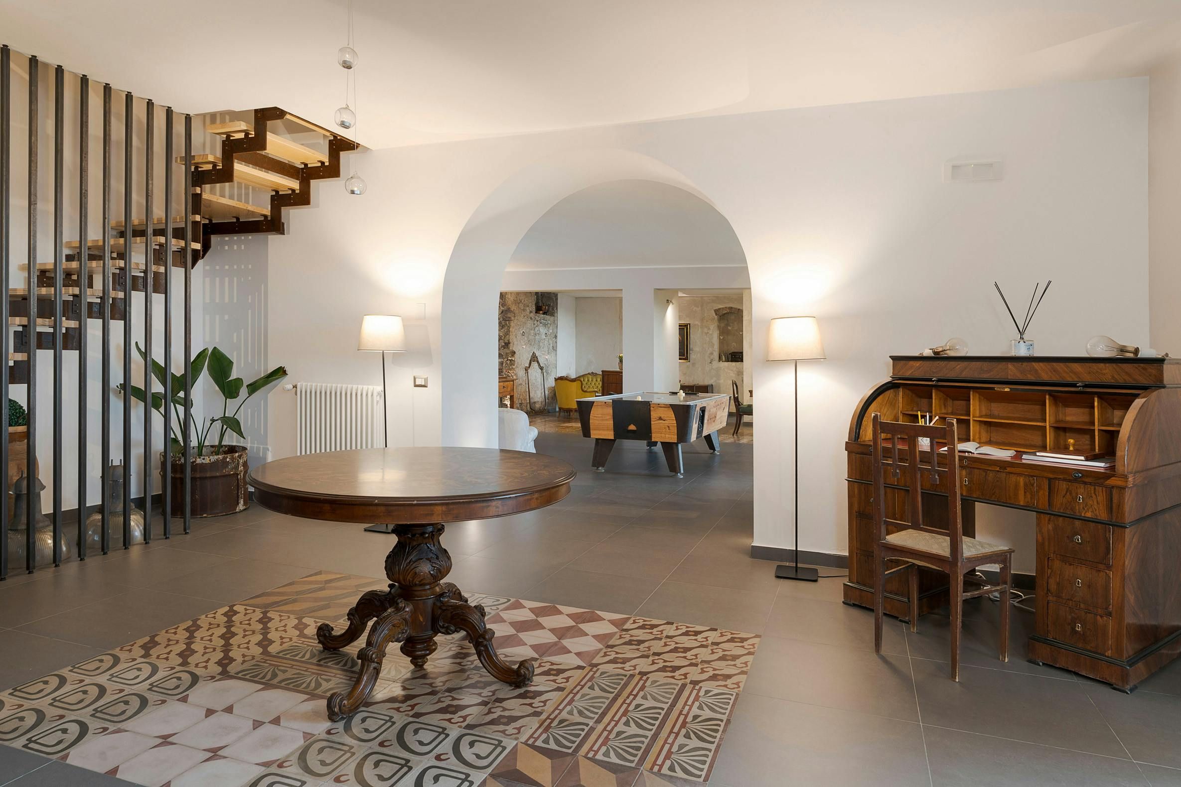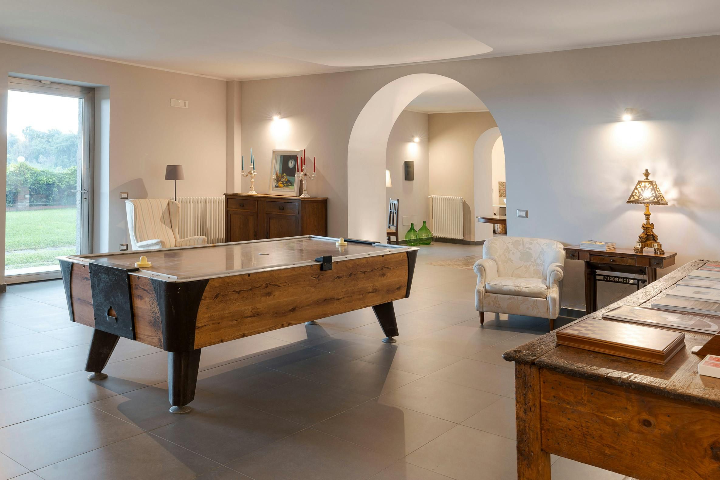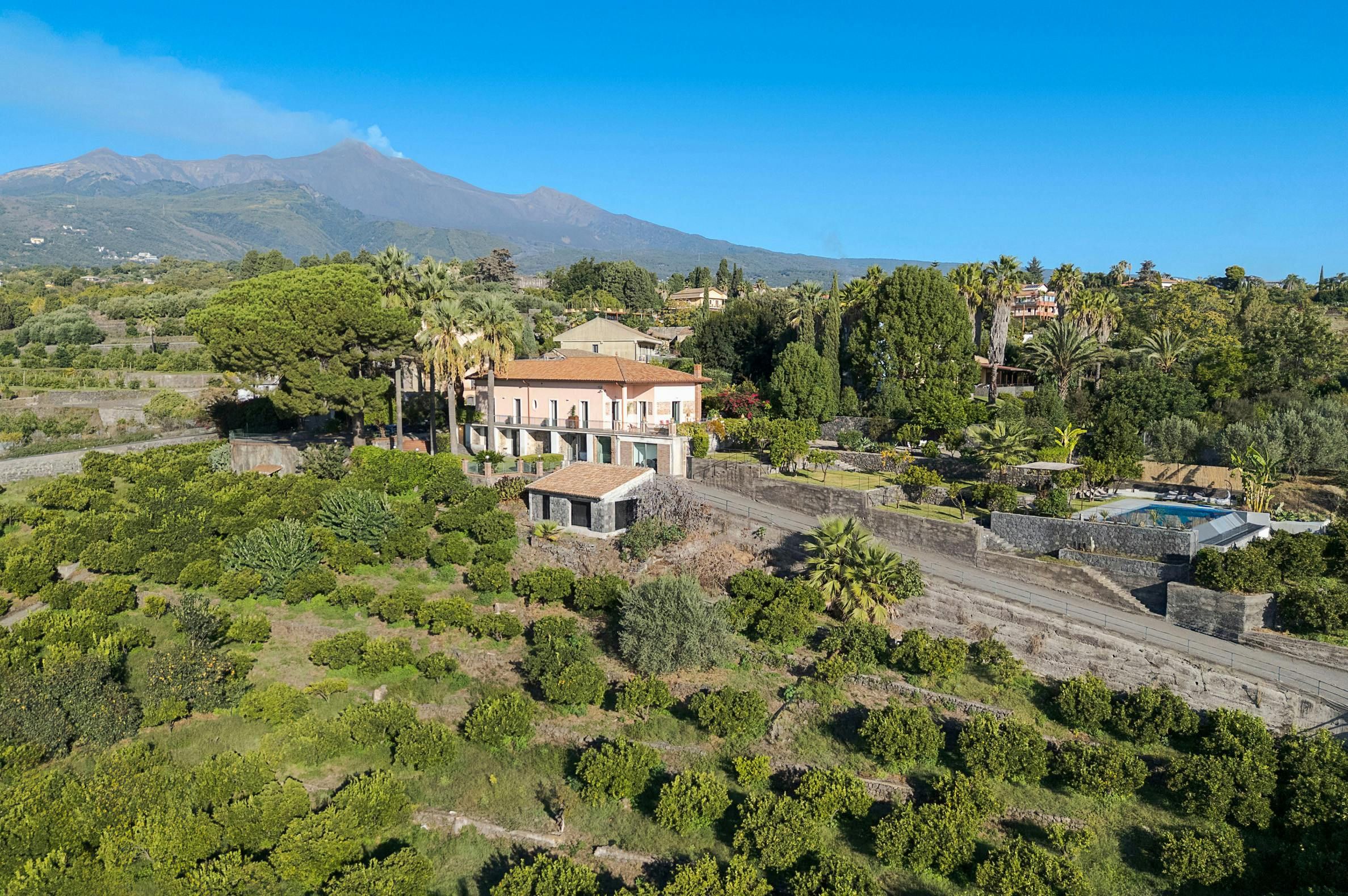 Don't be fooled by the stripped-back interiors at this Sicily villa – there are more than enough enchanting sights outside. The patio basks in the island sunshine, and from the infinity pool, you'll enjoy views down the green slopes of Etna to the Mediterranean. Tropical plants and orange trees fill the gardens, offering a peaceful setting for alfresco meals under the pergola. The minimal design might pale a little in comparison with the verdure outside, but the antique furnishings have their own charm – we bet the piano and air hockey table will get plenty of use. Halfway between Catania and Taormina, this home also offers plenty of options for day trips.