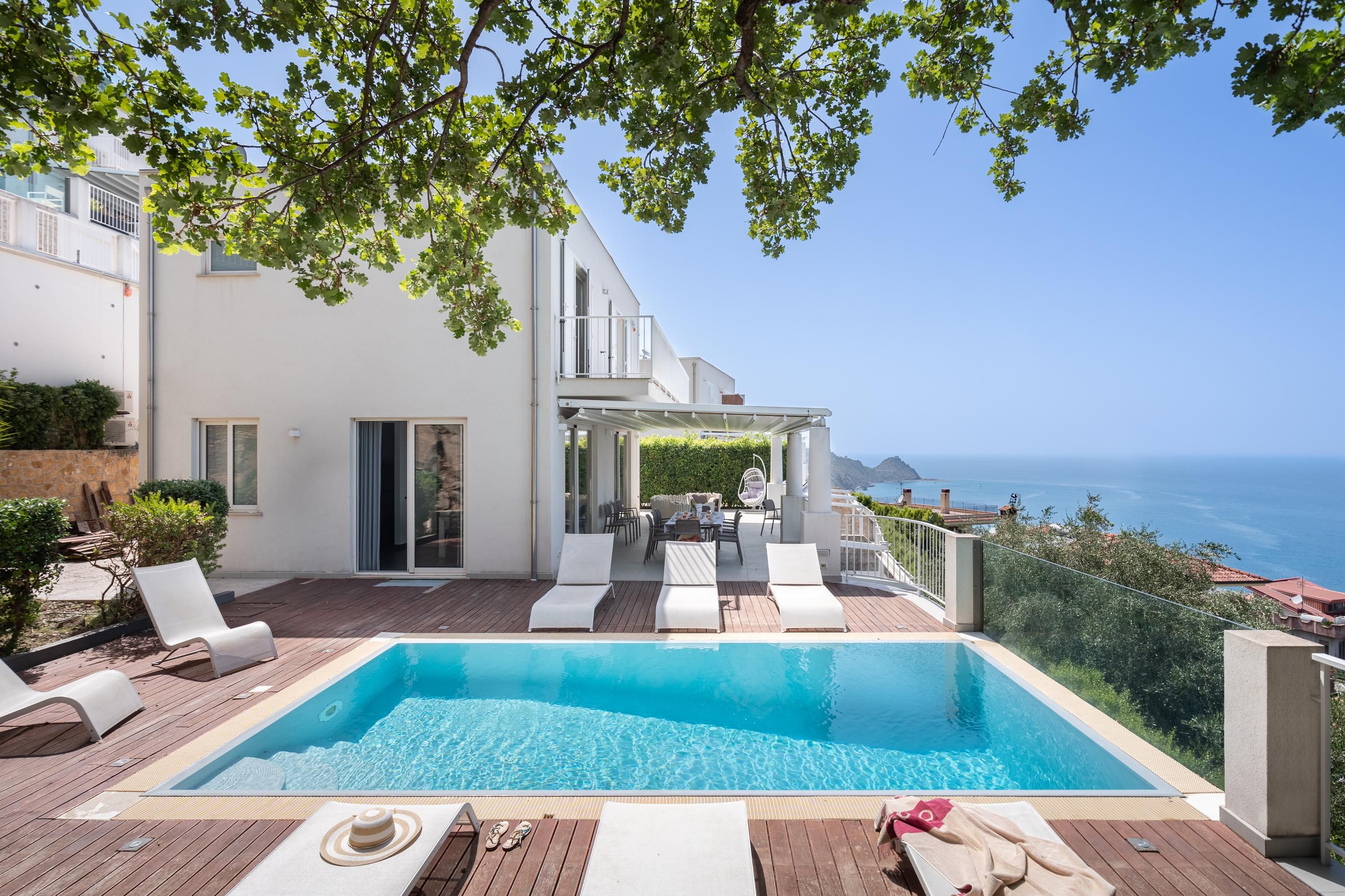 With an enviable location on the stunning coast of Sicily, this home will make you want to settle in and stay. You’ll be welcomed by beautiful sea views and there’s a private saltwater pool with loungers for luxurious relaxation. The terrace sets the tone for lingering sunset drinks and the rooms are well suited to families with plenty of space across three floors. And when it comes to explorations further afield, it’s just a short stroll to the nearest beach, while Capo d'Orlando and Brolo are within easy driving distance.
