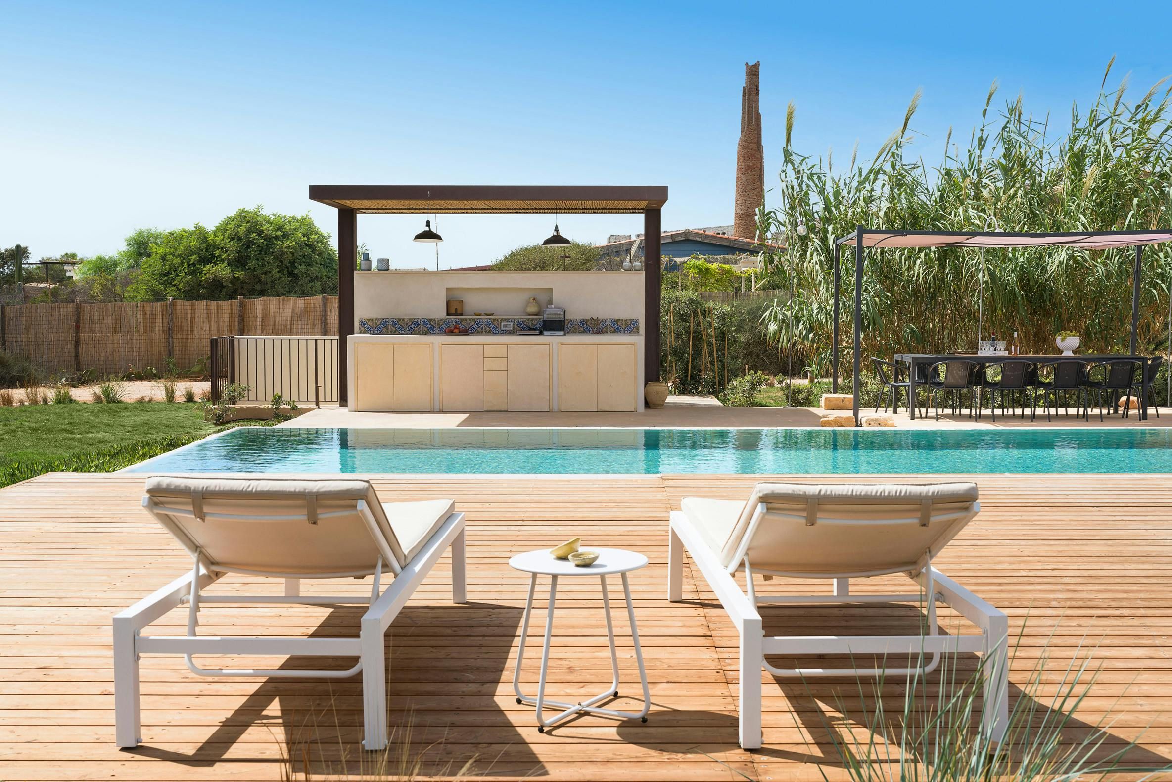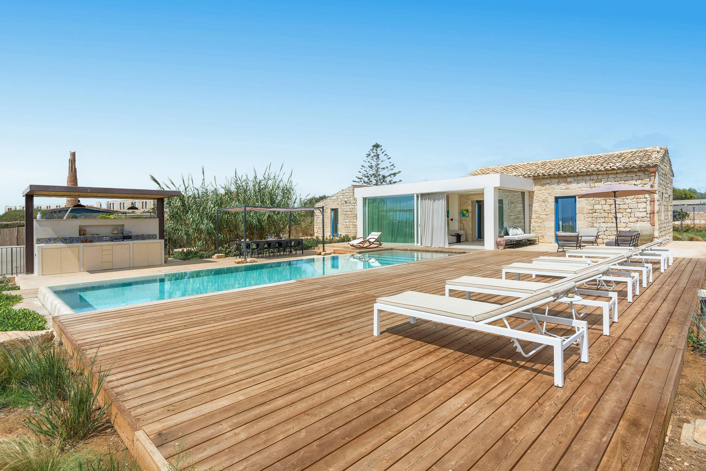 Overlooking the Mediterranean Sea and only 100 metres from the beach, this villa guarantees a memorable getaway in the south of Sicily. Outside, there’s a private pool, a seating area for alfresco refreshments and enough sun loungers for the whole group. Inside, the place is simple yet well-appointed, with a kitchen for rustling up your favourite suppers. You’ll need a car if you fancy exploring the island – Sampieri is close by, and Sicili is around a twenty-five-minute drive away.