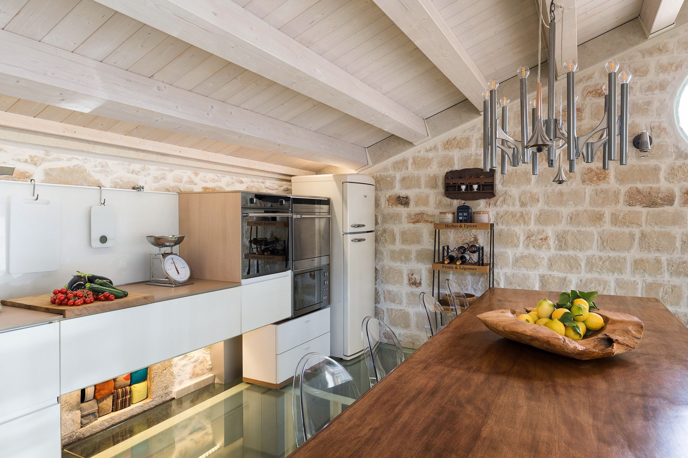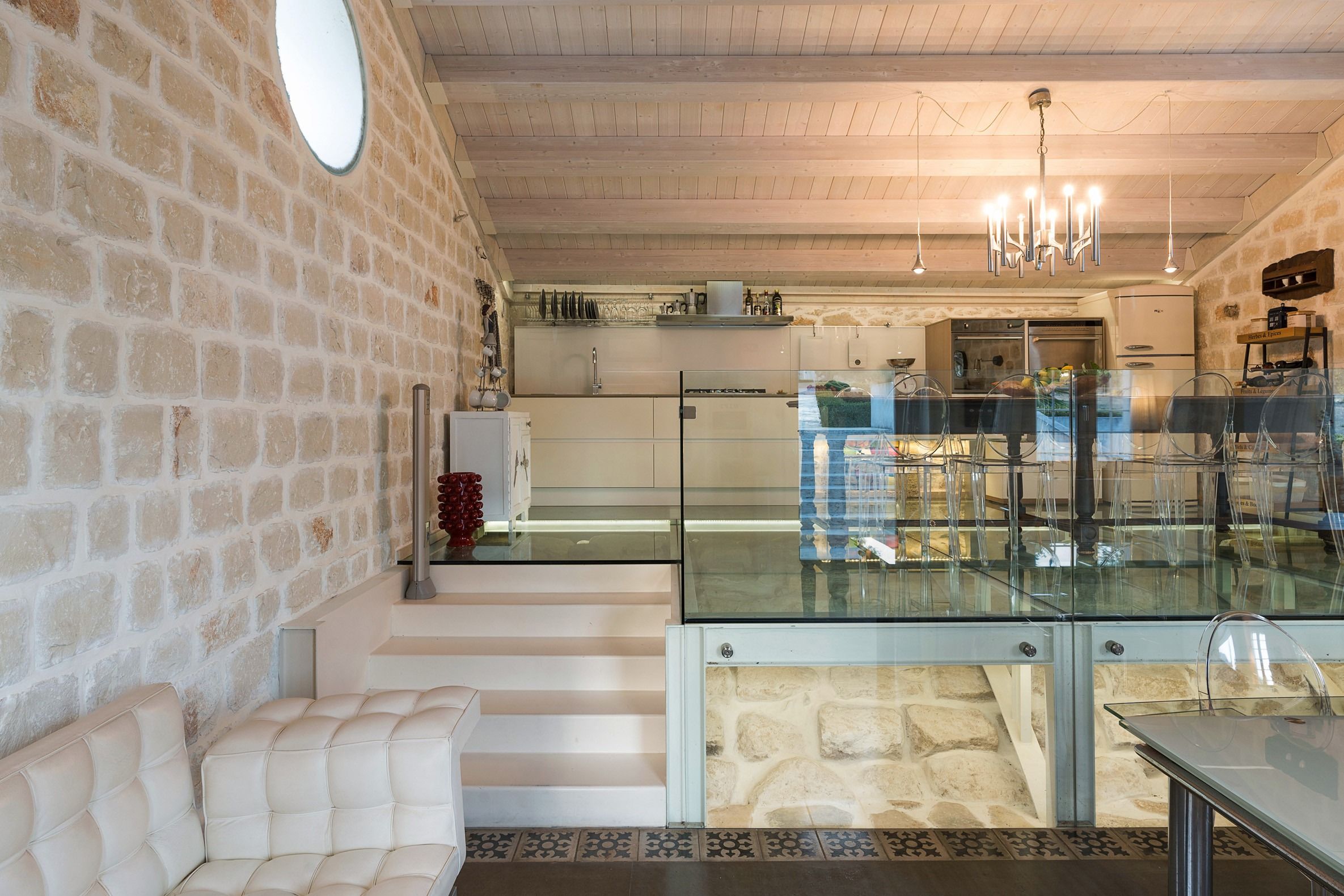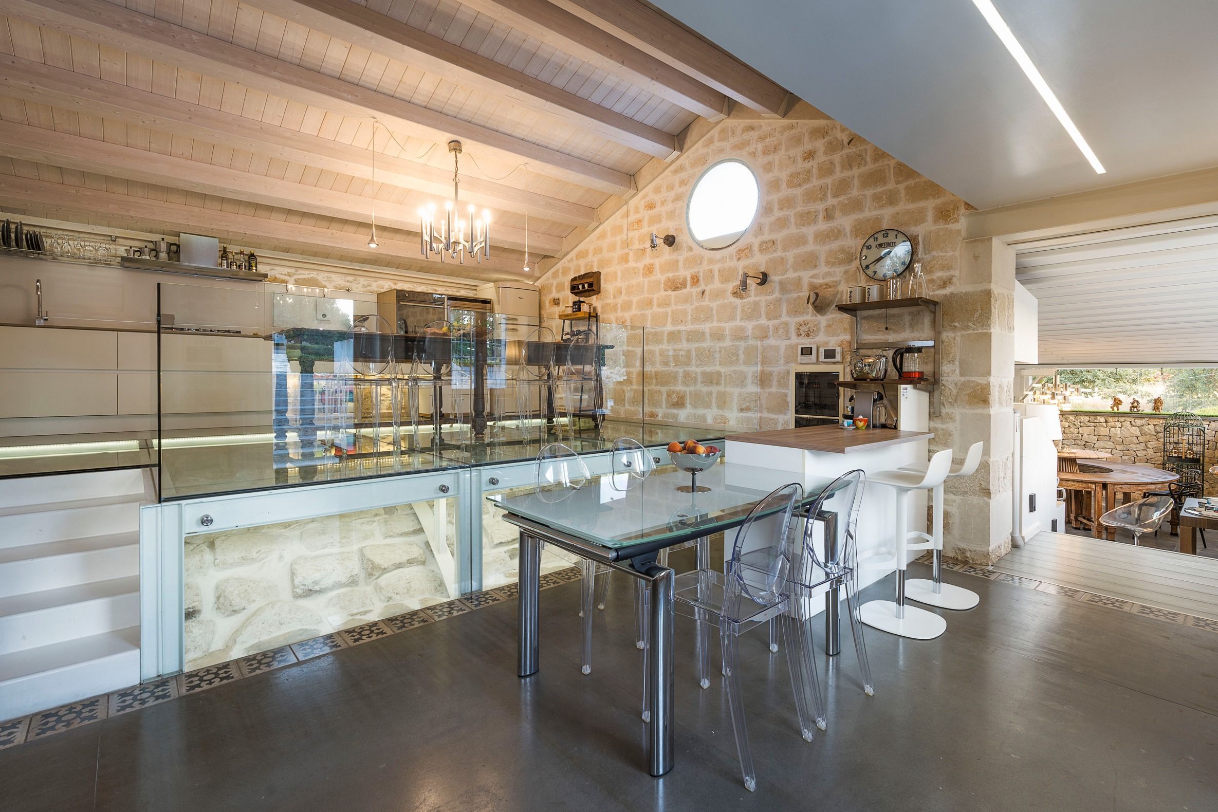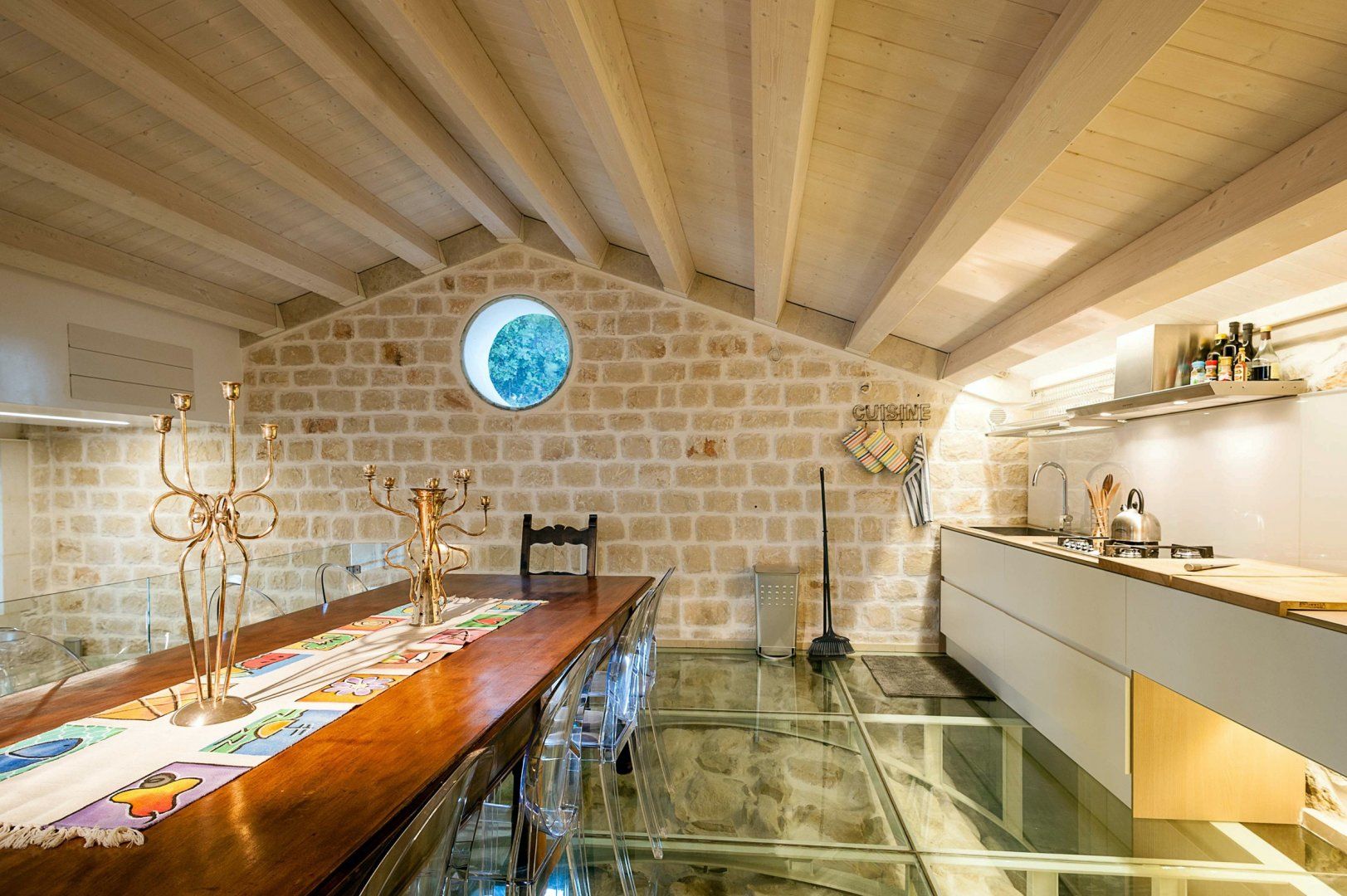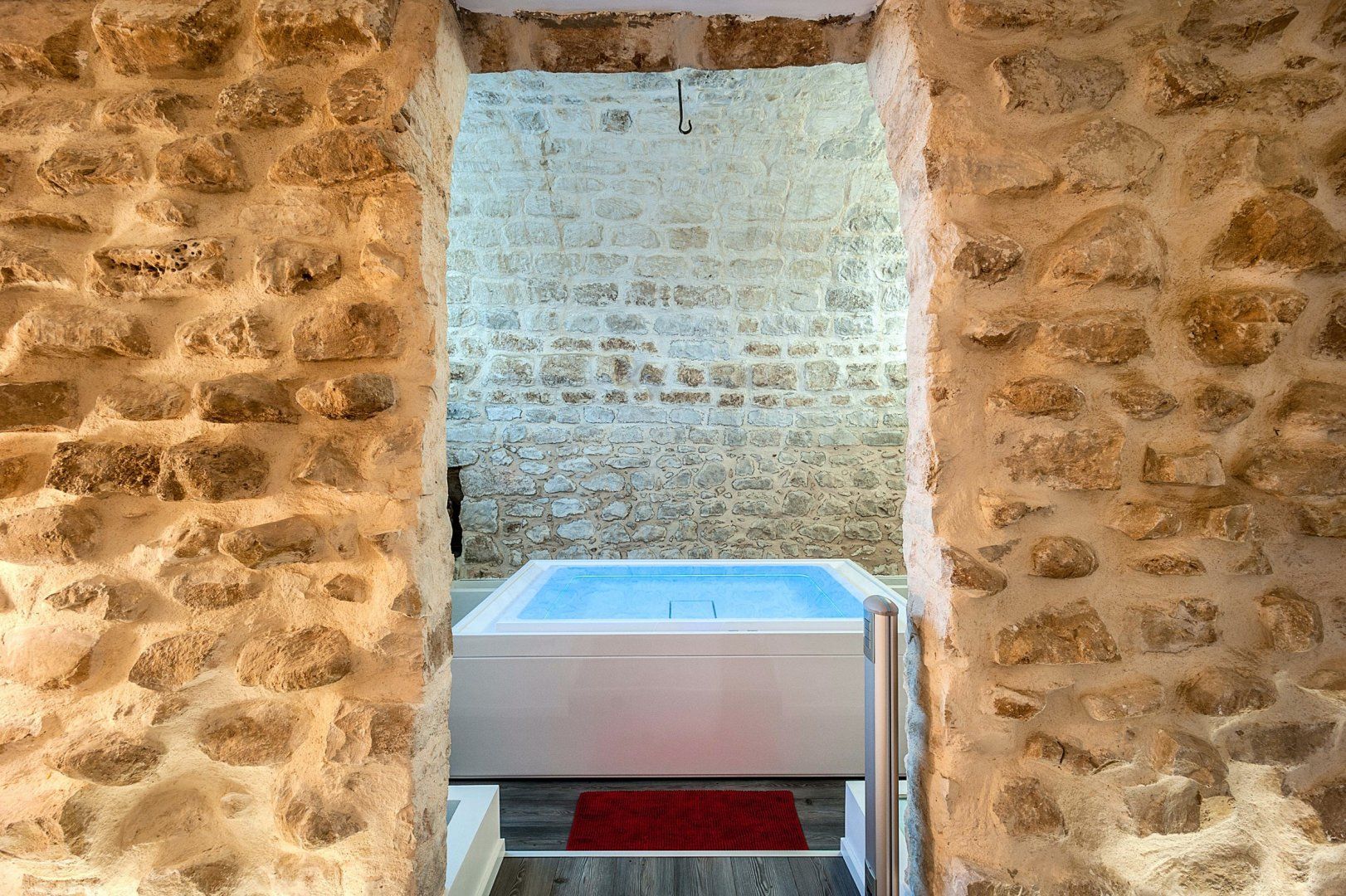 Lazy mornings were made for soaking up the sun by your saltwater pool and sipping an espresso on the terrace. Inside, we absolutely adore how the glass-floored kitchen honours the age of this home. After an adventure on the coast, come back and relax in your very own wellness room – complete with a private hot tub and sauna. From wine tasting to beauty treatments, there are plenty of ways to pamper yourself between these stone walls. Perhaps you'll want to keep the evenings simple with a sunset barbecue, or you could arrange for a professional chef to serve a feast to your family.