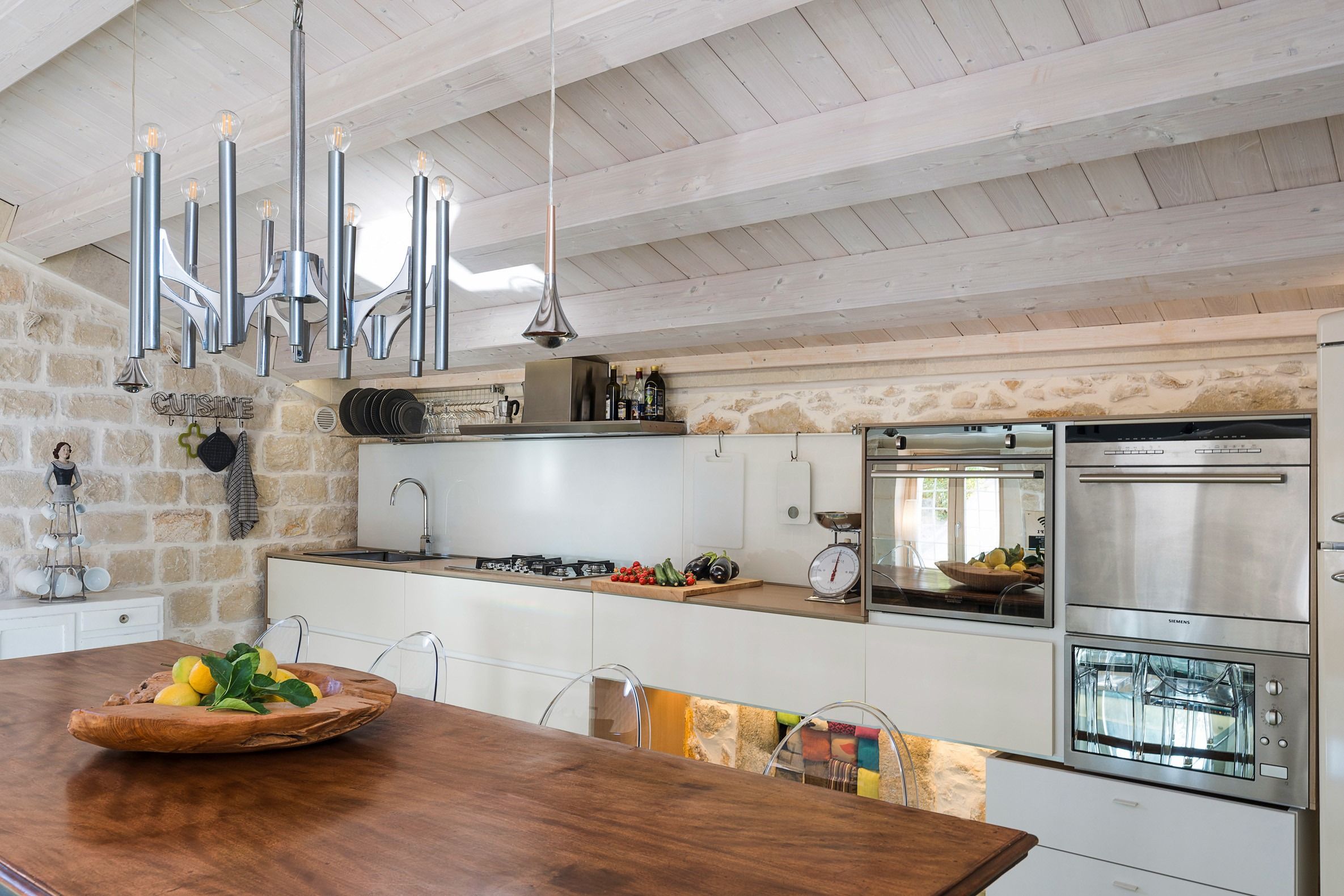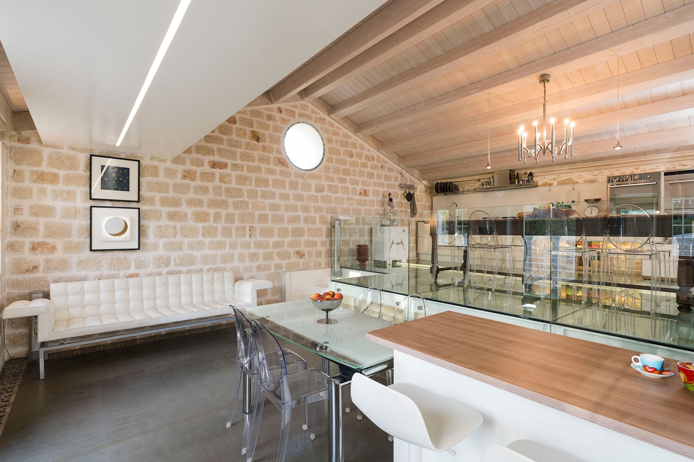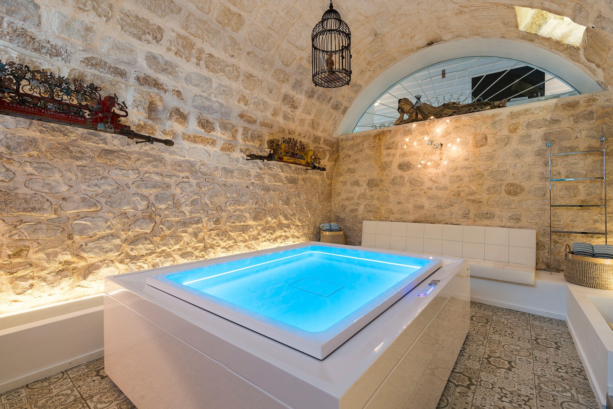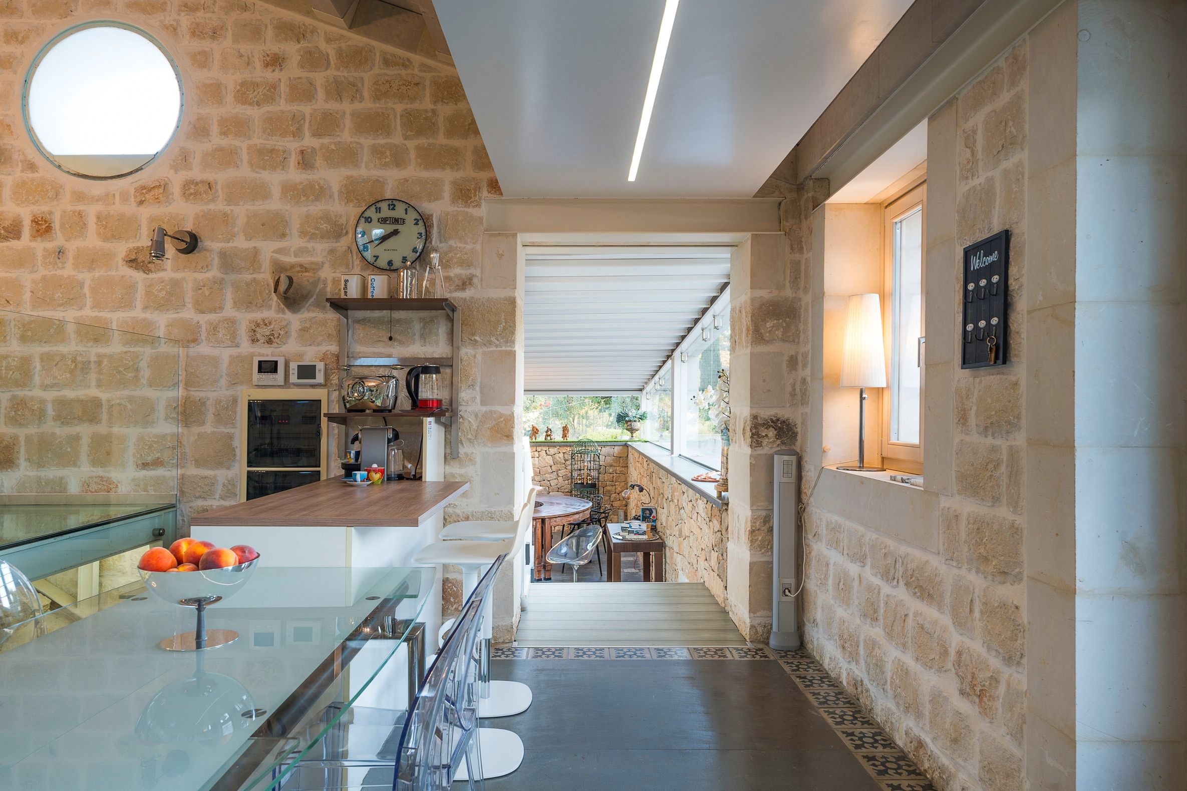 Lazy mornings were made for soaking up the sun by your saltwater pool and sipping an espresso on the terrace. Inside, we absolutely adore how the glass-floored kitchen honours the age of this home. After an adventure on the coast, come back and relax in your very own wellness room – complete with a private hot tub and sauna. From wine tasting to beauty treatments, there are plenty of ways to pamper yourself between these stone walls. Perhaps you'll want to keep the evenings simple with a sunset barbecue, or you could arrange for a professional chef to serve a feast to your family.