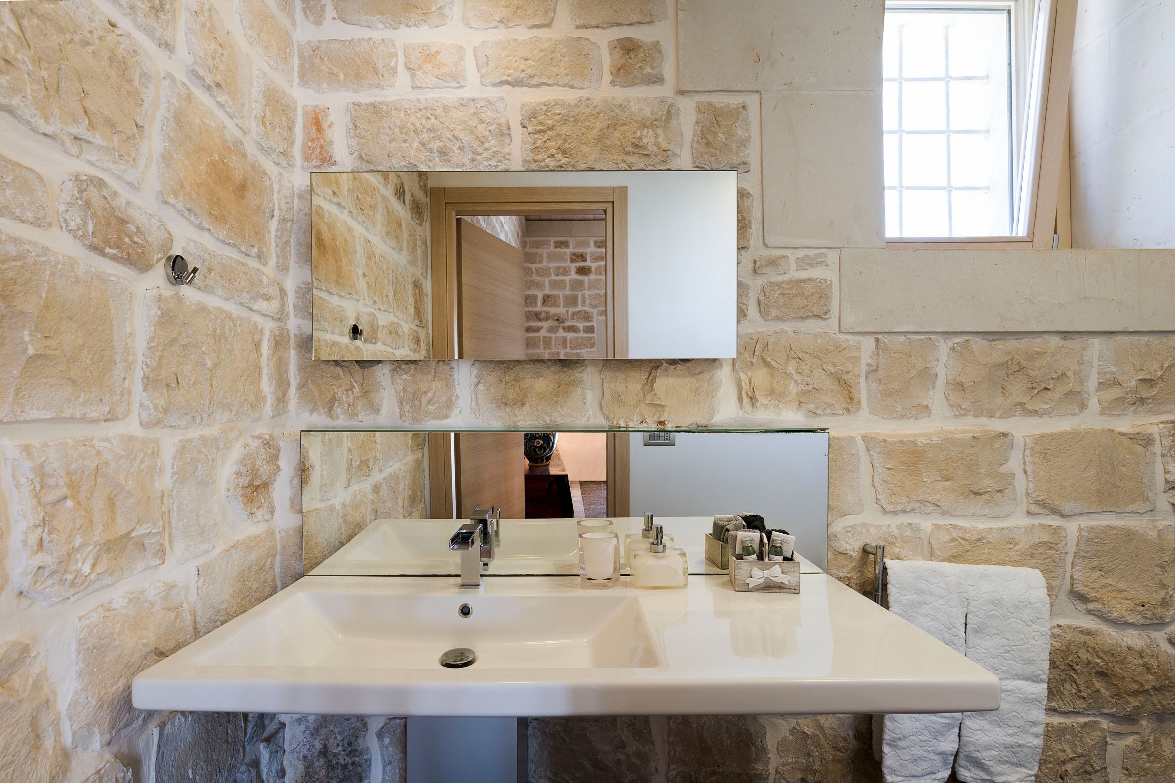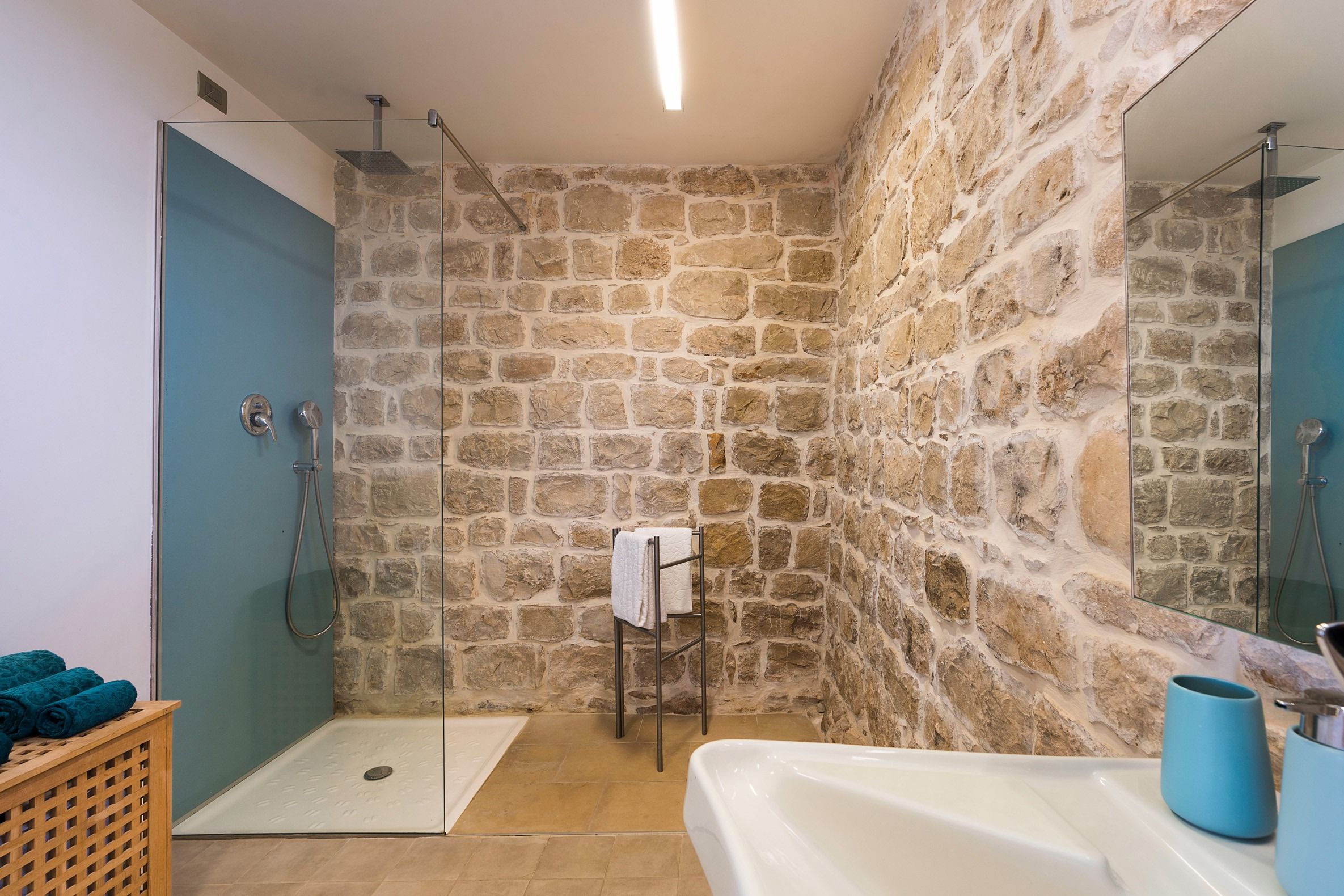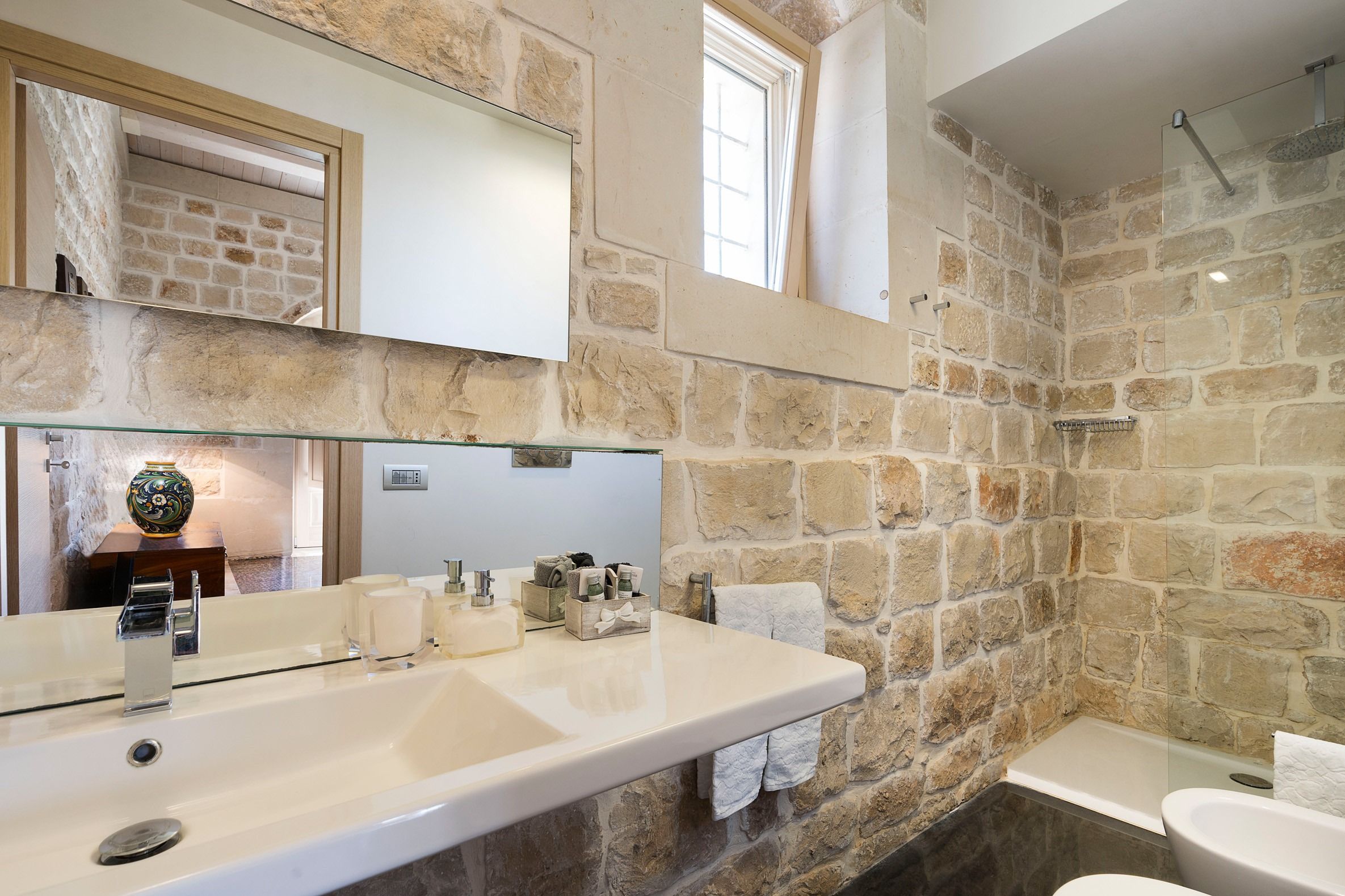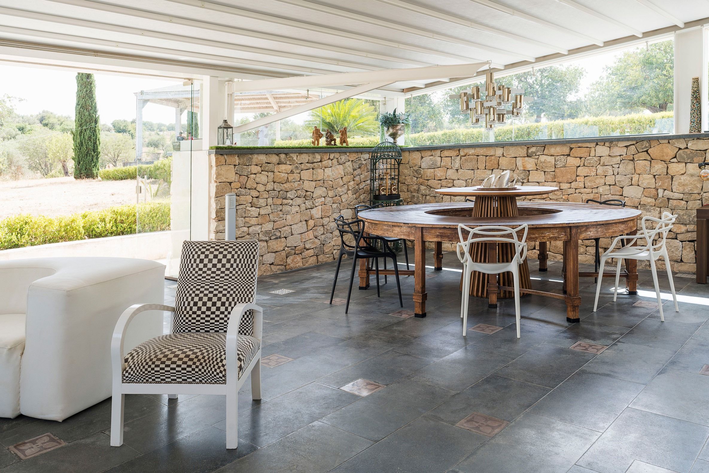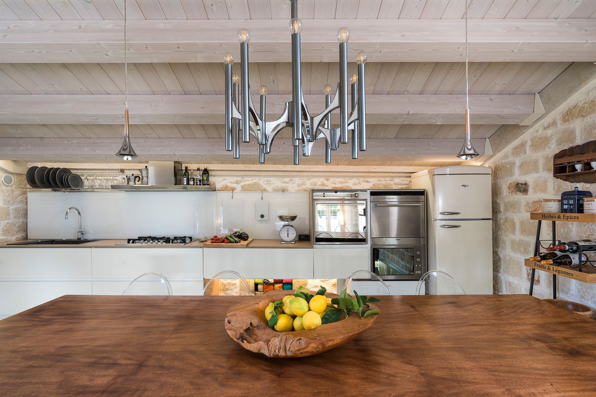 Lazy mornings were made for soaking up the sun by your saltwater pool and sipping an espresso on the terrace. Inside, we absolutely adore how the glass-floored kitchen honours the age of this home. After an adventure on the coast, come back and relax in your very own wellness room – complete with a private hot tub and sauna. From wine tasting to beauty treatments, there are plenty of ways to pamper yourself between these stone walls. Perhaps you'll want to keep the evenings simple with a sunset barbecue, or you could arrange for a professional chef to serve a feast to your family.