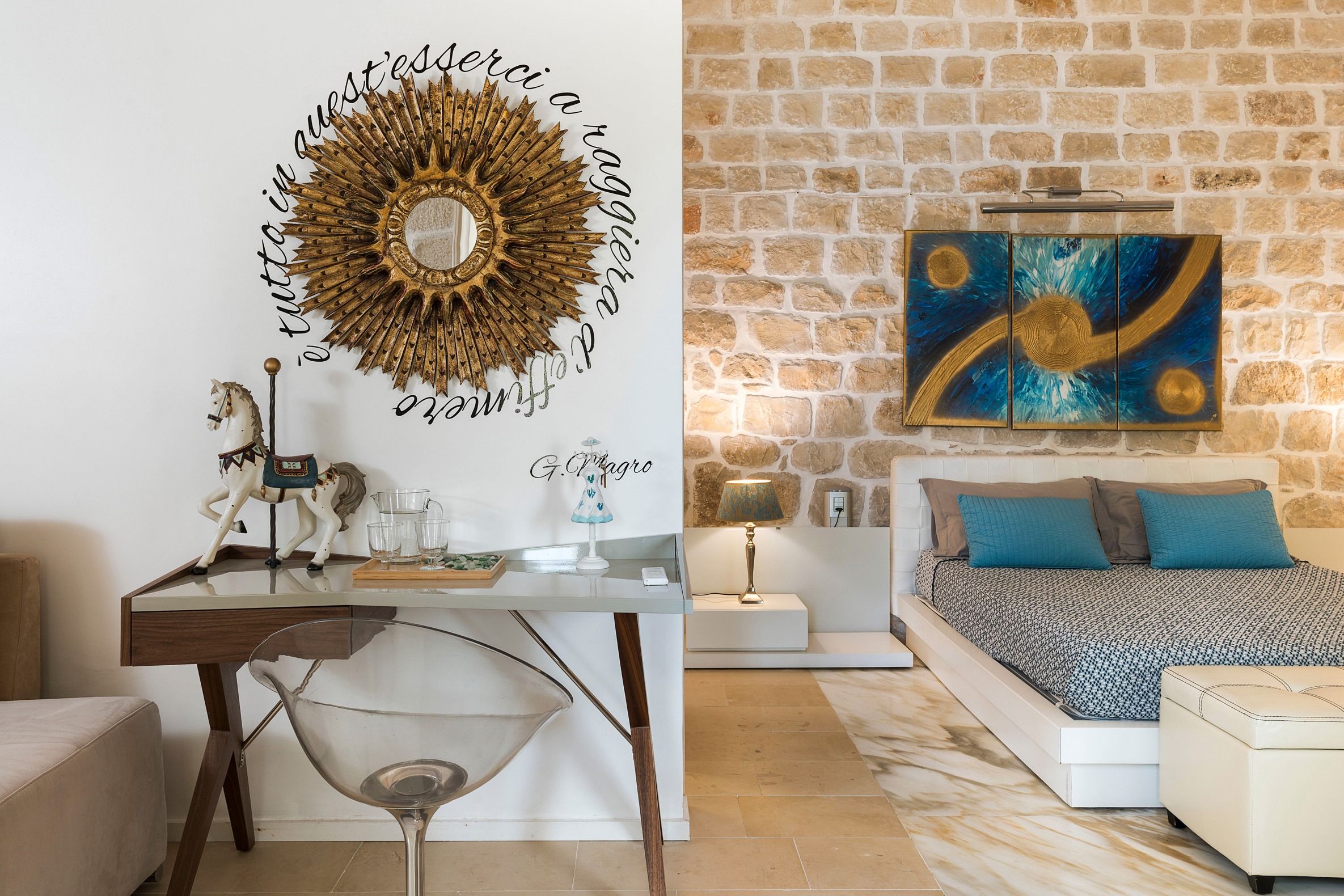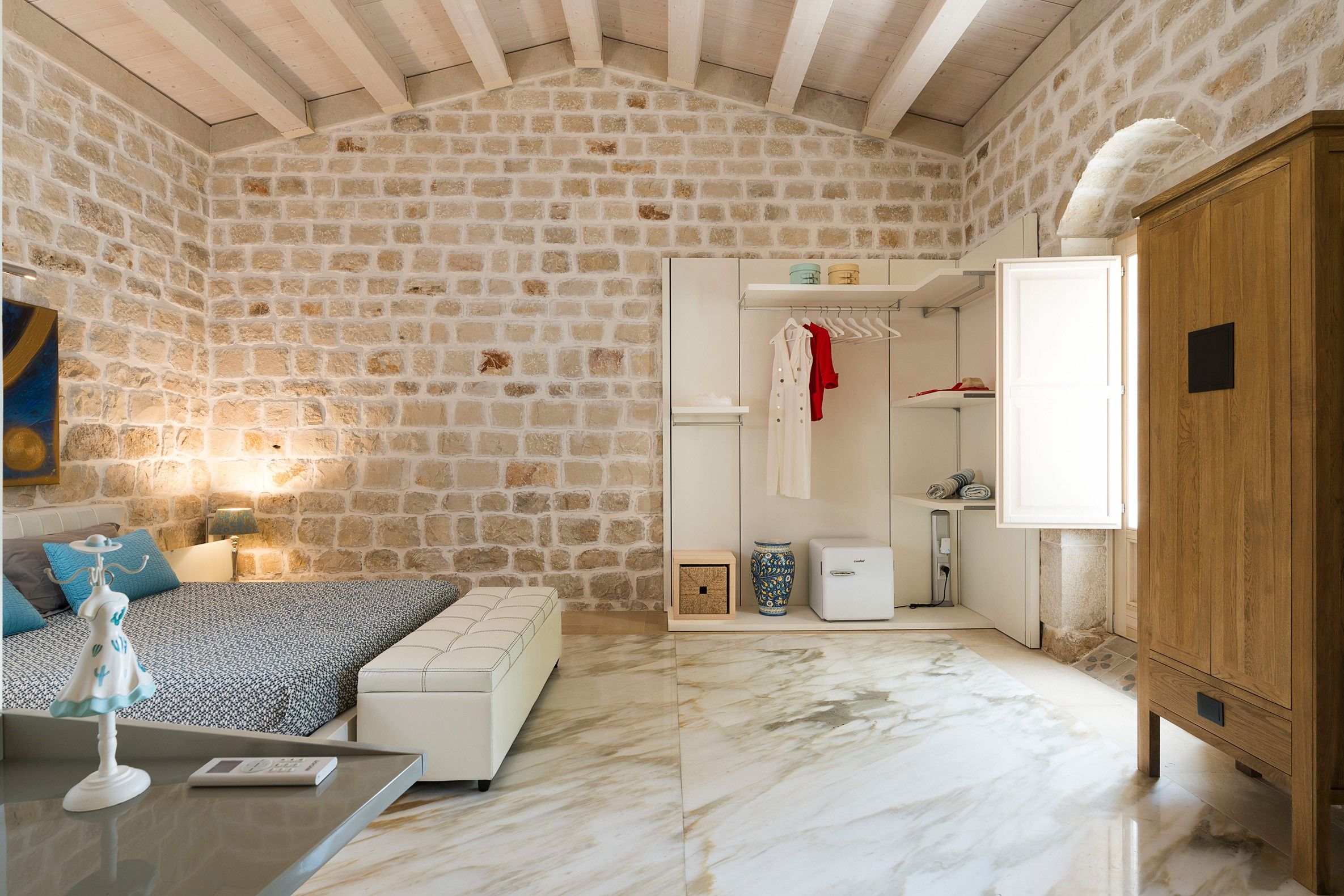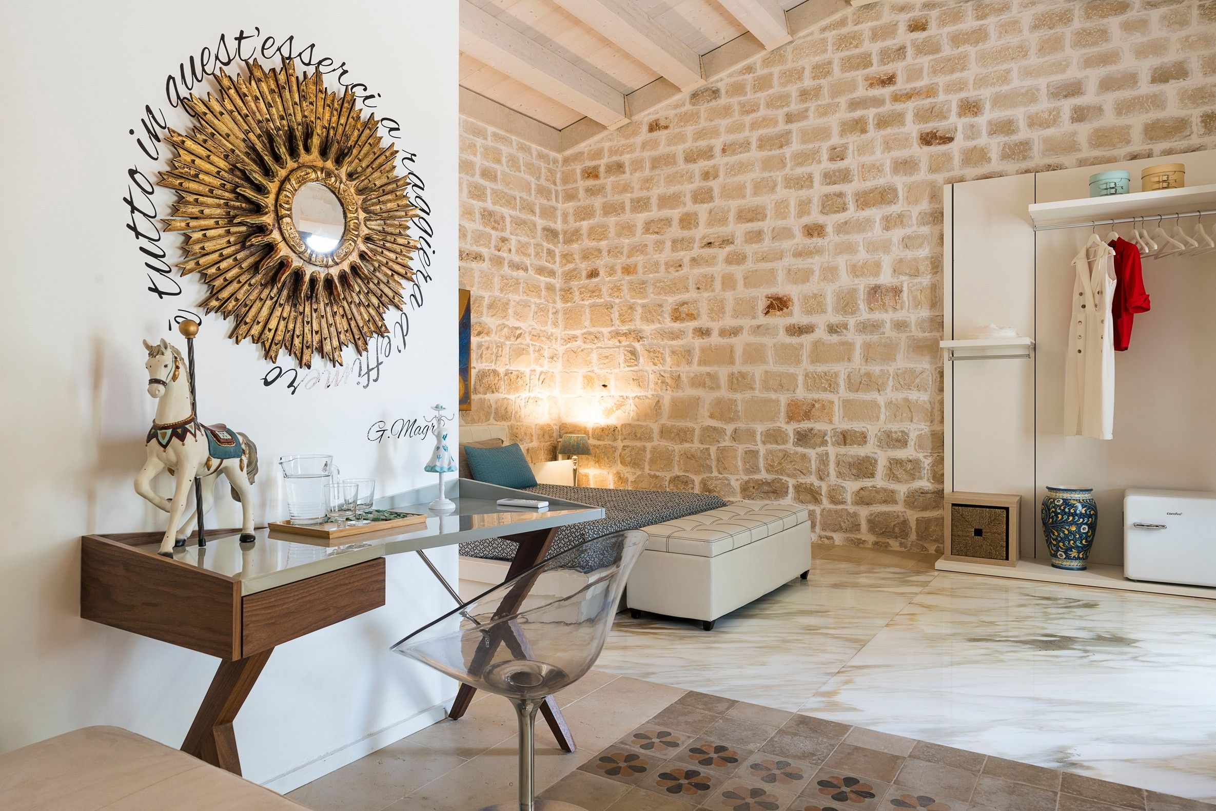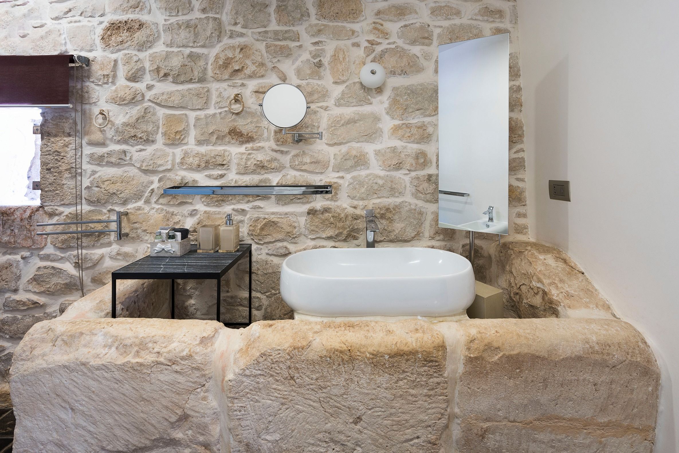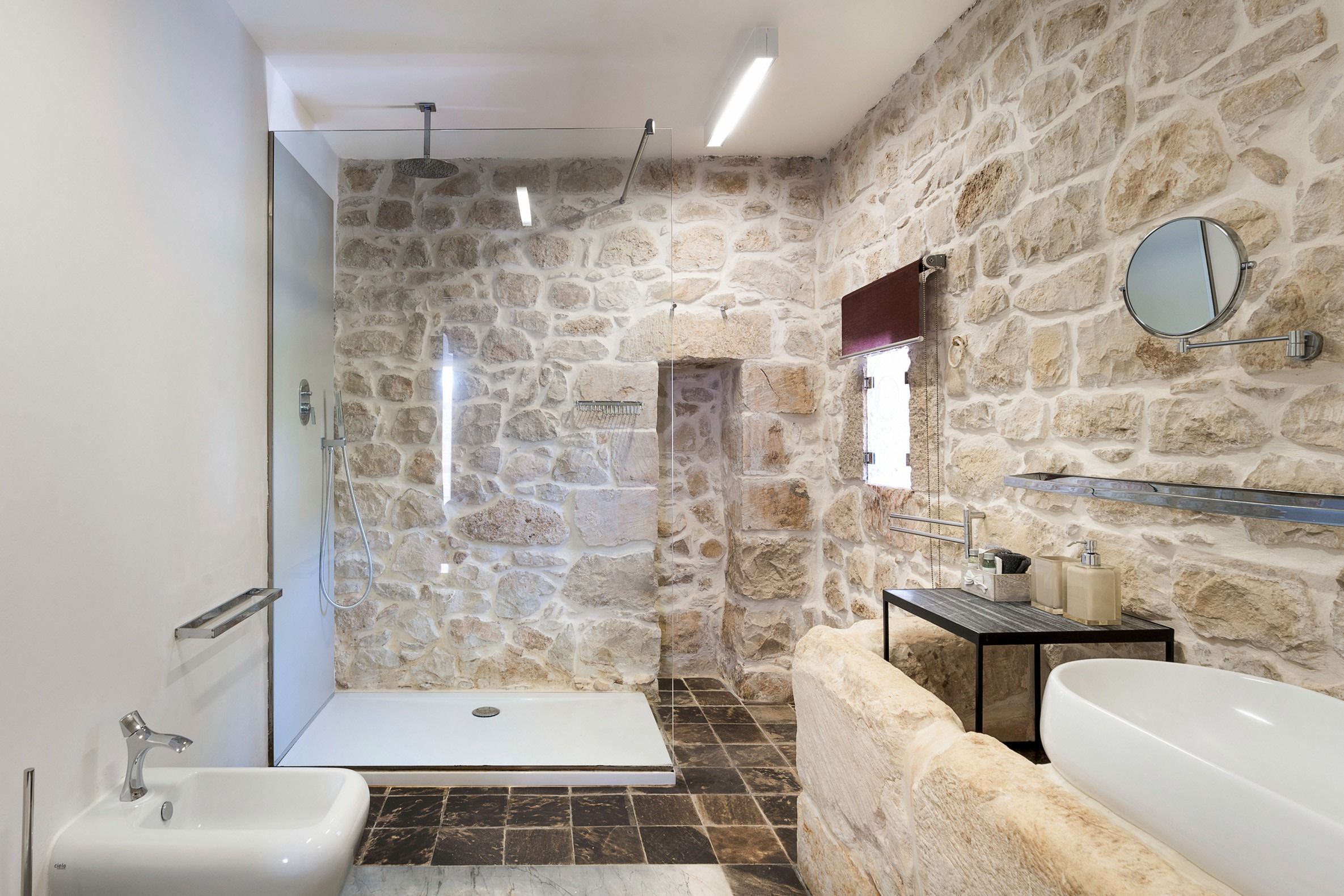 Lazy mornings were made for soaking up the sun by your saltwater pool and sipping an espresso on the terrace. Inside, we absolutely adore how the glass-floored kitchen honours the age of this home. After an adventure on the coast, come back and relax in your very own wellness room – complete with a private hot tub and sauna. From wine tasting to beauty treatments, there are plenty of ways to pamper yourself between these stone walls. Perhaps you'll want to keep the evenings simple with a sunset barbecue, or you could arrange for a professional chef to serve a feast to your family.