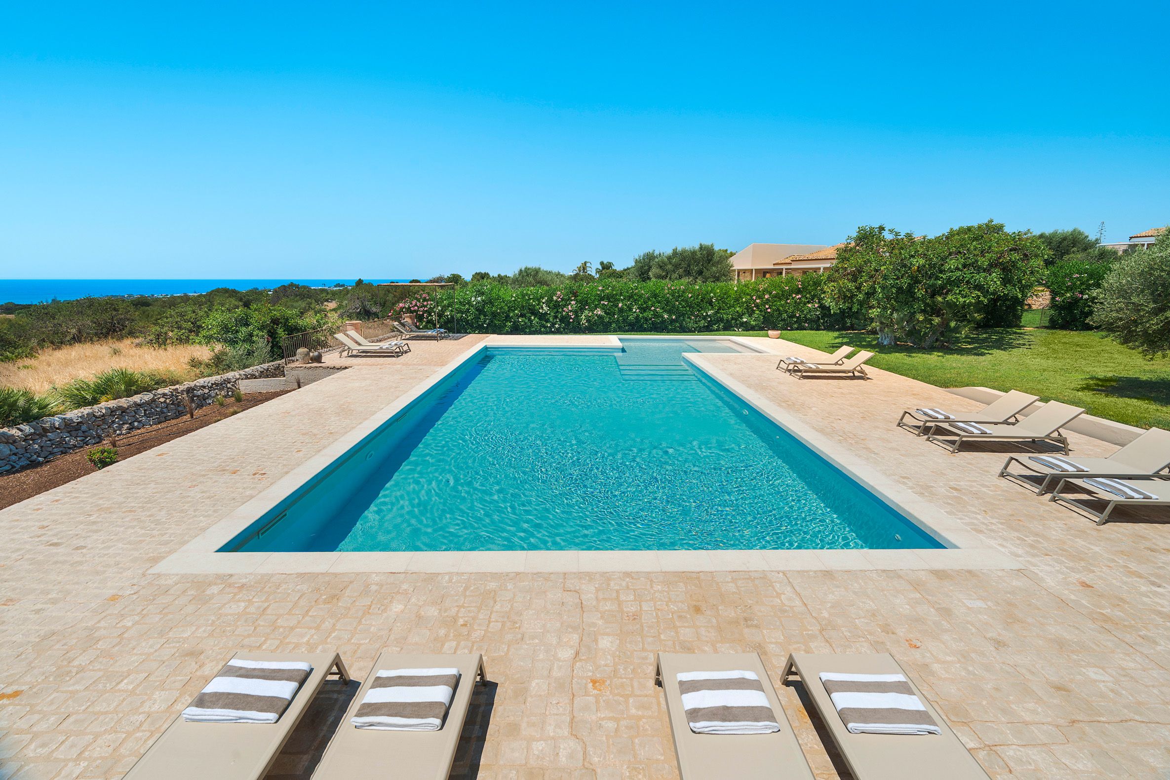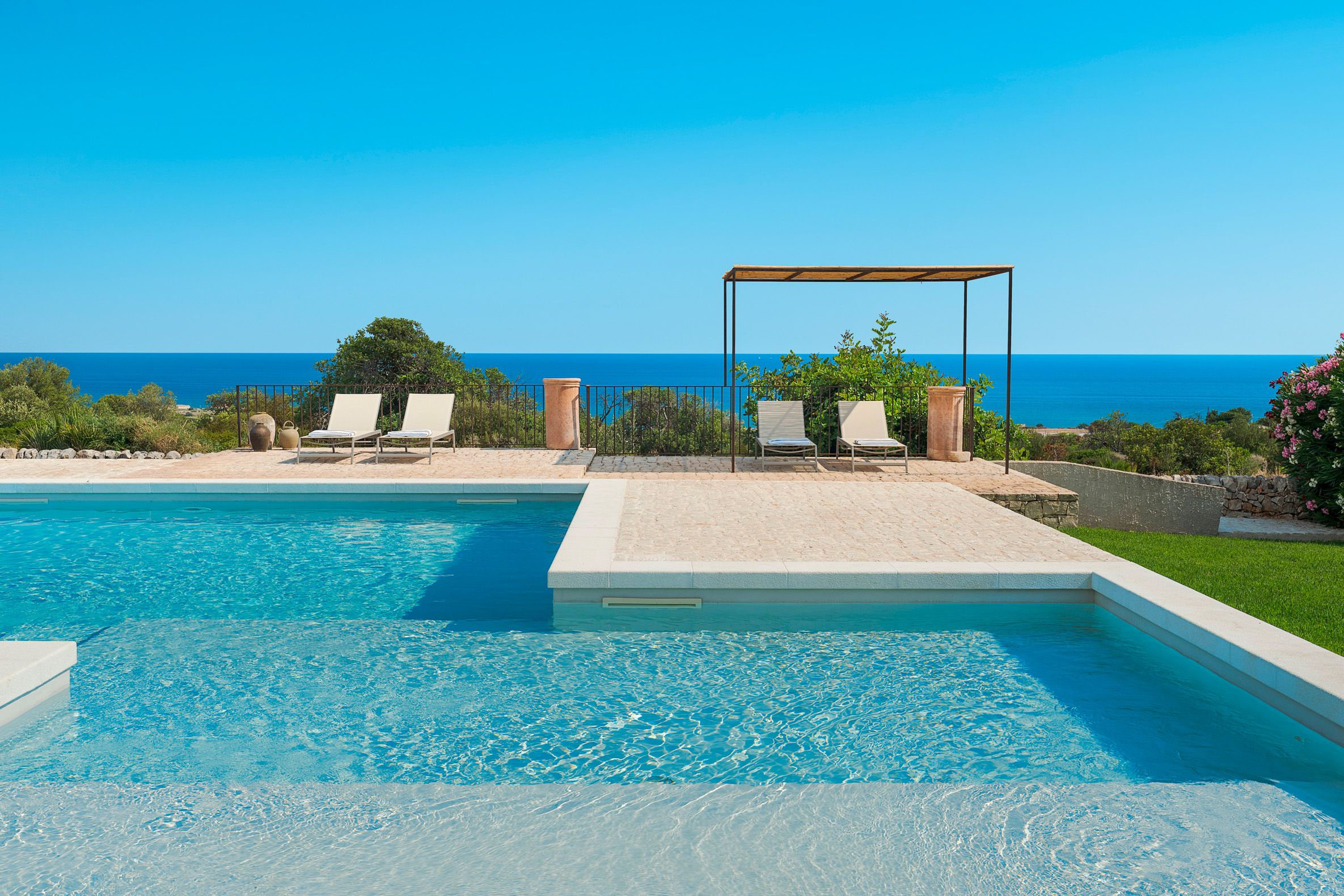 Situated in the peaceful coastal region of south-eastern Sicily, this home is part of a small complex of three villas, with a shared swimming pool and lovely sea views. You’ll also enjoy your own private garden and terrace, perfect for relaxing and sharing alfresco meals. The interior is on the rustic side – this home may not be suitable if you’re seeking luxury – but there’s certainly enough charm and comfort here to make for a relaxing island holiday for a family or a group of friends. We think a car is necessary here for reaching the beaches and the nearby shops and restaurants.