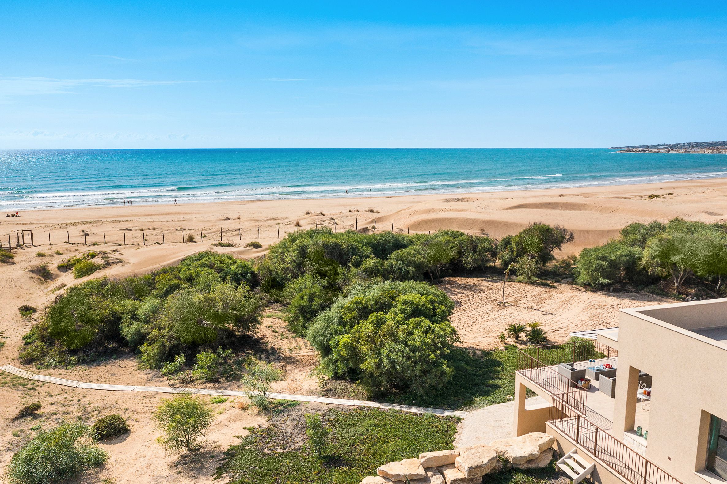 With direct access to Mannera Beach, this home is all about outdoor living. The private terrace, complete with a dining table and a seating area, provides unobstructed views of the Mediterranean Sea. Inside, you’ll find everything you need for a comfortable stay, and if you’d like to take the relaxation to the next level, your host provides spa services and a private chef as optional add-ons. Keen to explore? We recommend driving into the charming town of Scicli.