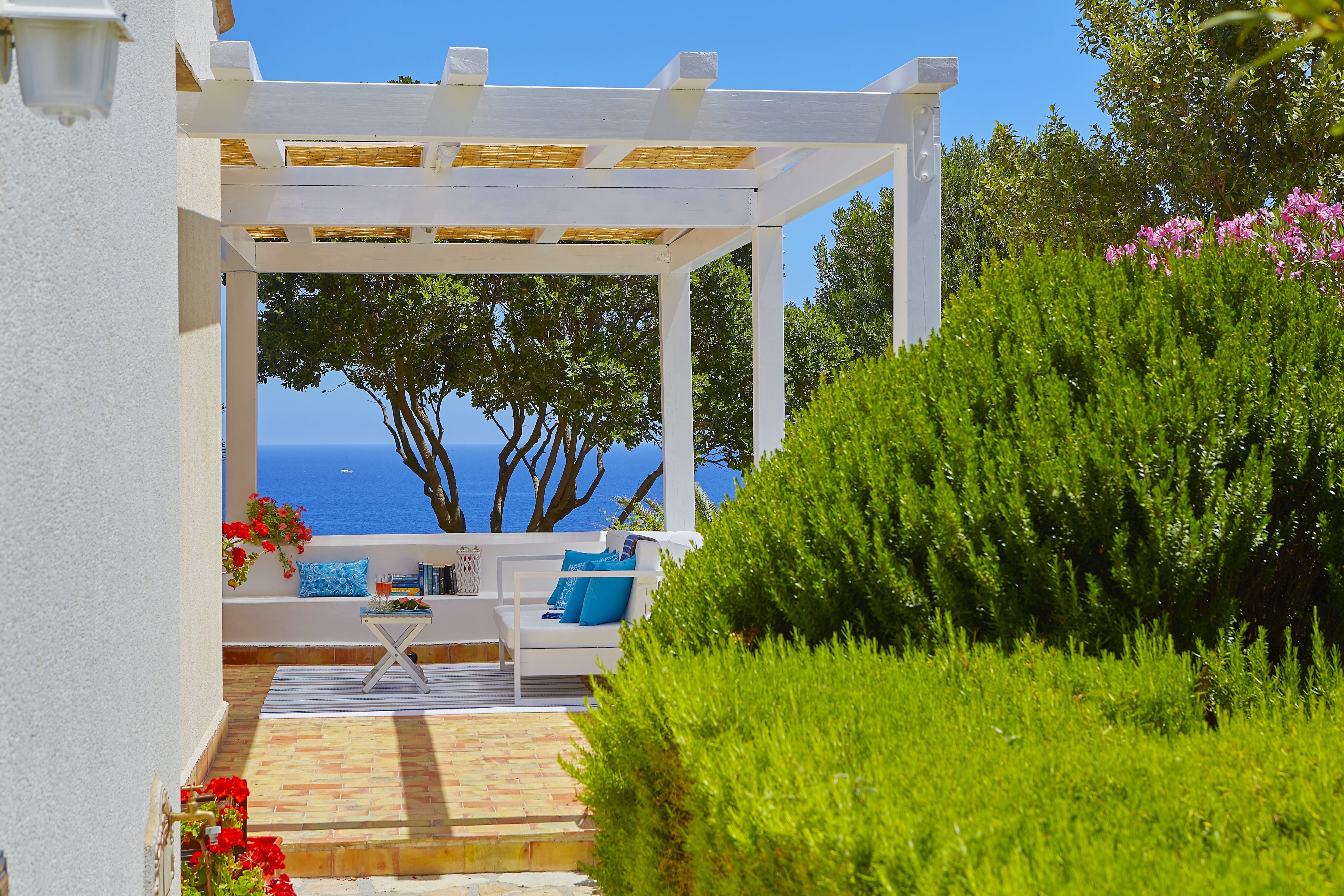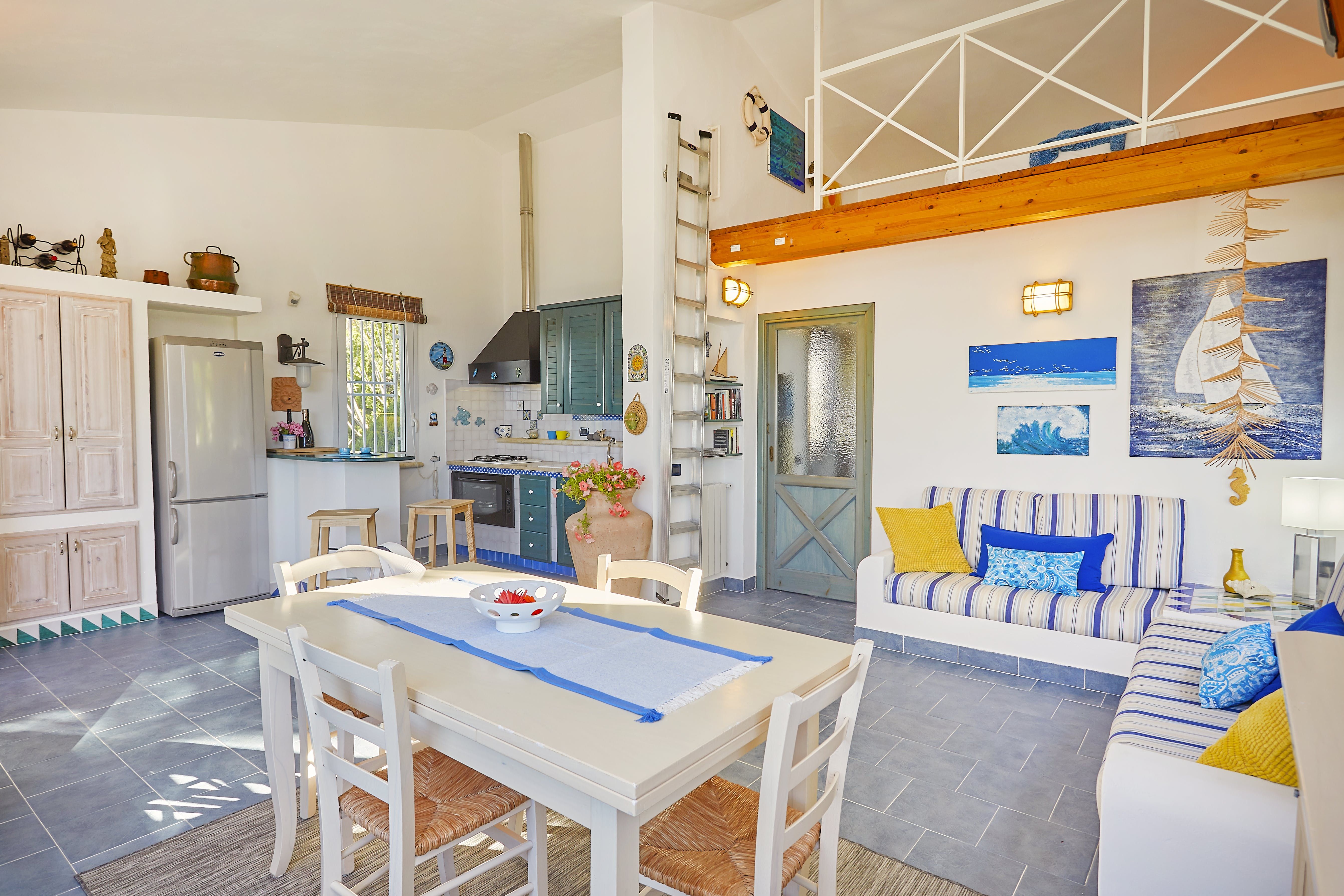 Inside, the villa is just as dreamy. Stepping through, you'll love the sea-inspired interiors, vibrant blue colour palette and nautical artwork that serves as a constant reminder of your stunning surroundings and picturesque views. Fling open the double doors, inviting the sea breeze to sweep right inside the wonderfully open living space, kitchen and dining area, as you tuck into a home-cooked breakfast.